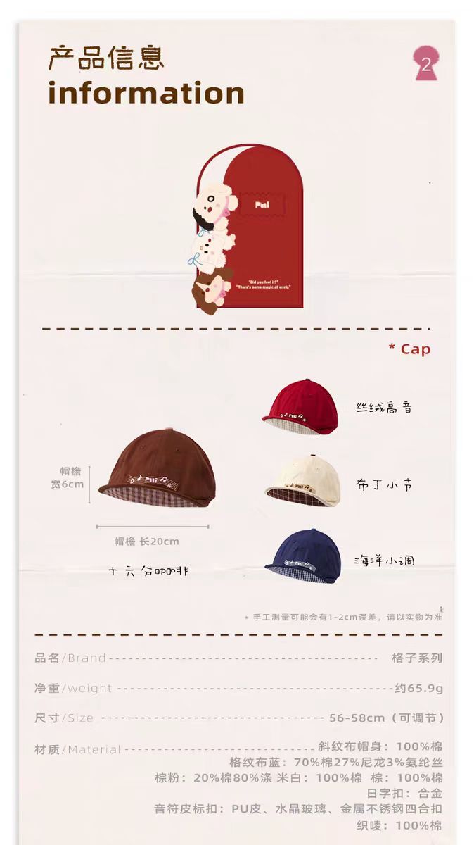 4楼Eubelle欧蓓 puui短檐帽男女潮 日系复古软翘翻沿个性遮阳棒球帽 活动价:128元