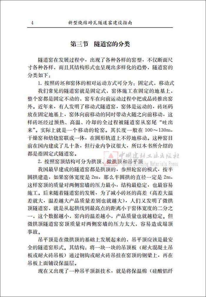《新型烧结砖隧道窑建设指南·烧结砖生产装备与技术实用丛书》一书还辑录了非常珍贵的施工资料——大断面隧道窑耐火吊顶板的配方及施工工艺,窑炉公司或使用耐火吊顶板的厂家可以参照此配方施工或维修窑顶。