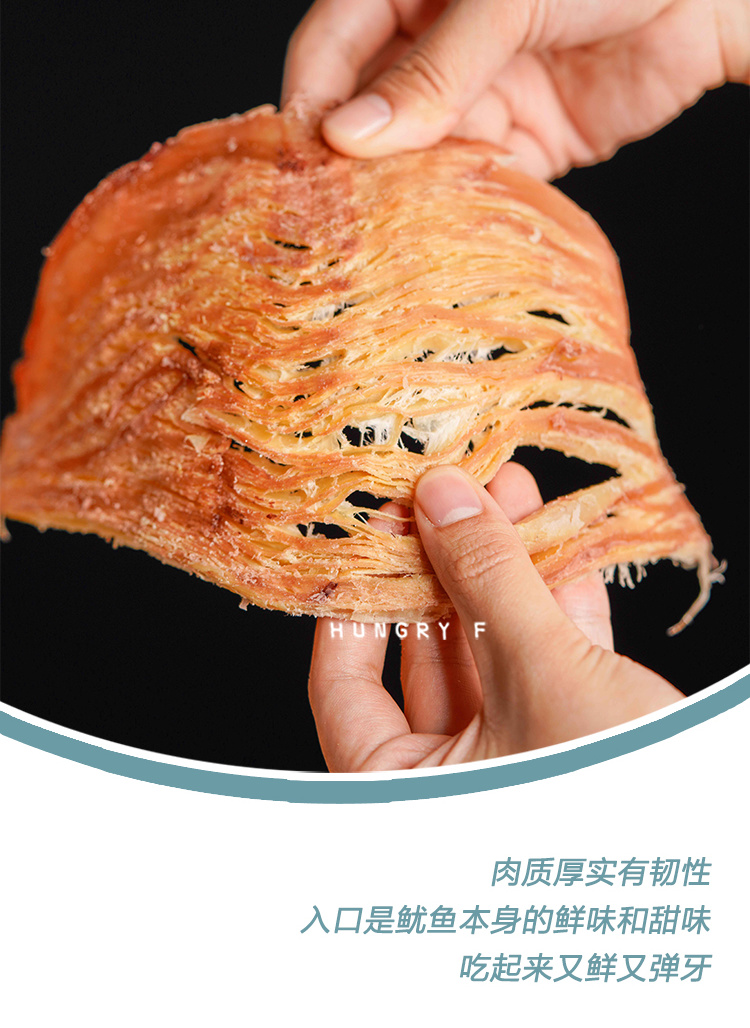 风琴鱿鱼,一包100g,不会一下就吃过量,太贴心!风琴般的细腻纹路,一撕一条,放开享受吃肉的快乐,相当解馋!而且不会塞牙哦,牙口不好的长辈和小朋友也能偶尔吃吃,重点蛋白质含量还很高,减脂人也能嚼嚼!无论是悠闲的追剧时光,还是长途旅行的解馋小吃,或者是和朋友聚会,都可以来一袋!