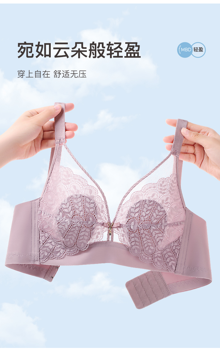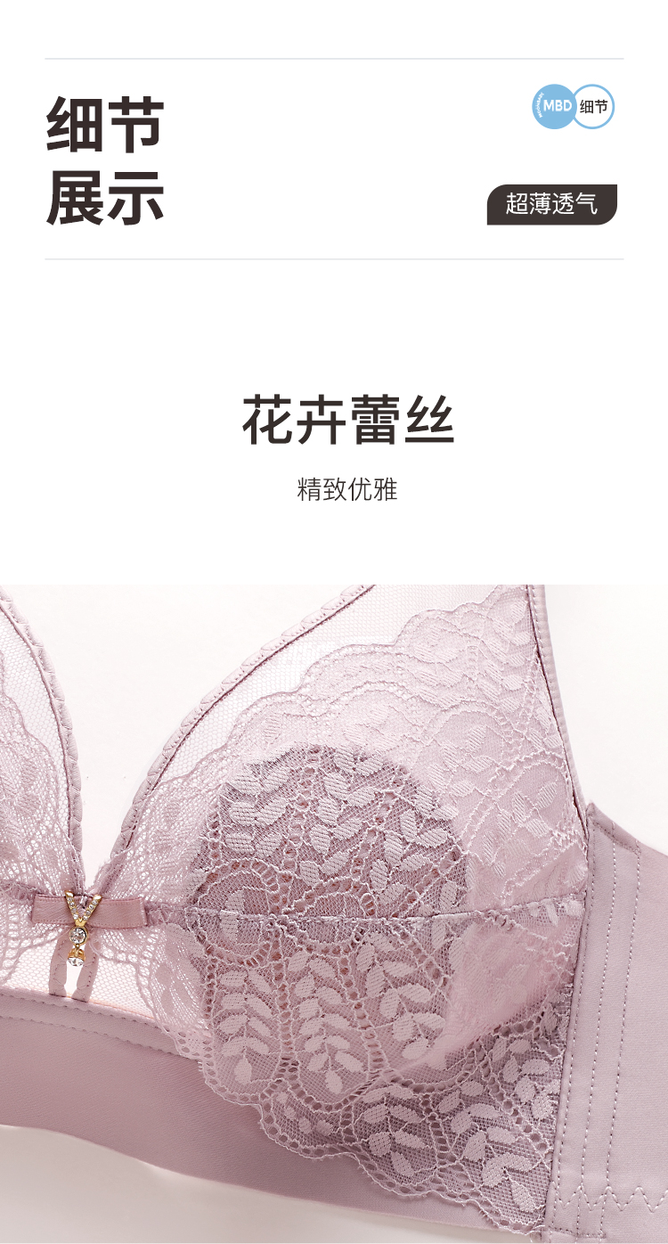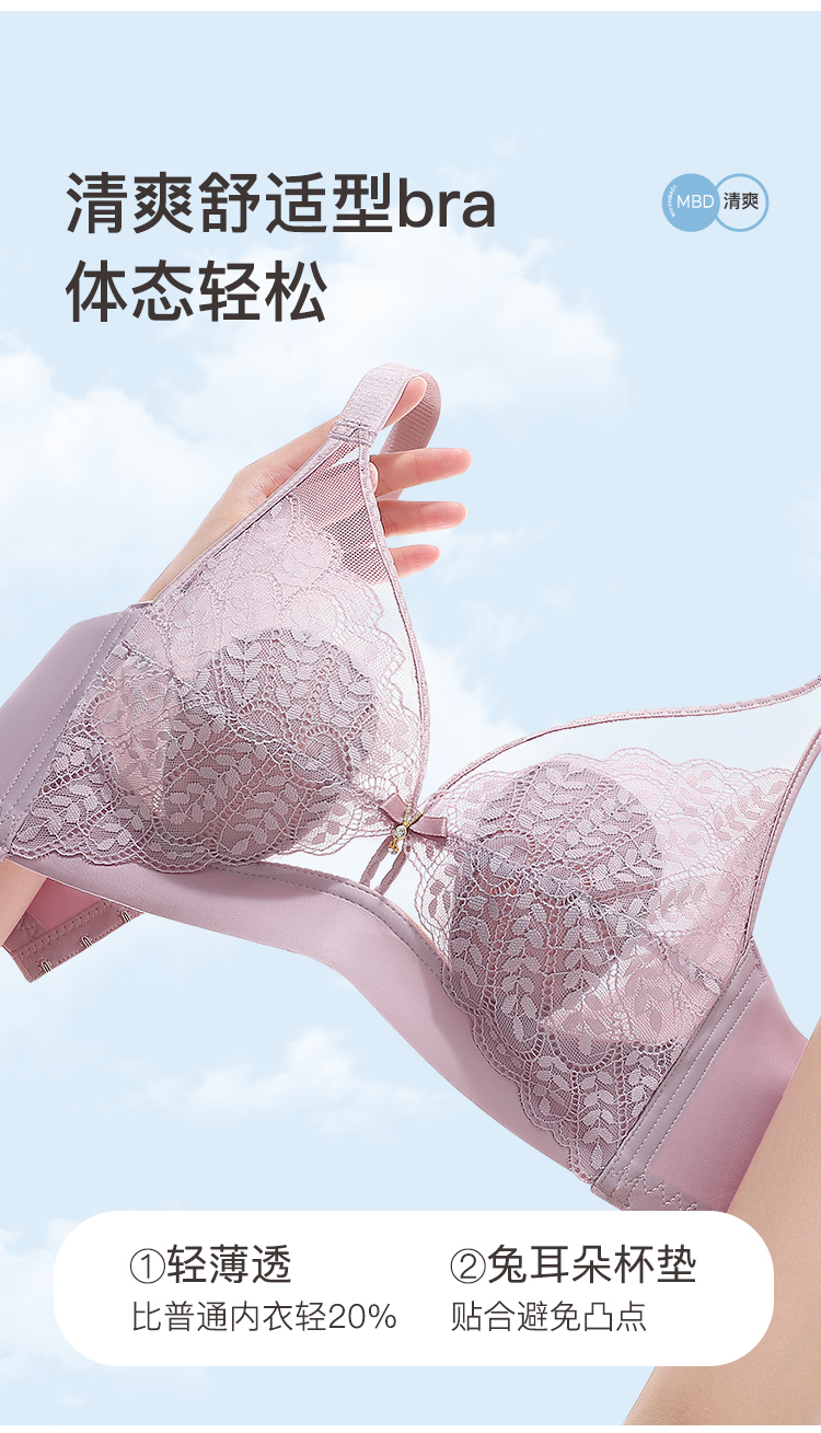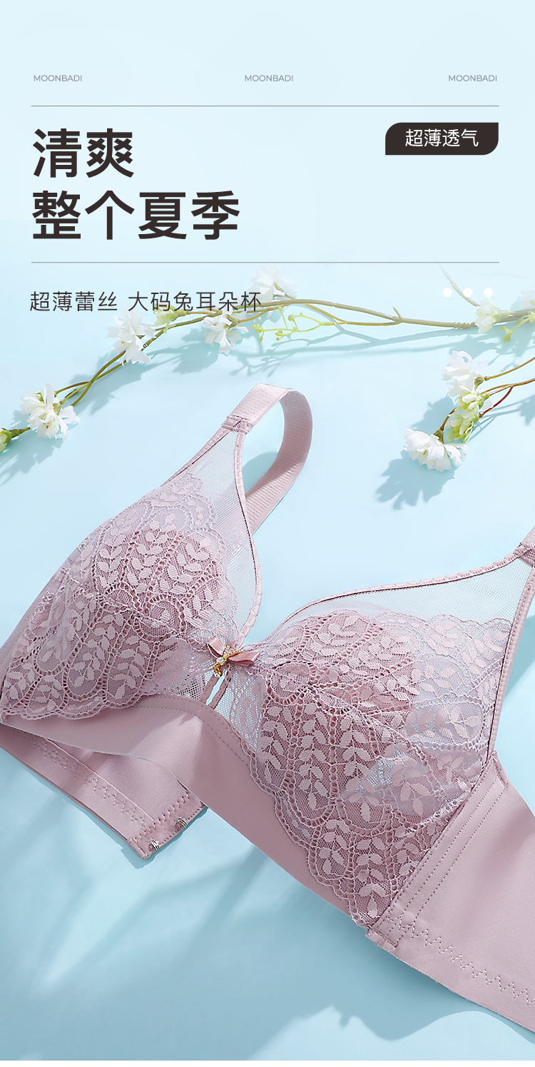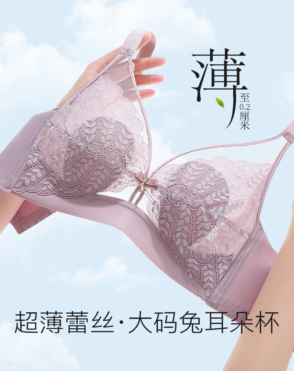 【轻薄兔耳杯】时尚蕾丝水晶杯内衣女大胸透气防凸点无钢圈文胸花瑶月影