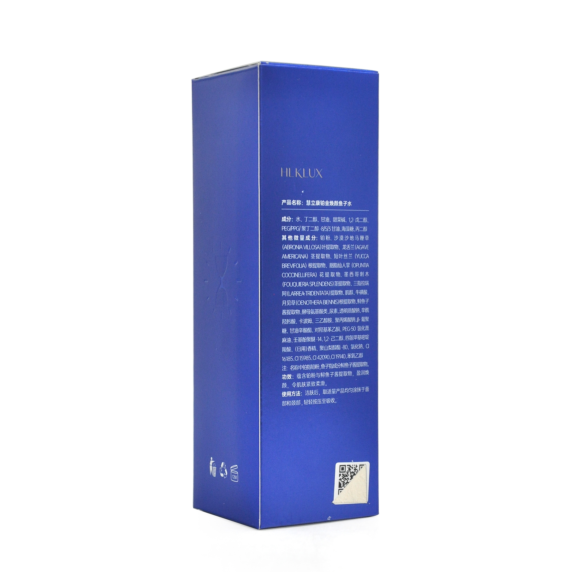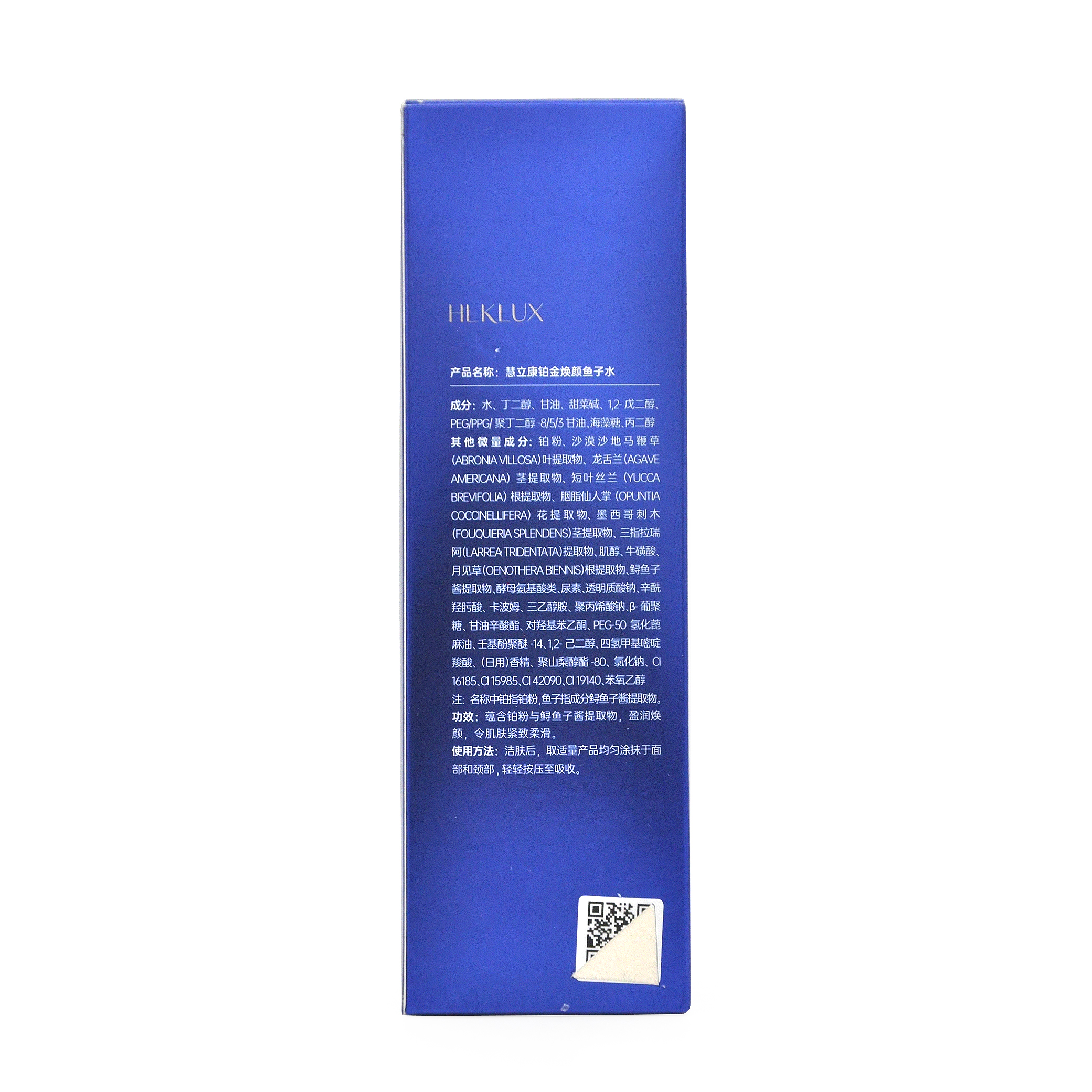 名称中铂指铂粉,鱼子指成分鲟鱼子酱提取物。