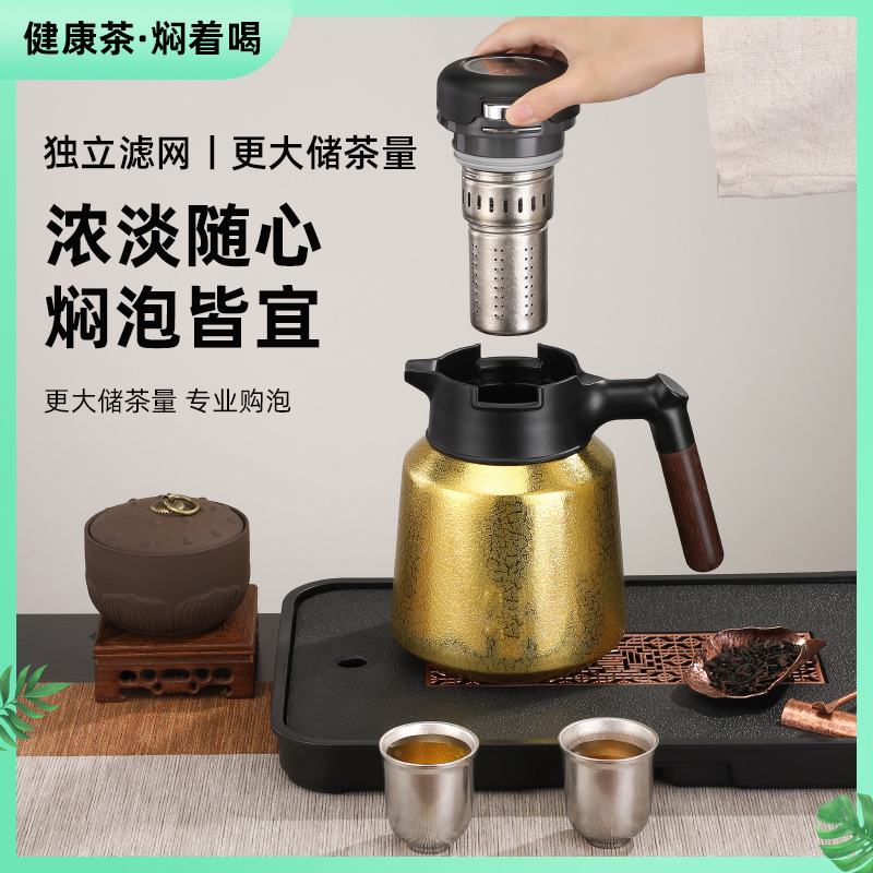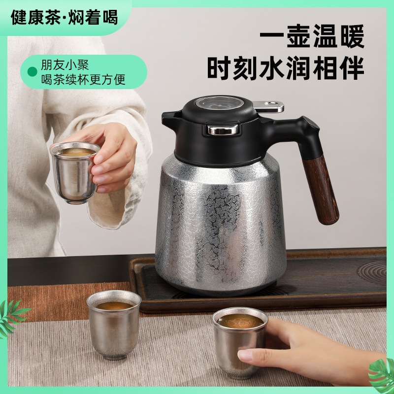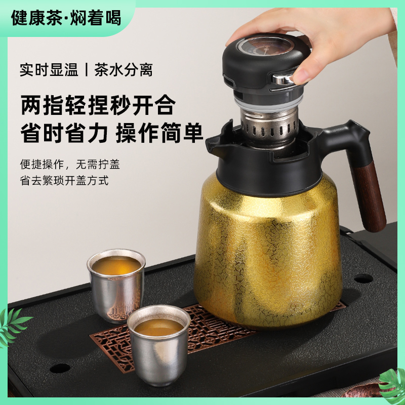 【春节预告:2月6-25日不发】任选2套减10【内钛外钢 实时显温】聚宝盆钛保温壶1500ml含独立滤网