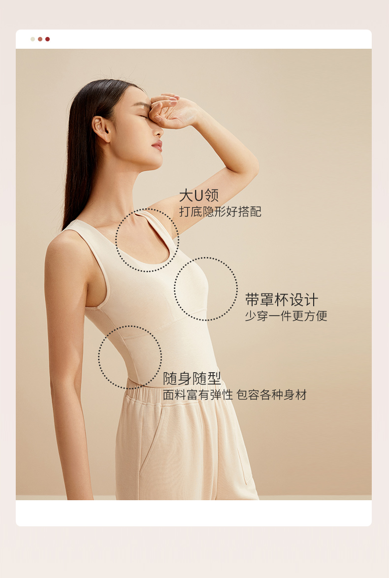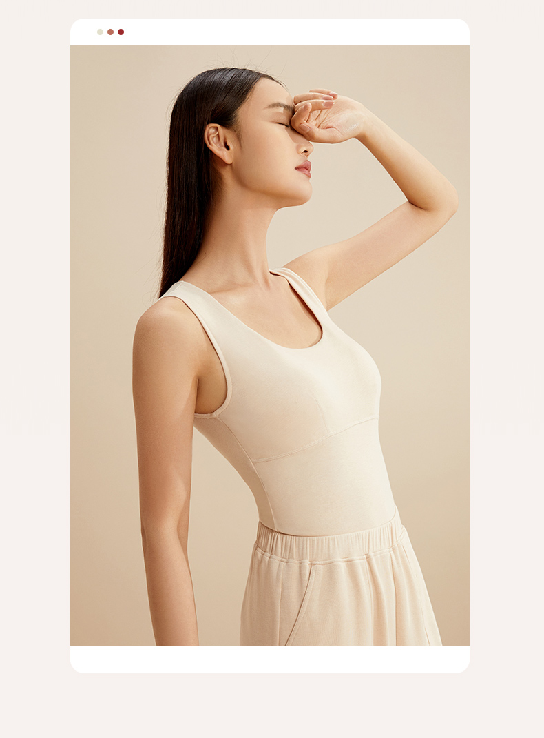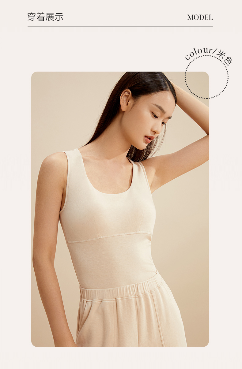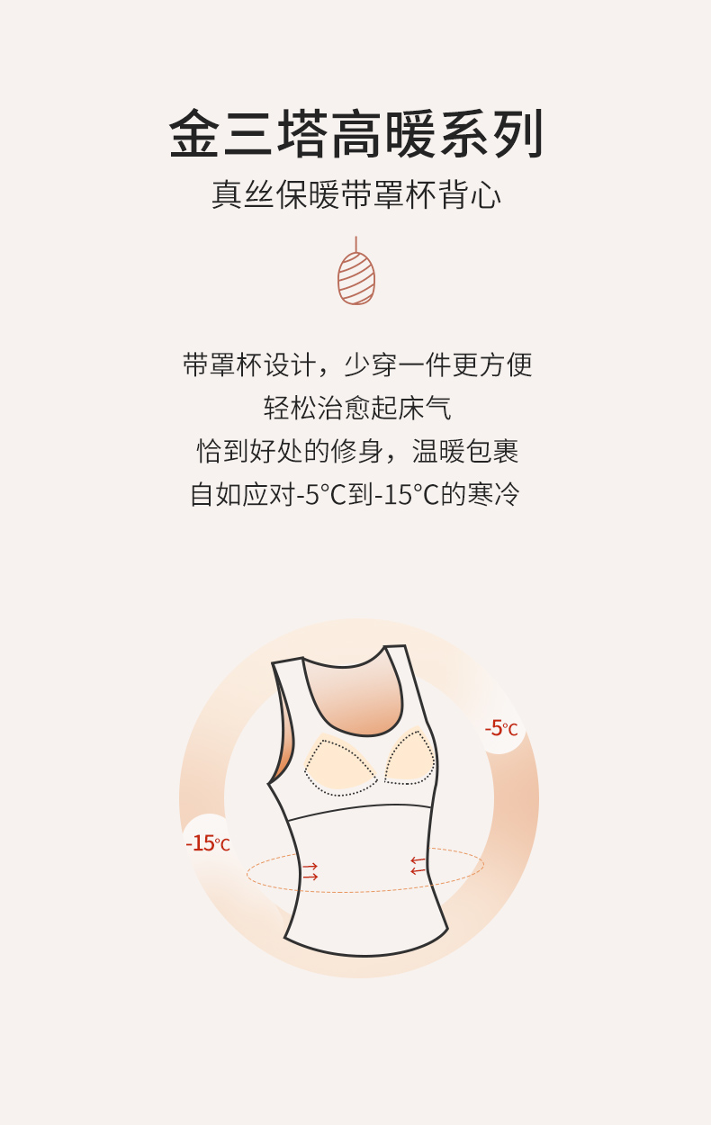 金三塔秋冬新品桑蚕丝拉绒保暖背心女带罩杯圆领简约内搭打底背心 NZFCD730