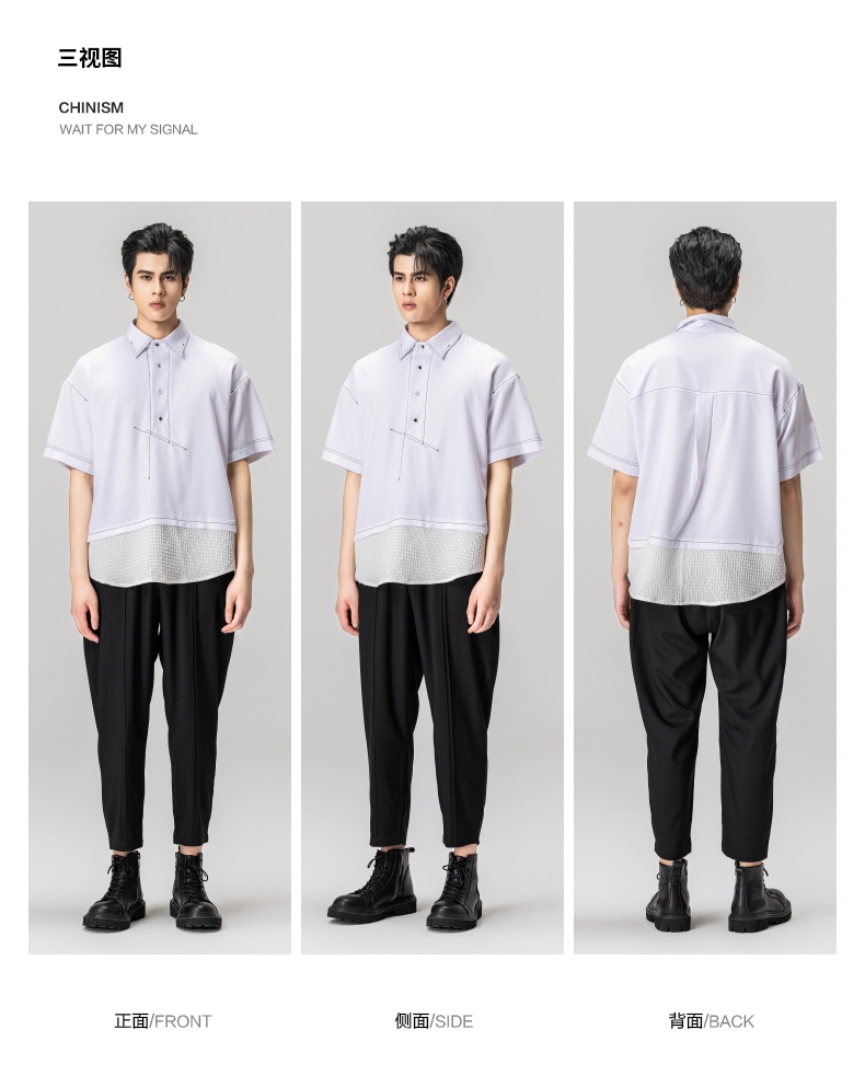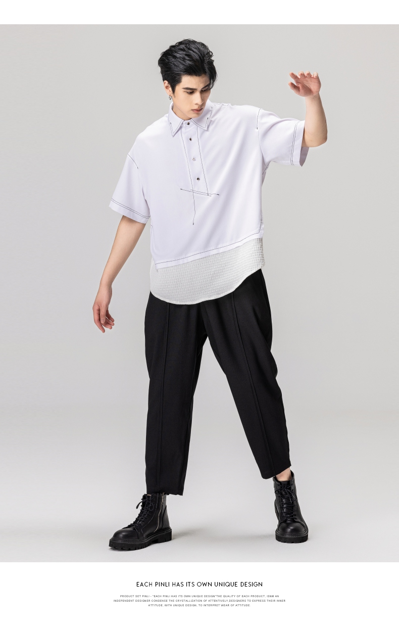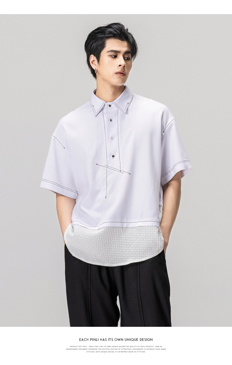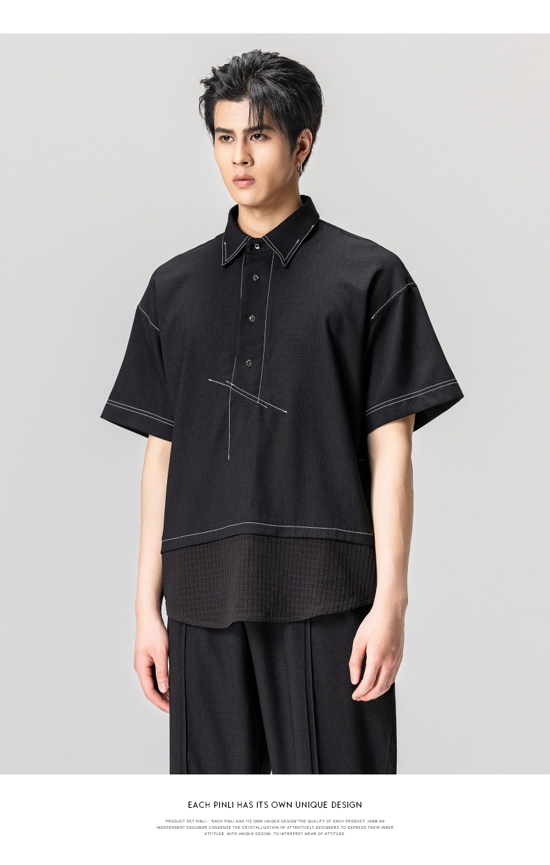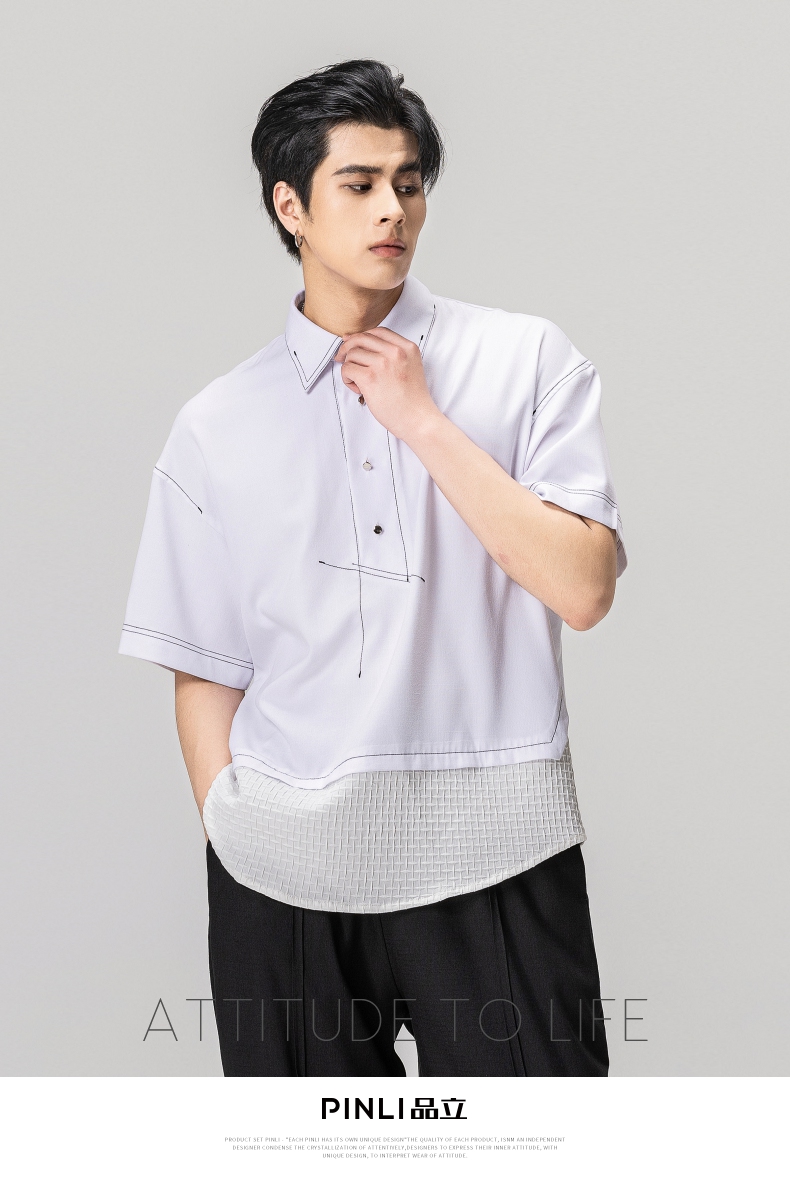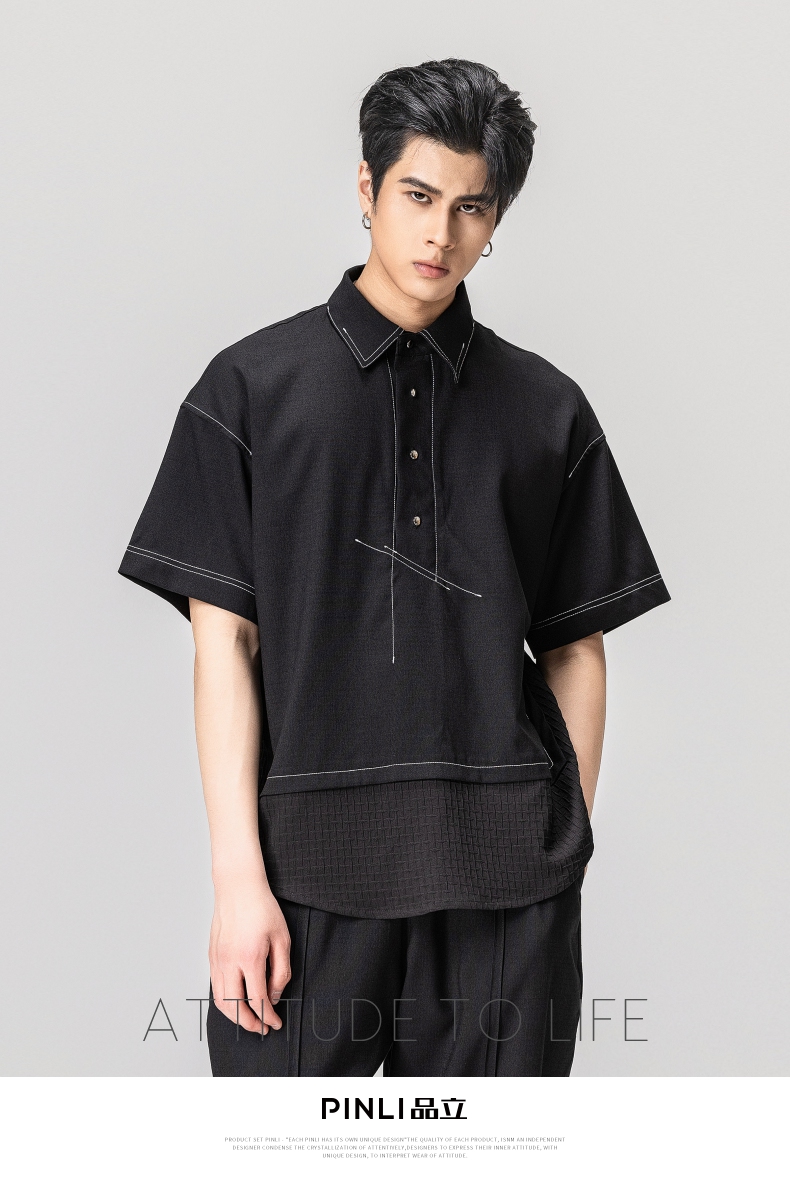 PINLI品立夏季新款男士拼接POLO衫休闲短袖潮上衣B232112005