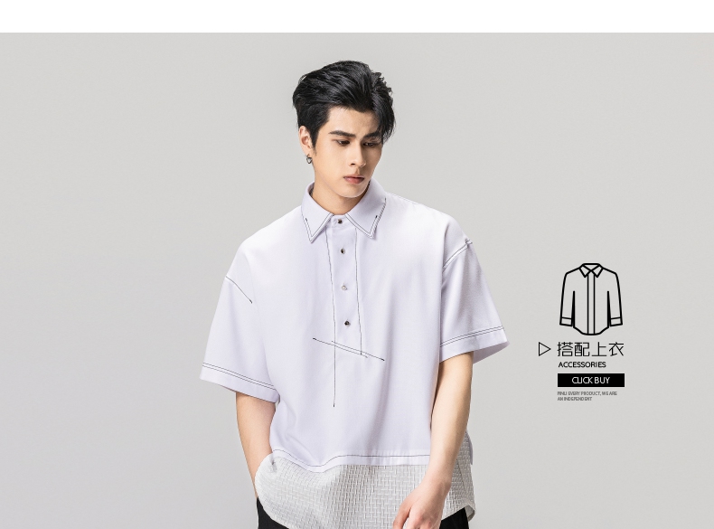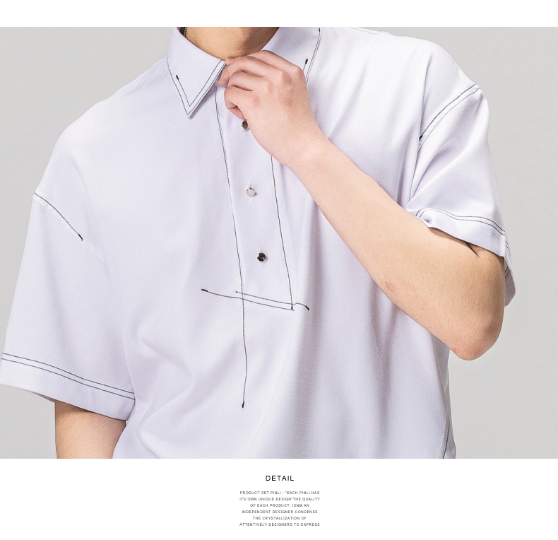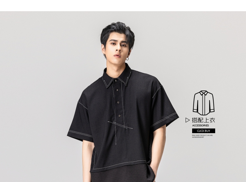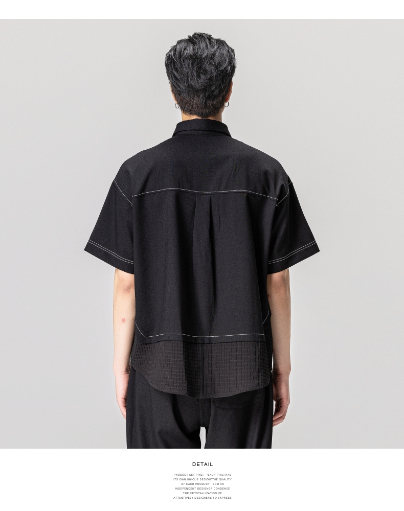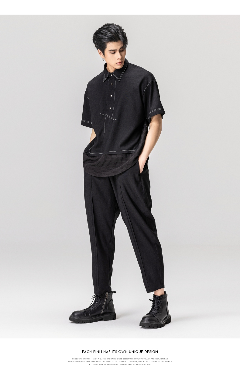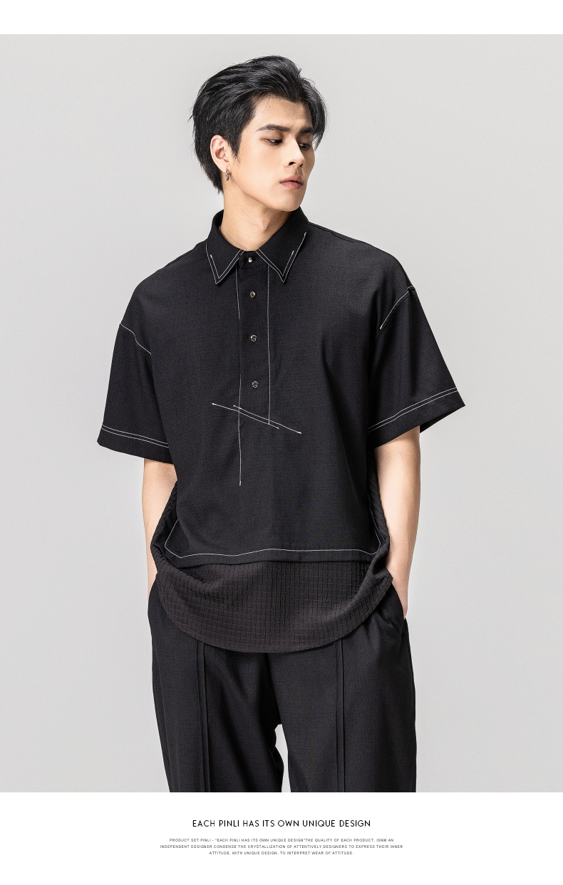 PINLI品立秋季新款纯色立领中袖衬衫男士免烫休闲五分袖衬衣GD242213296