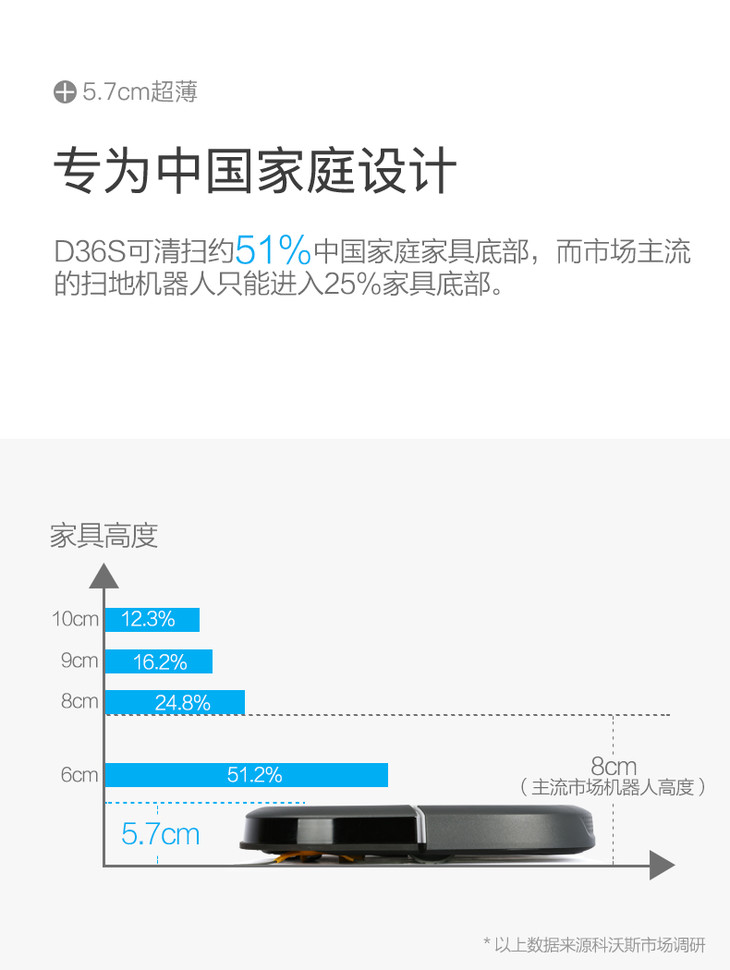 科沃斯(Ecovacs)扫拖一体机 APP控制 智能规划5.7cm超薄吸尘器扫地机 线下同款 D36S