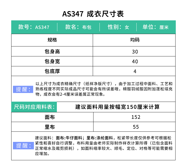 裁缝学苑AS347小众设计蝴蝶结单肩托特包包牛仔帆布包纸样打板