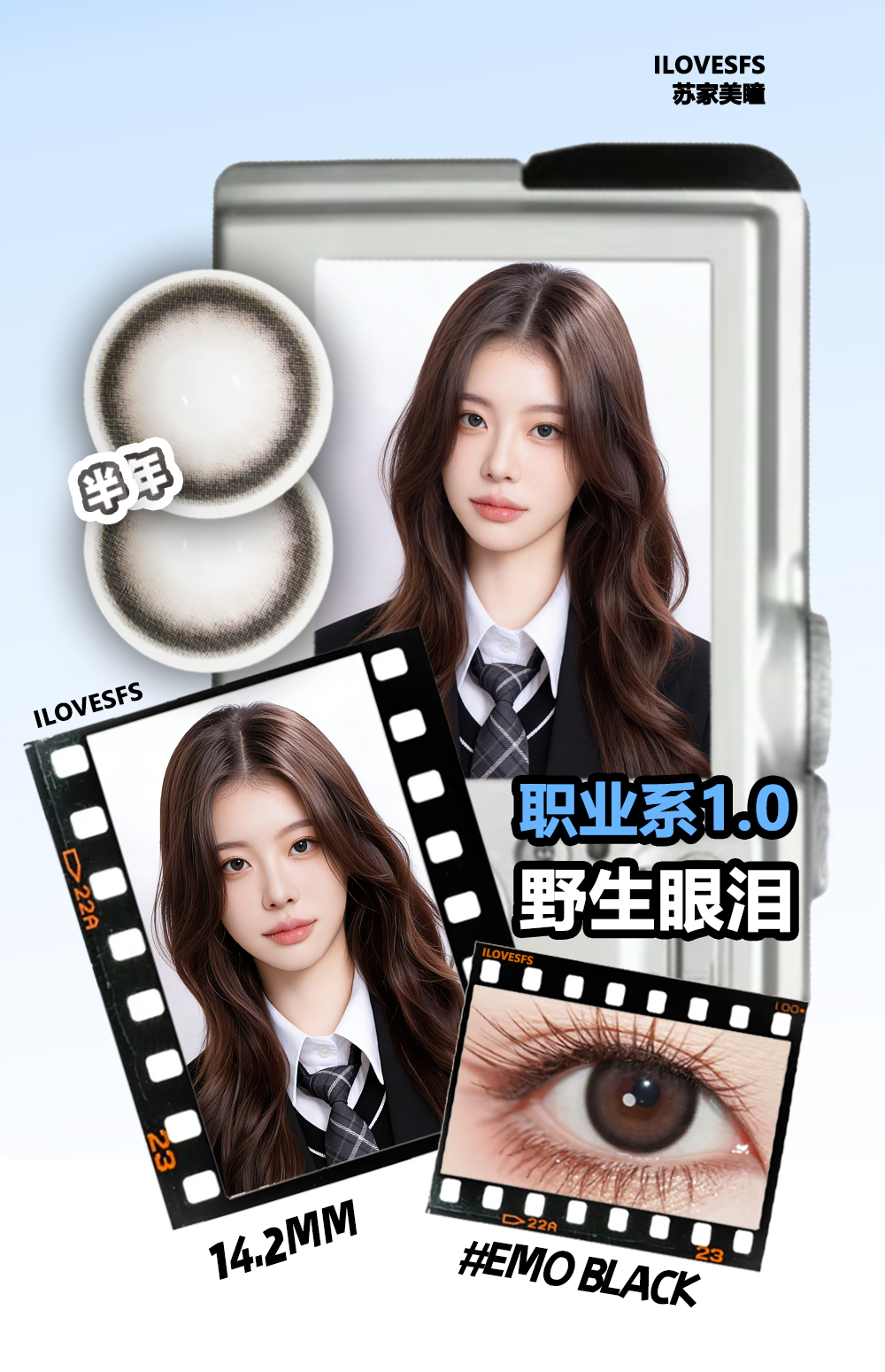 #EMO野生眼泪 黑褐色 14.2mm 职业系1.0【1片装】舒适推荐 / 半年抛