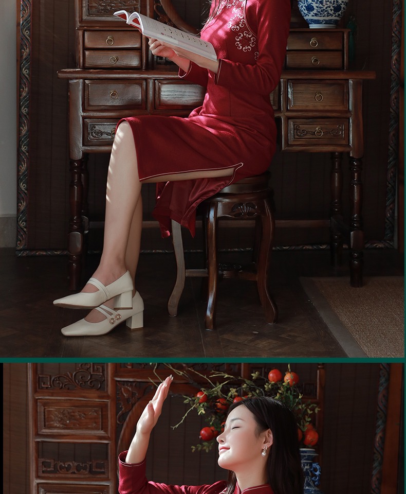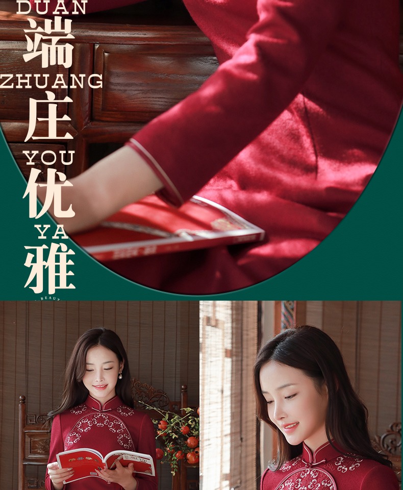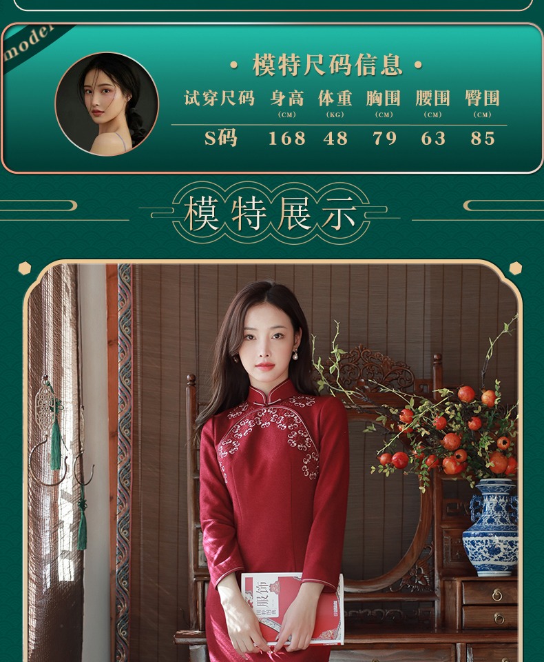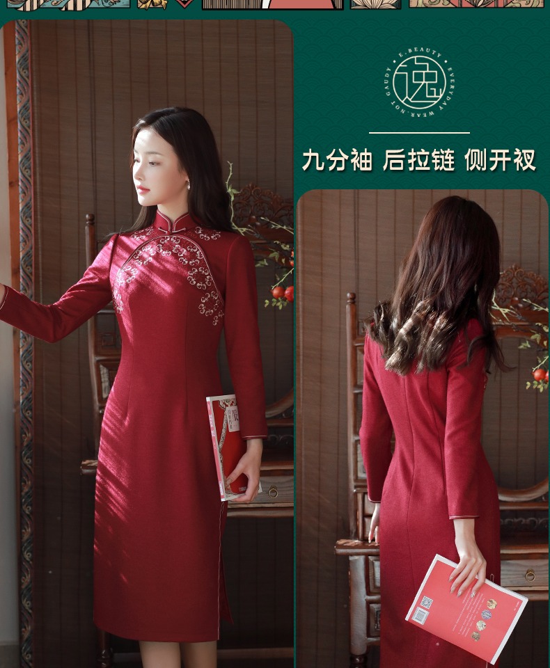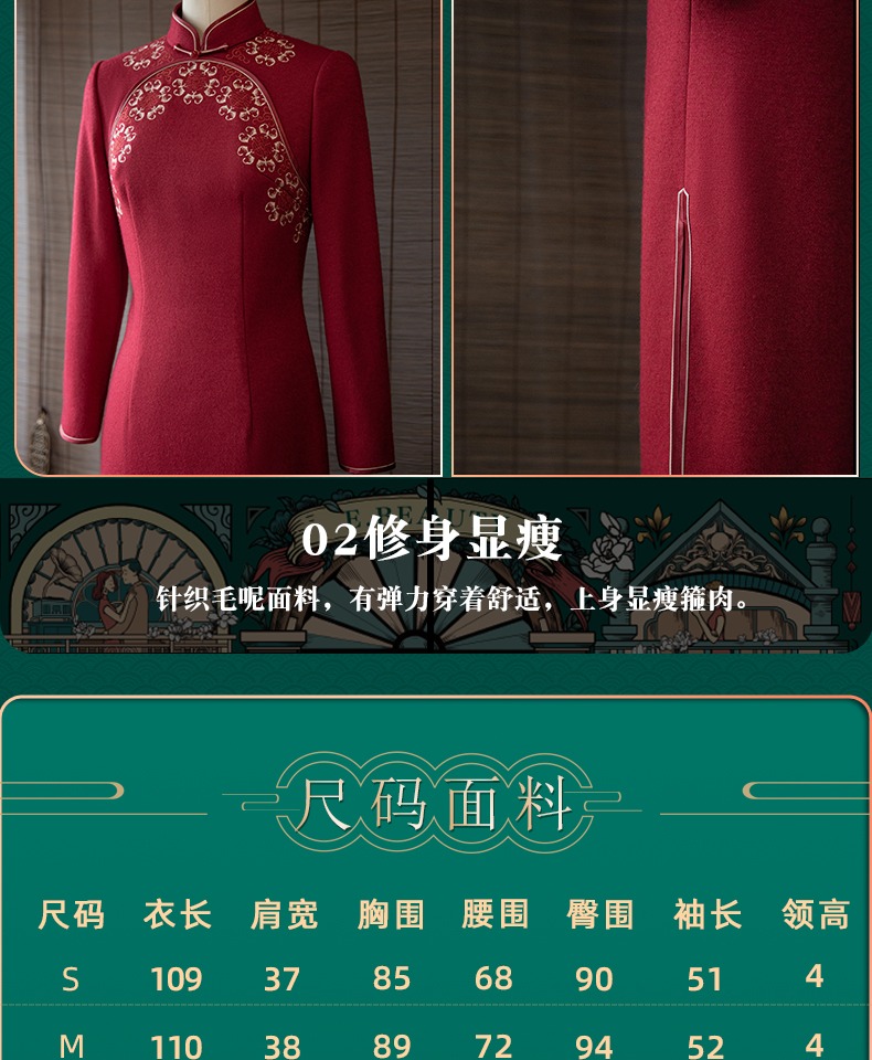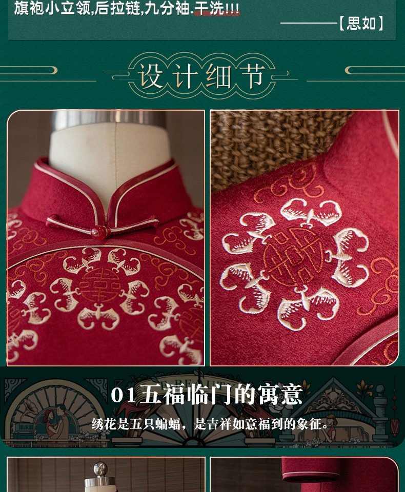 逸红颜旗袍2025年新款冬季 红嫣 毛呢精致绣花老照片复刻显瘦修身