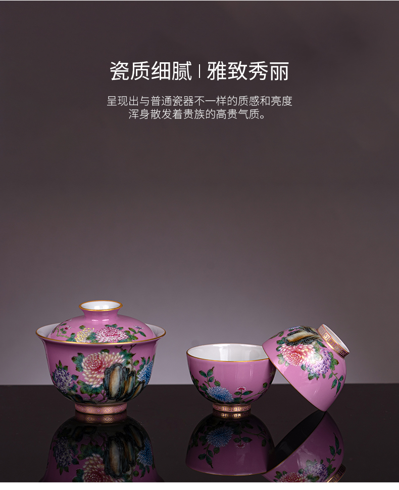宝瓷林 珐琅彩金地万花小罗汉杯5头茶具