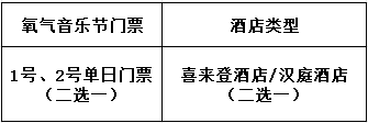嗨玩套餐:含指定日音乐节门票2张及当日入住汉庭酒店双人房1间(满房则安排同级酒店)