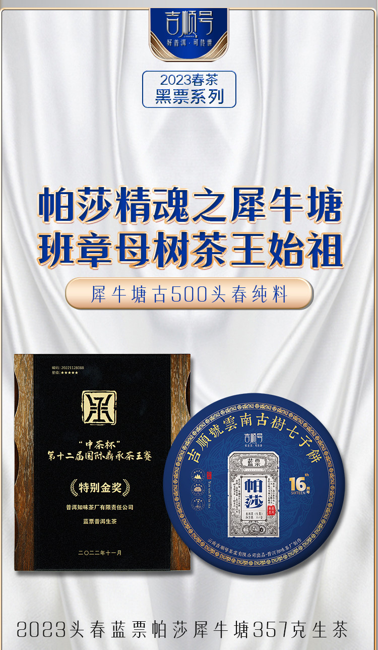 2023头春茶吉顺号普洱茶生茶云南七子饼蓝票帕莎犀牛塘古树茶357克