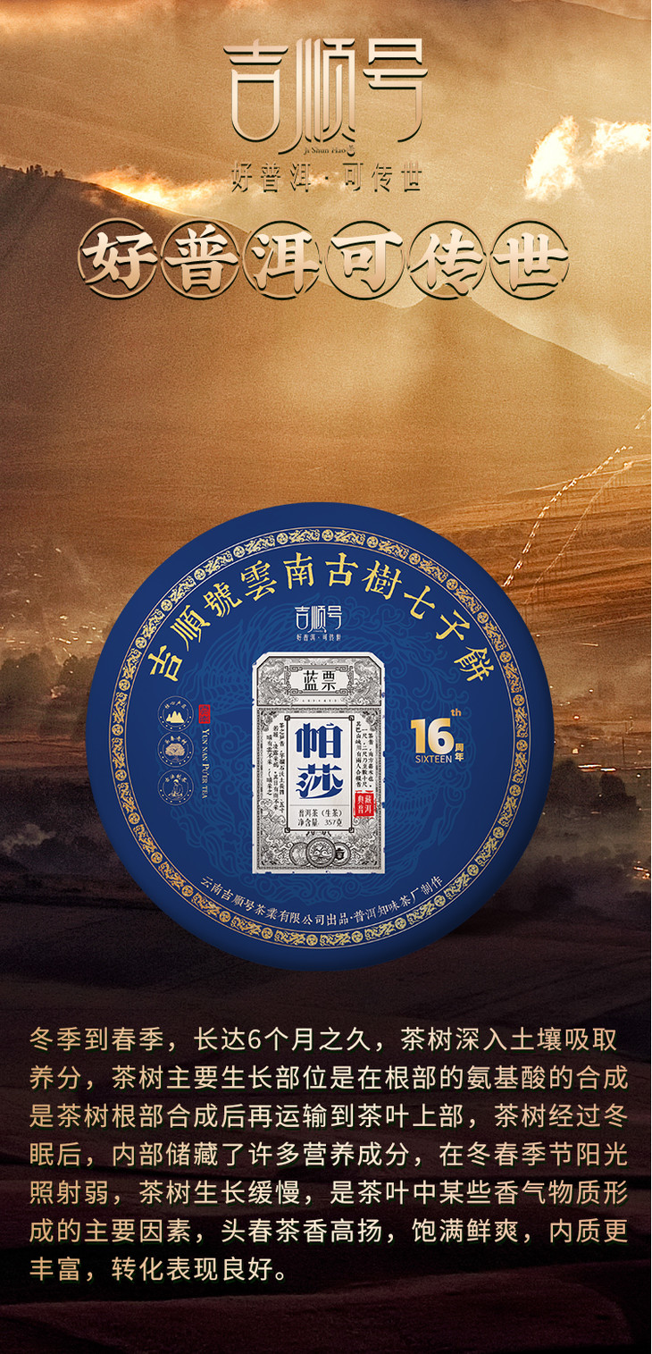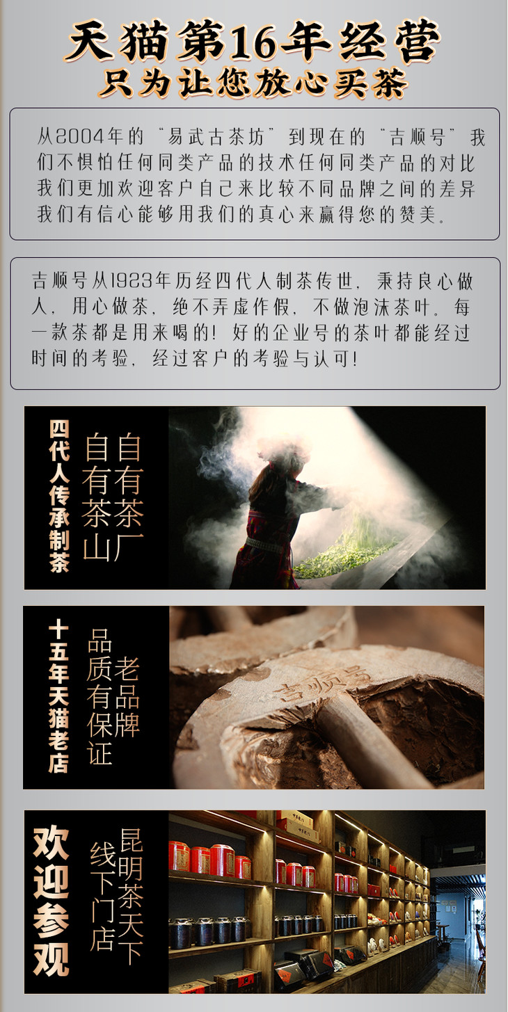 - 云南吉顺号茶业,专业云南普洱茶基地生产销售商。自有基地茶厂及运营仓储物流团队。