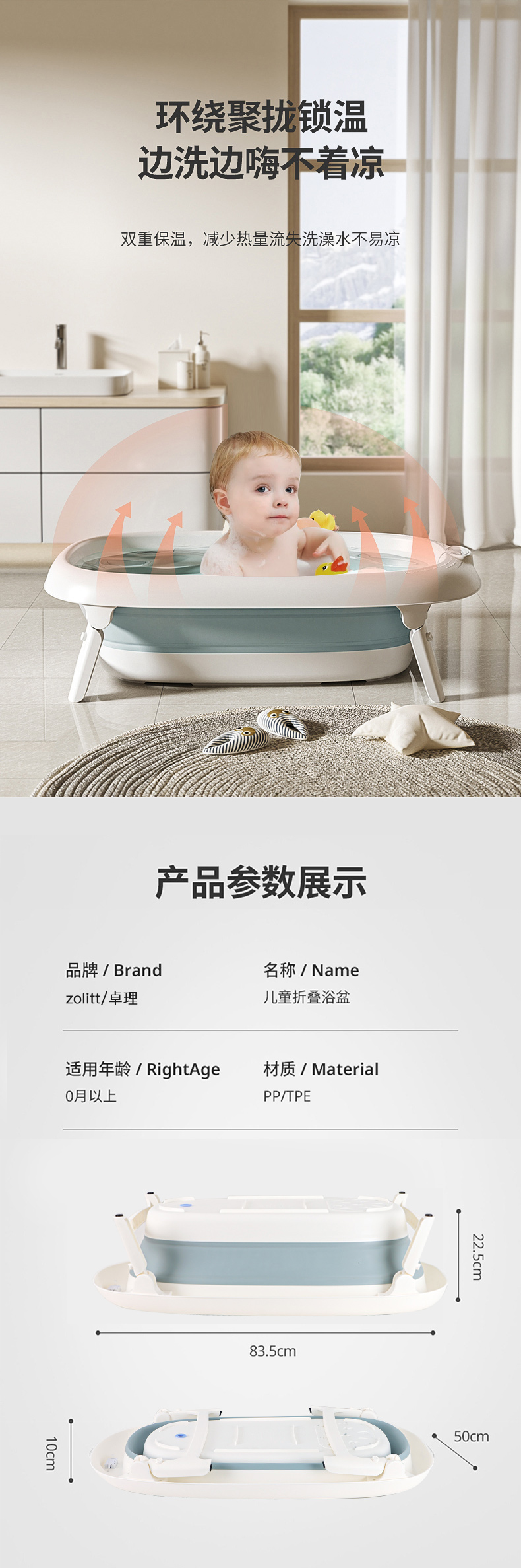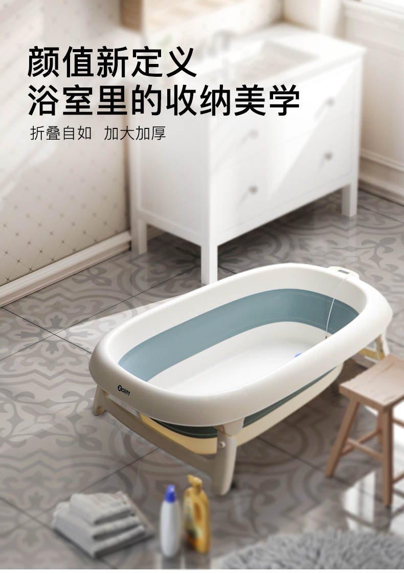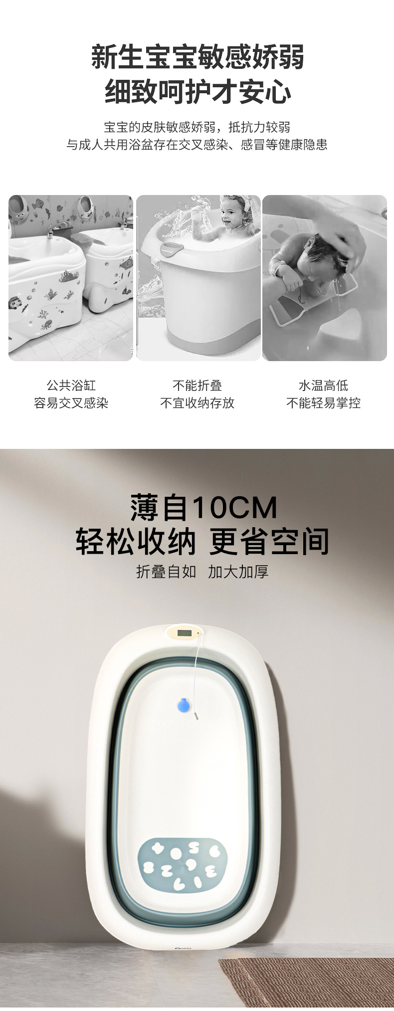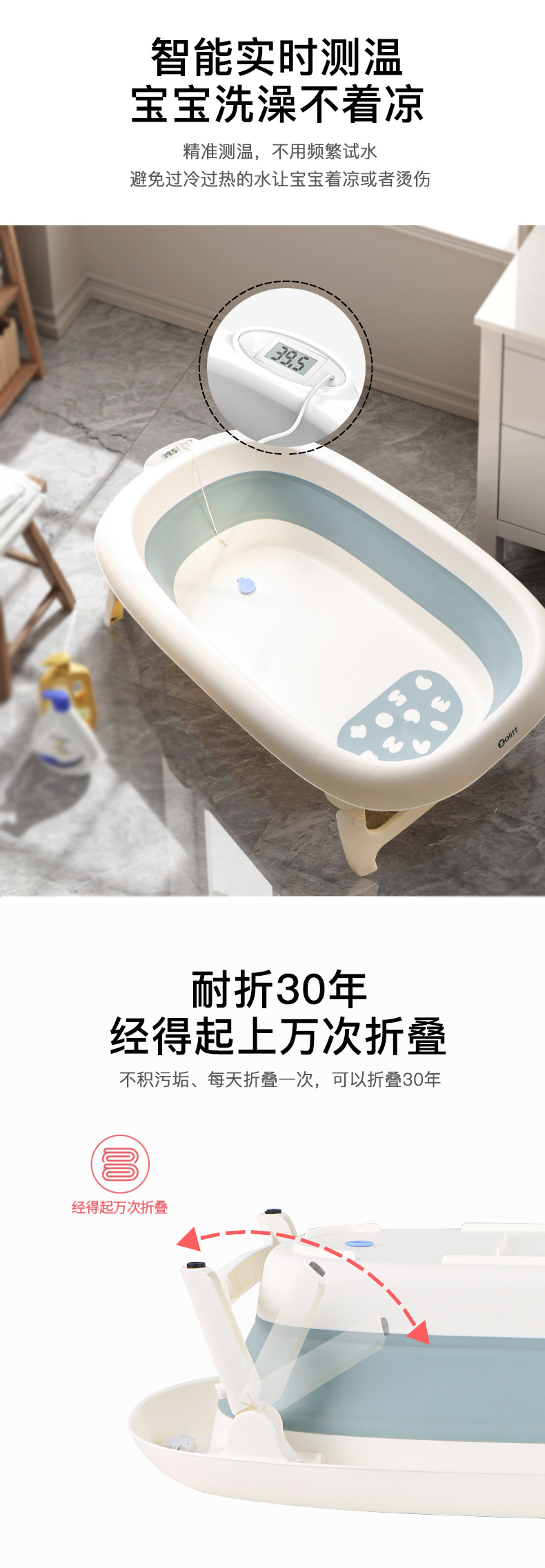 婴儿洗澡盆抑菌智能感温可折叠宝宝浴盆新生儿家用大号儿童浴桶