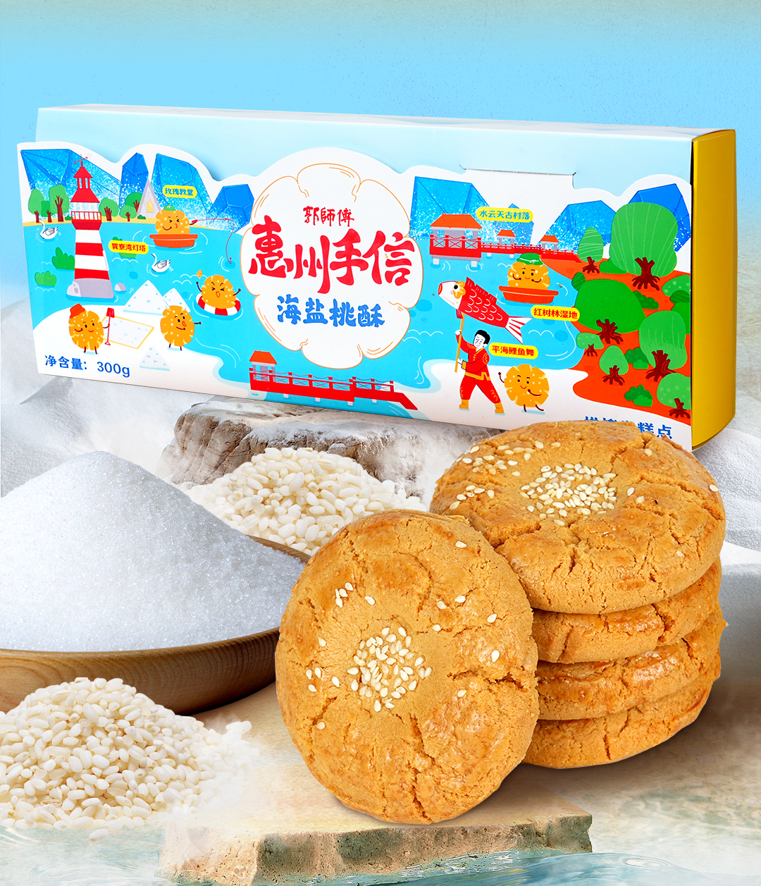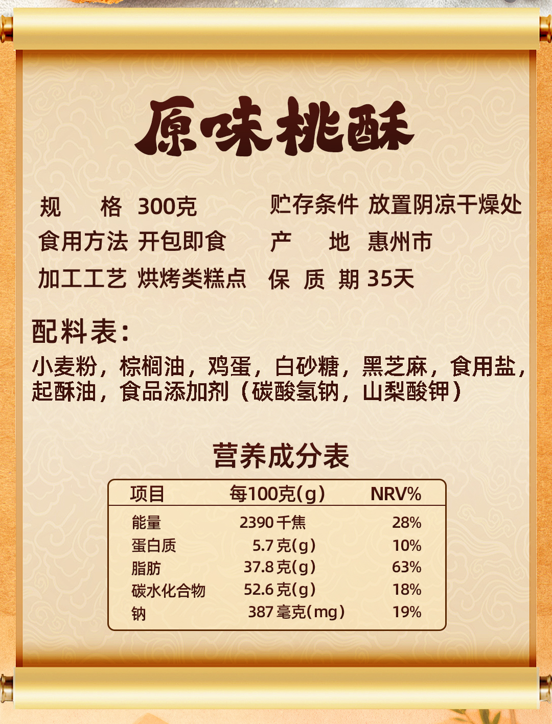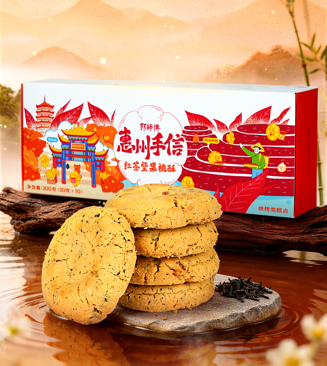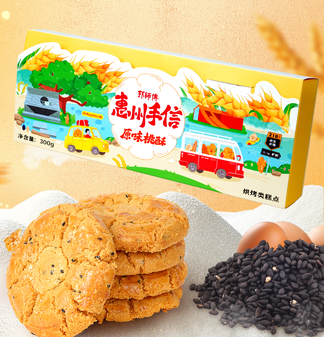 郭师傅原味/黑糖坚果桃酥10枚装300g+叉烧皇3个装300g