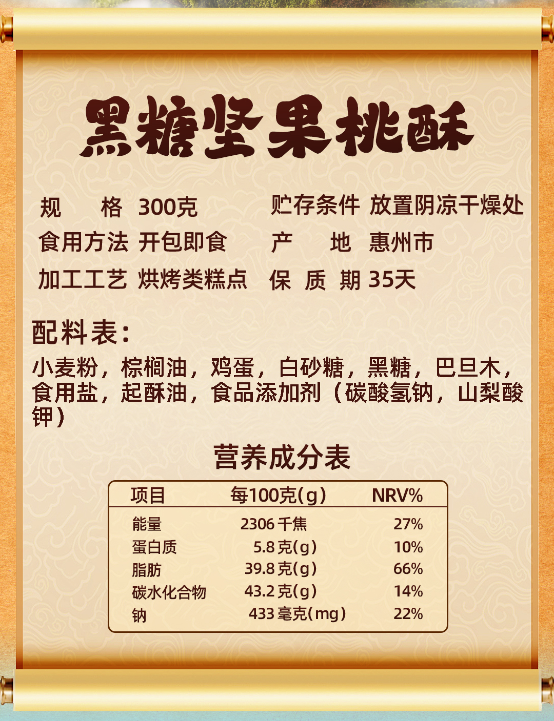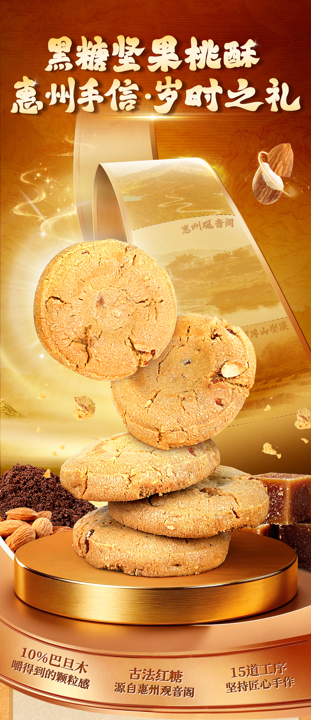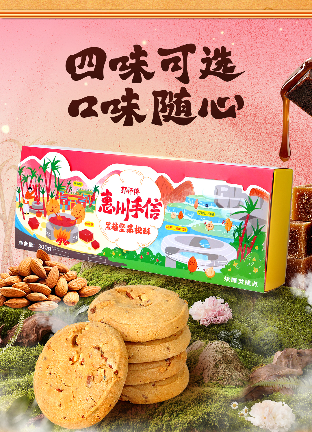 郭师黑糖坚果桃酥10枚装300g手工点心传统糕点