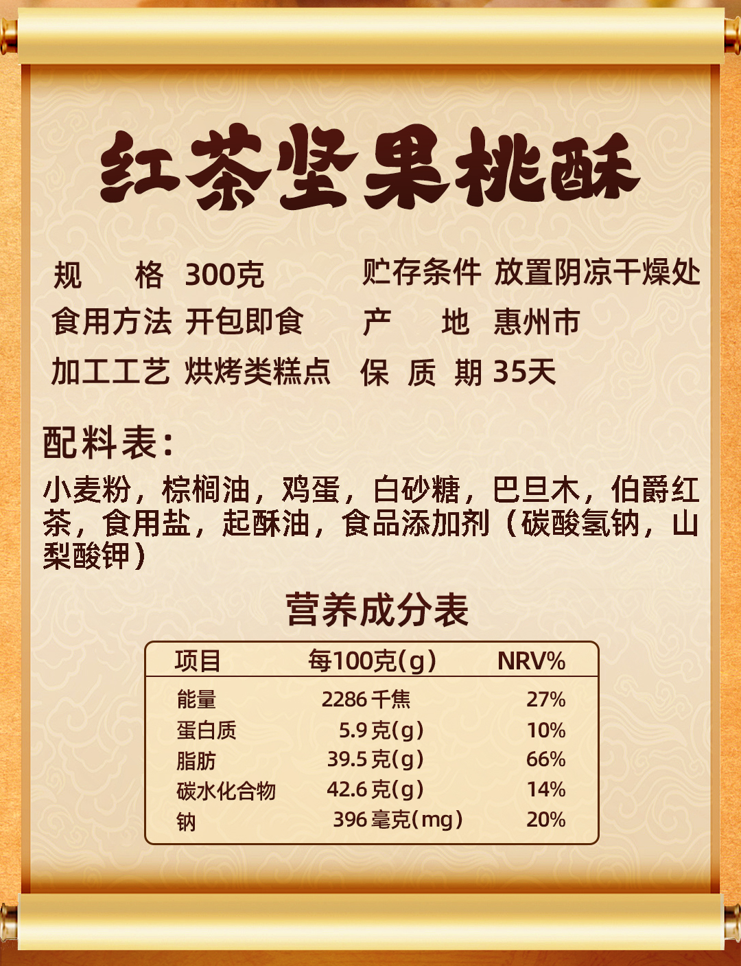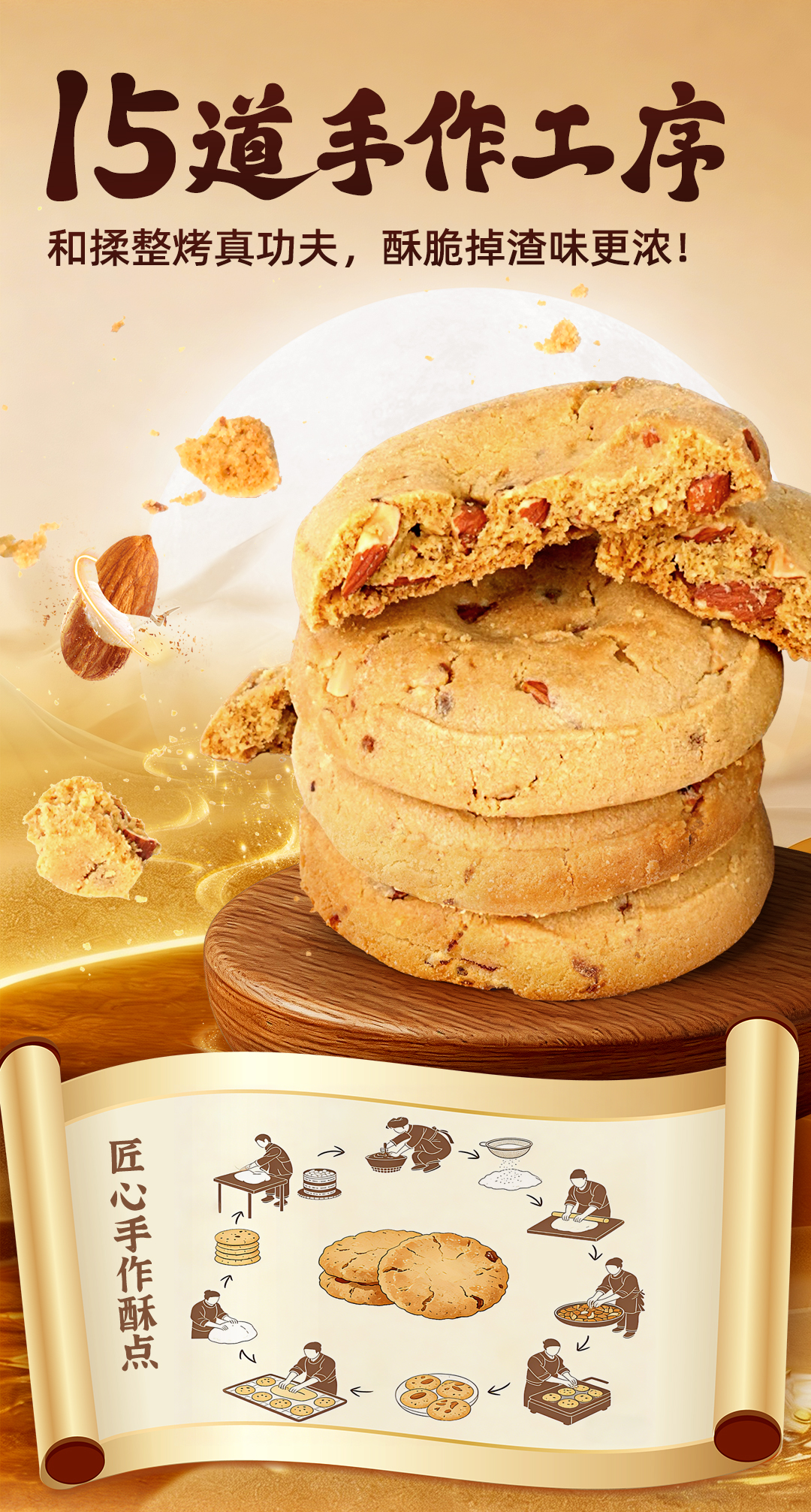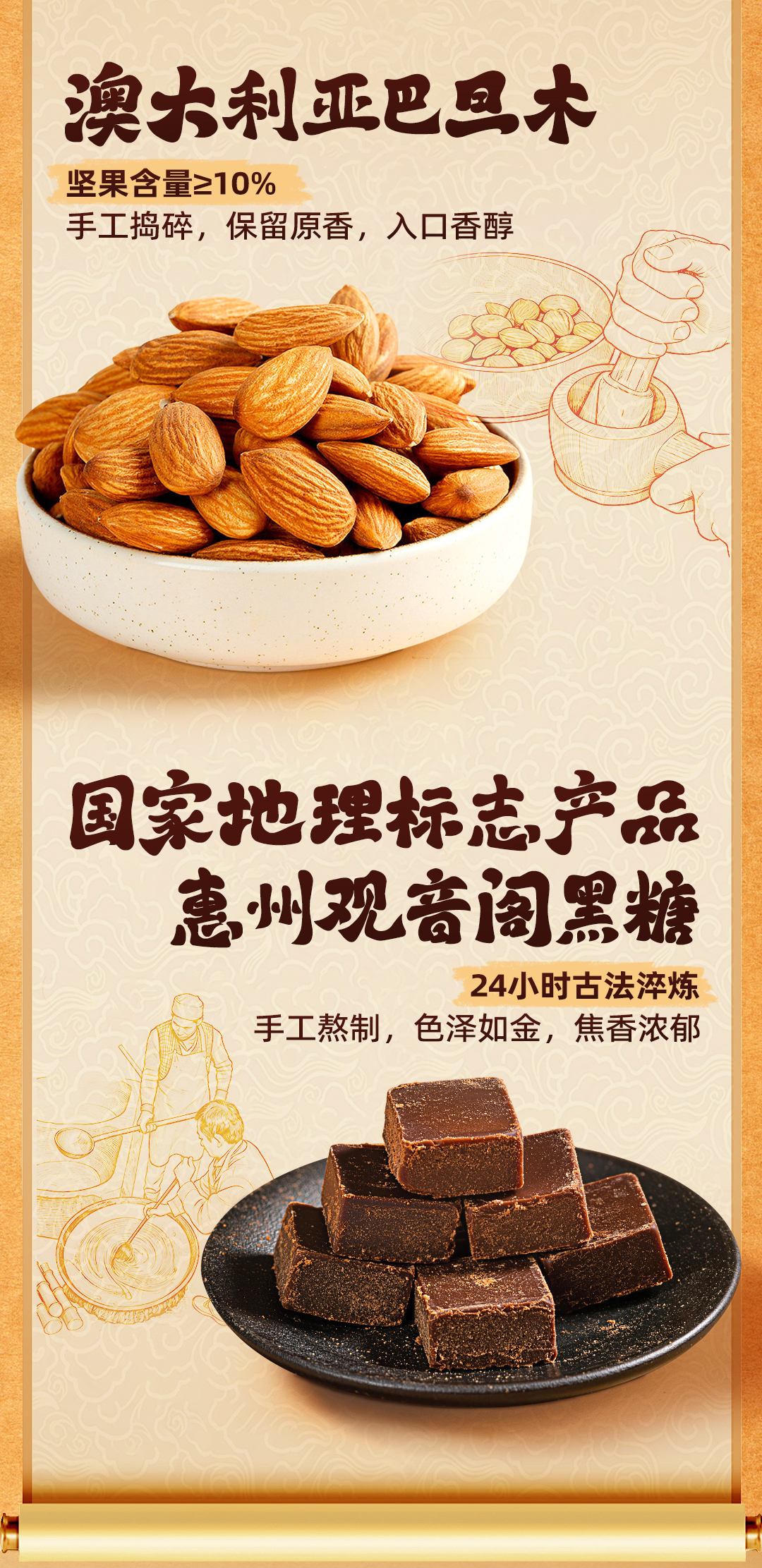 郭师黑糖坚果桃酥10枚装300g手工点心传统糕点
