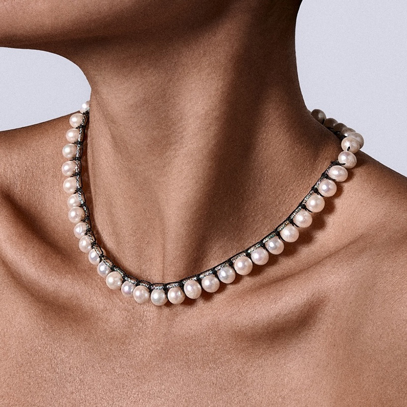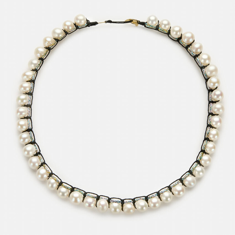 订购10周到|CHRISTIANA KAFA-stardust-黑线 彩线 白色淡水珍珠 项链[希腊设计师]