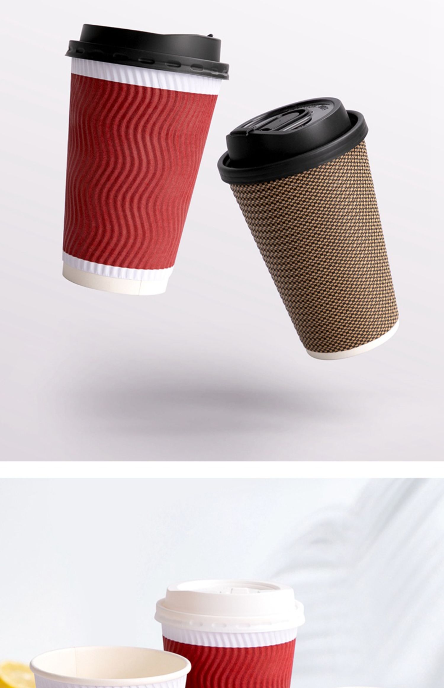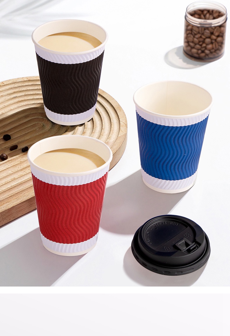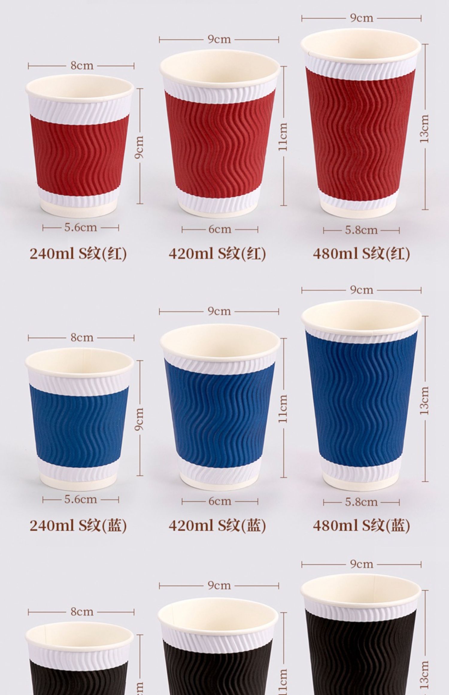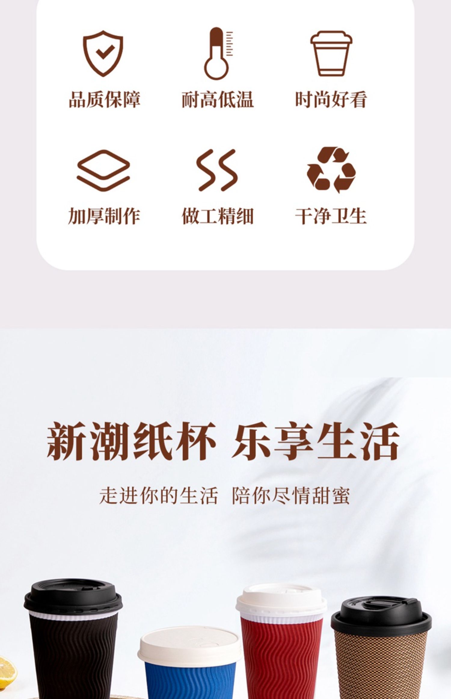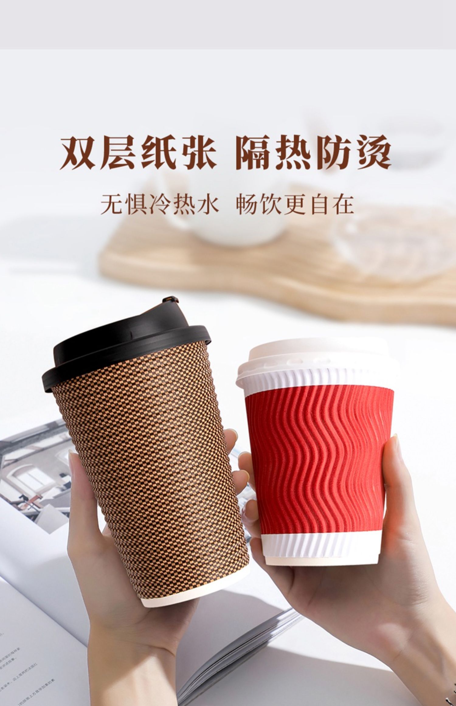 喇叭花三层加厚防烫瓦楞杯热饮咖啡杯一次性奶茶纸杯外卖打包商用