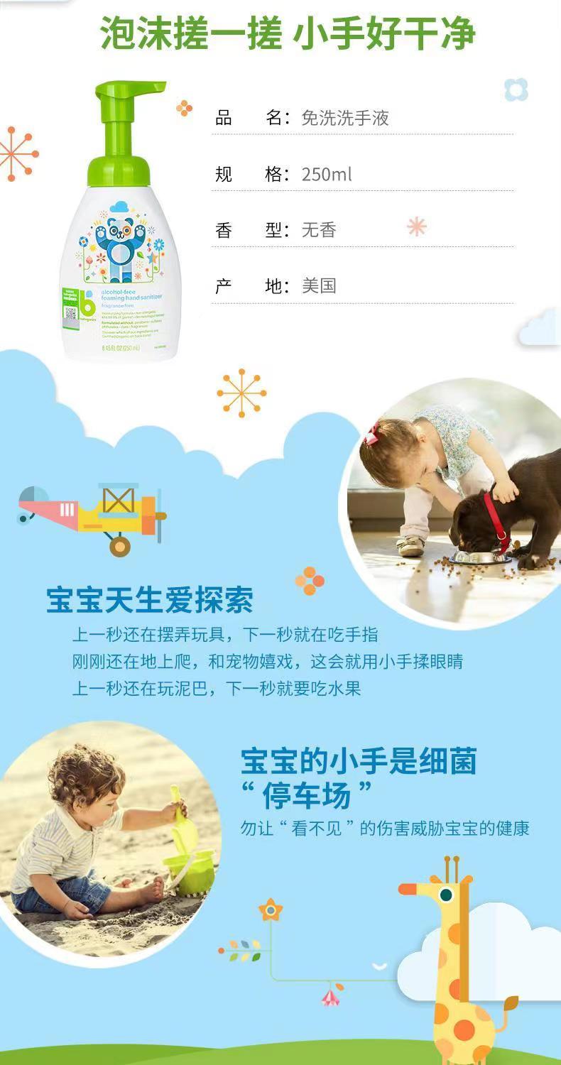 【一般贸易进口】美国Baby Ganics甘尼克宝贝无香泡沫免洗洗手液