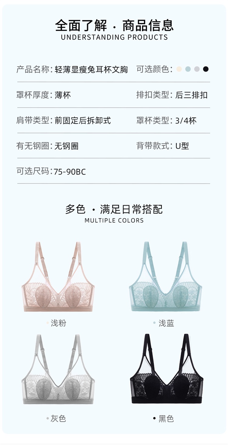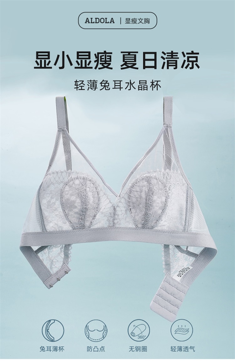 雅黛俪超薄兔耳朵内衣女轻薄性感大胸显小无钢圈收副乳文胸