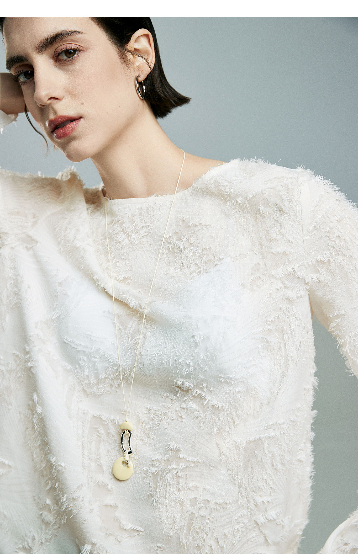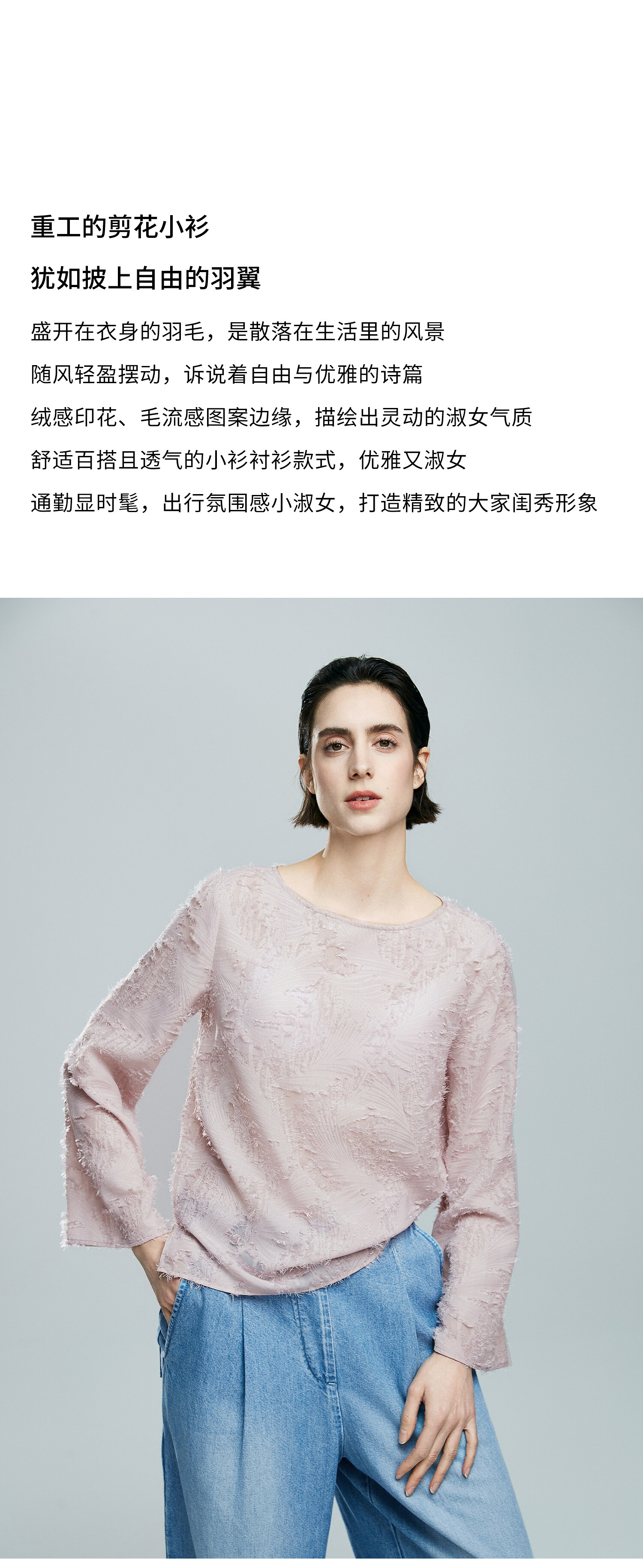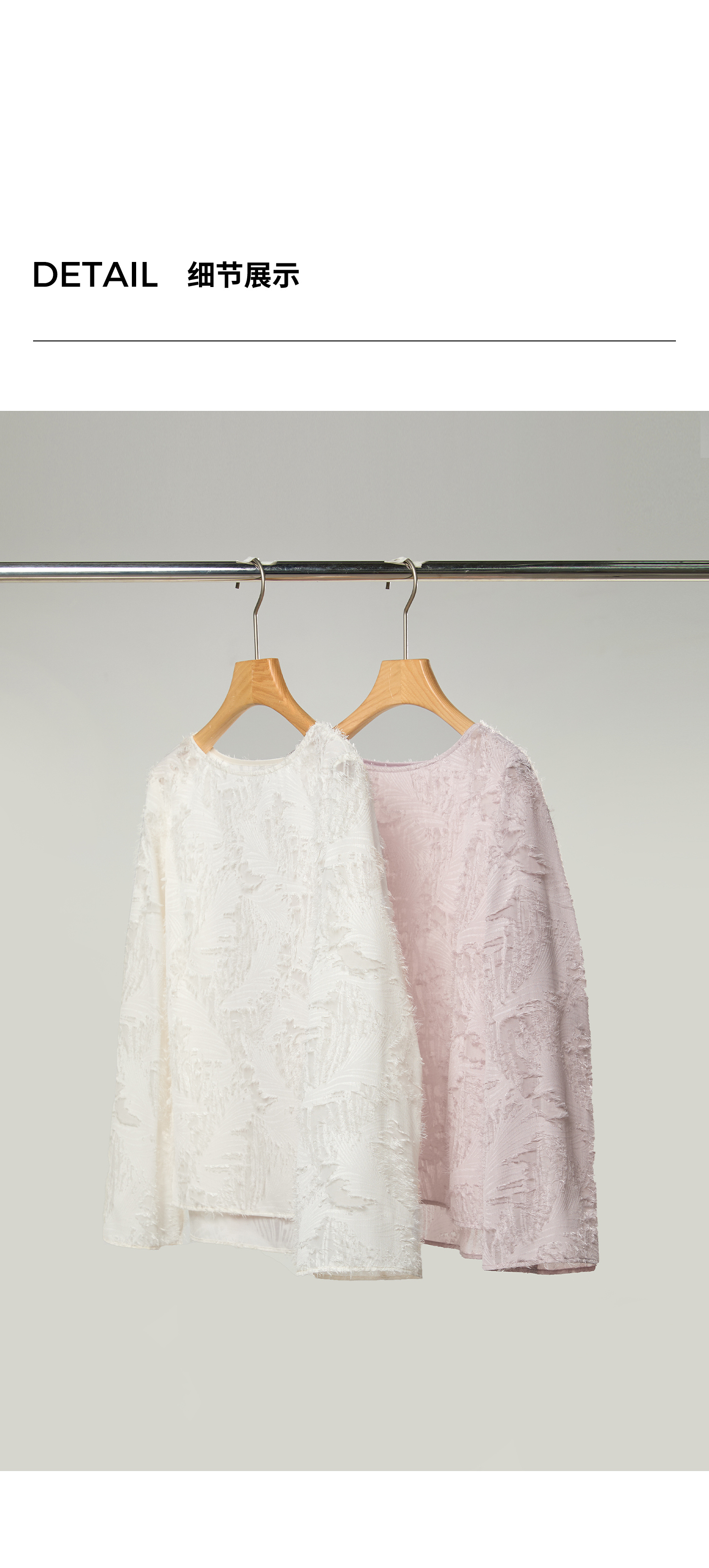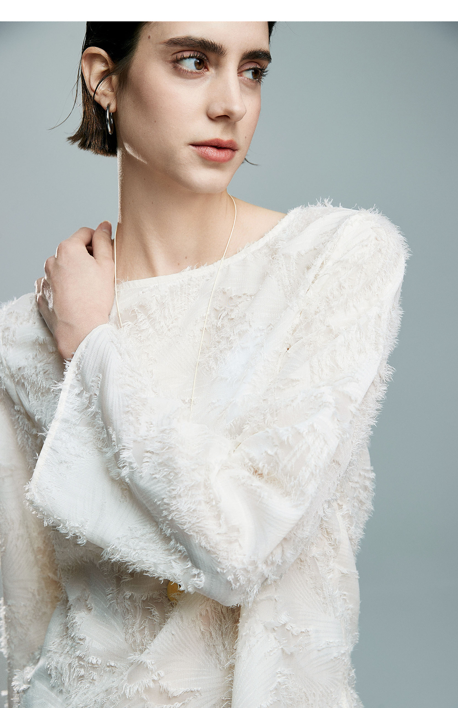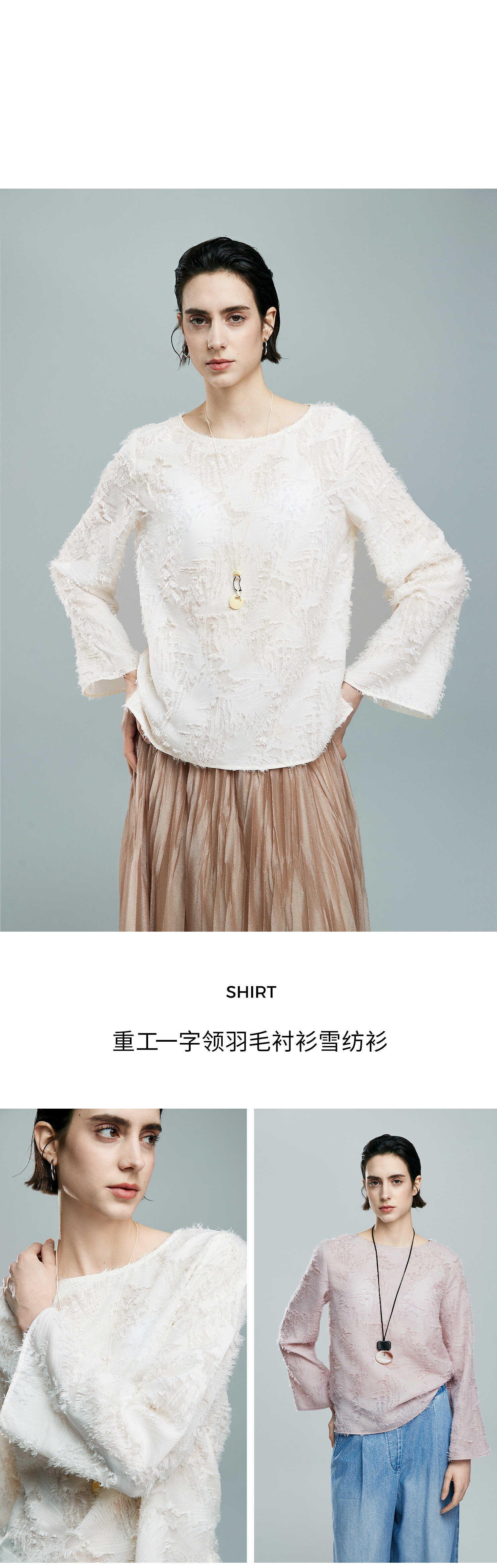 棉仓363604031-初棉重工一字领羽毛衬衫雪纺衫25春夏