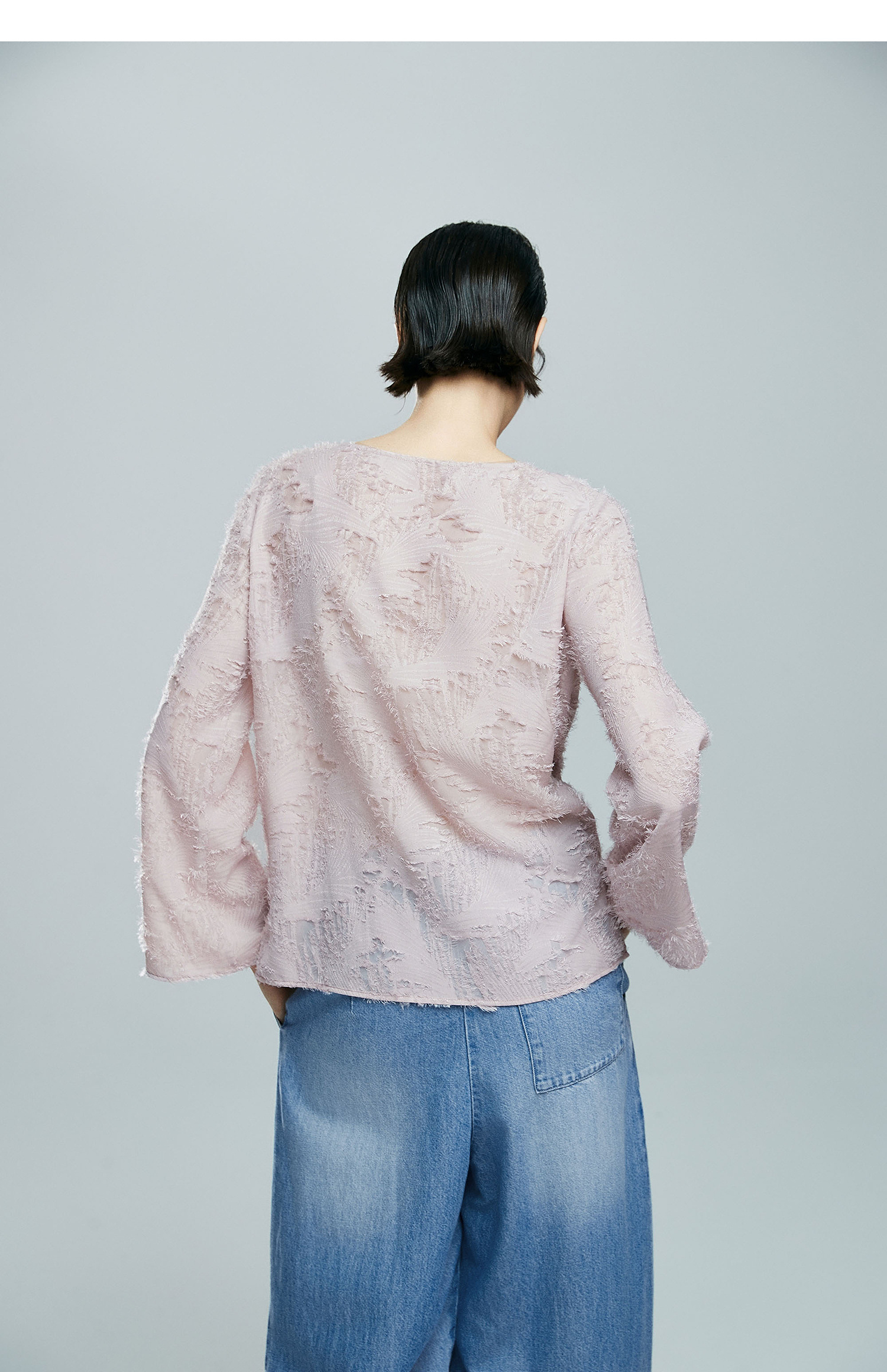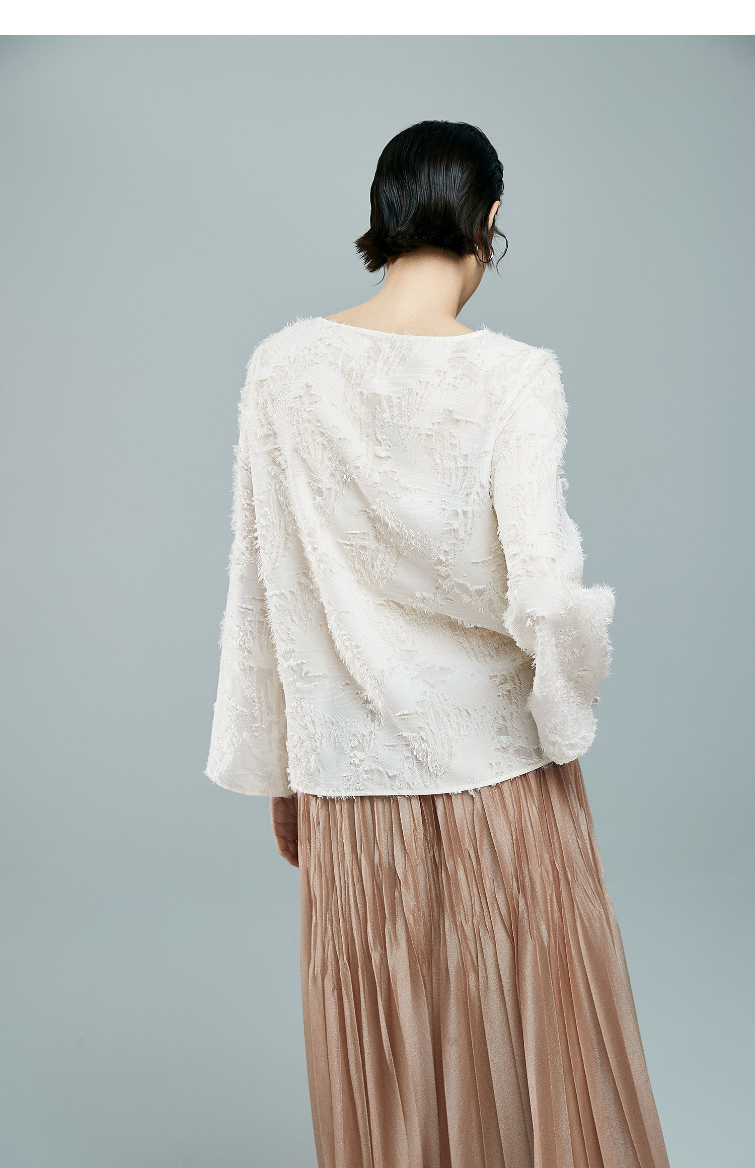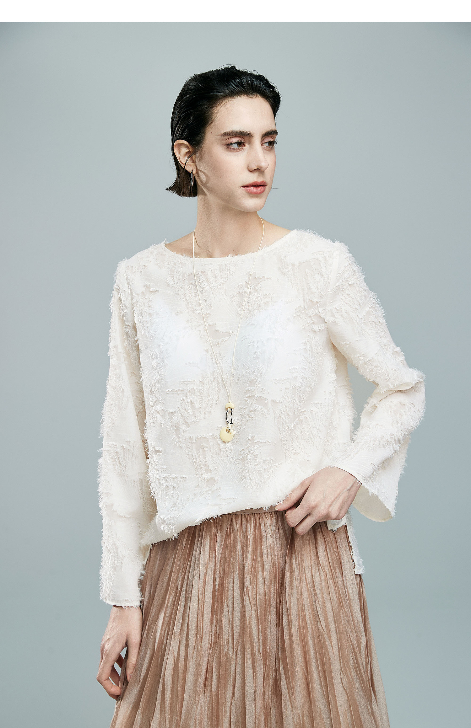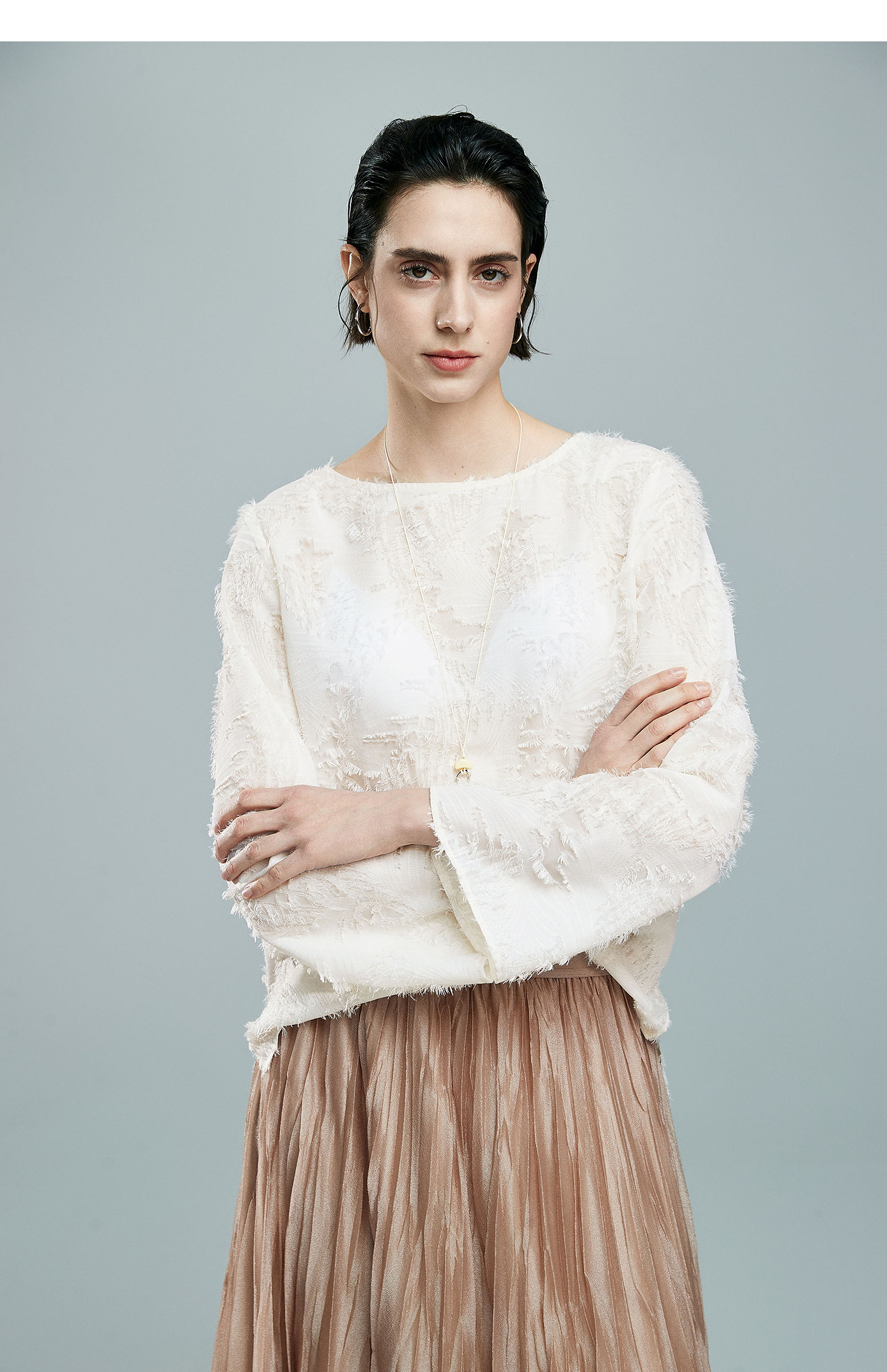 棉仓363604031-初棉重工一字领羽毛衬衫雪纺衫25春夏