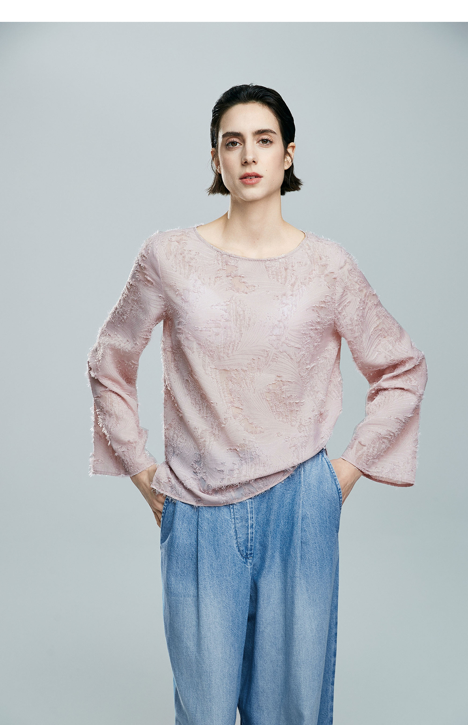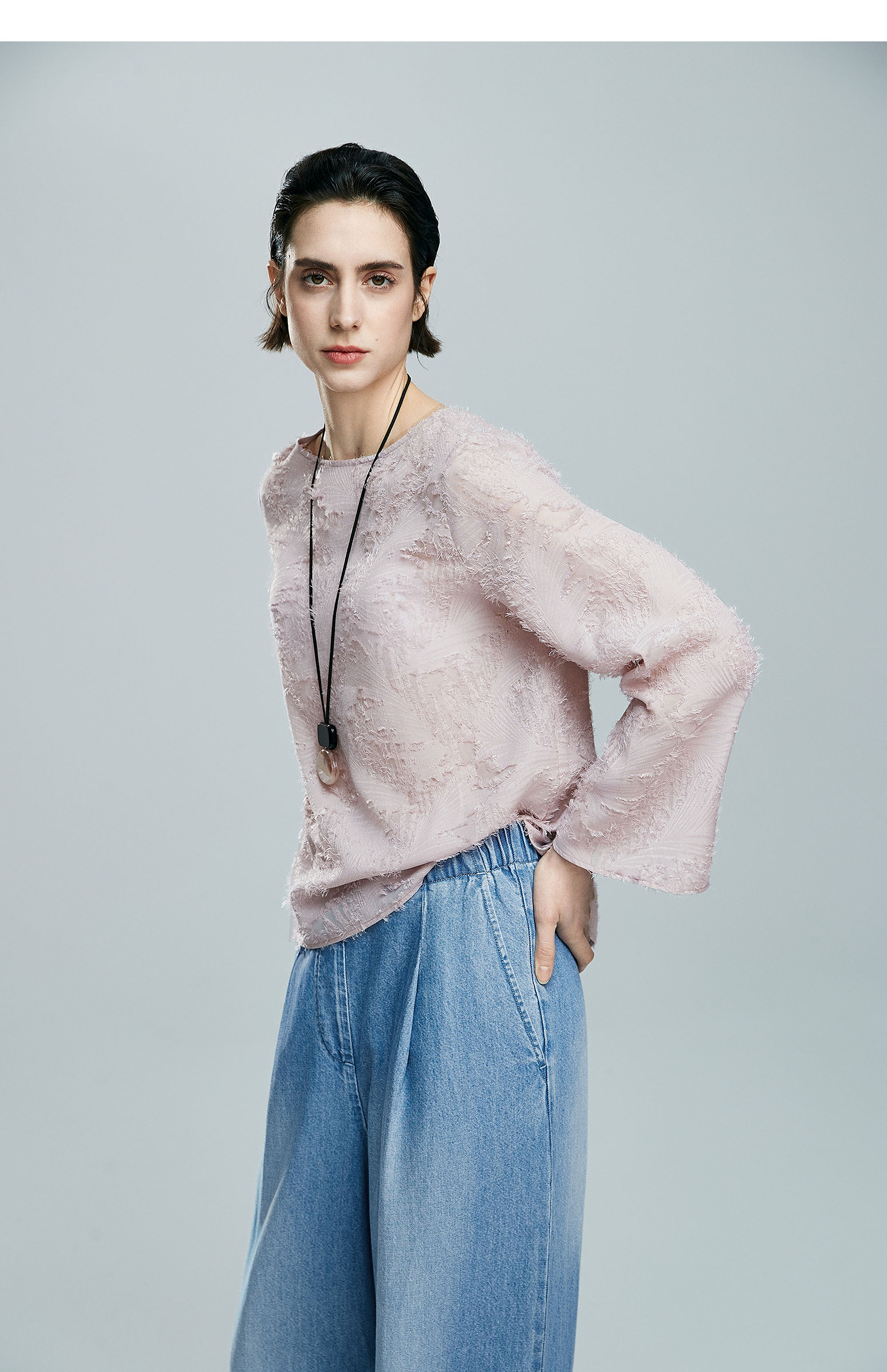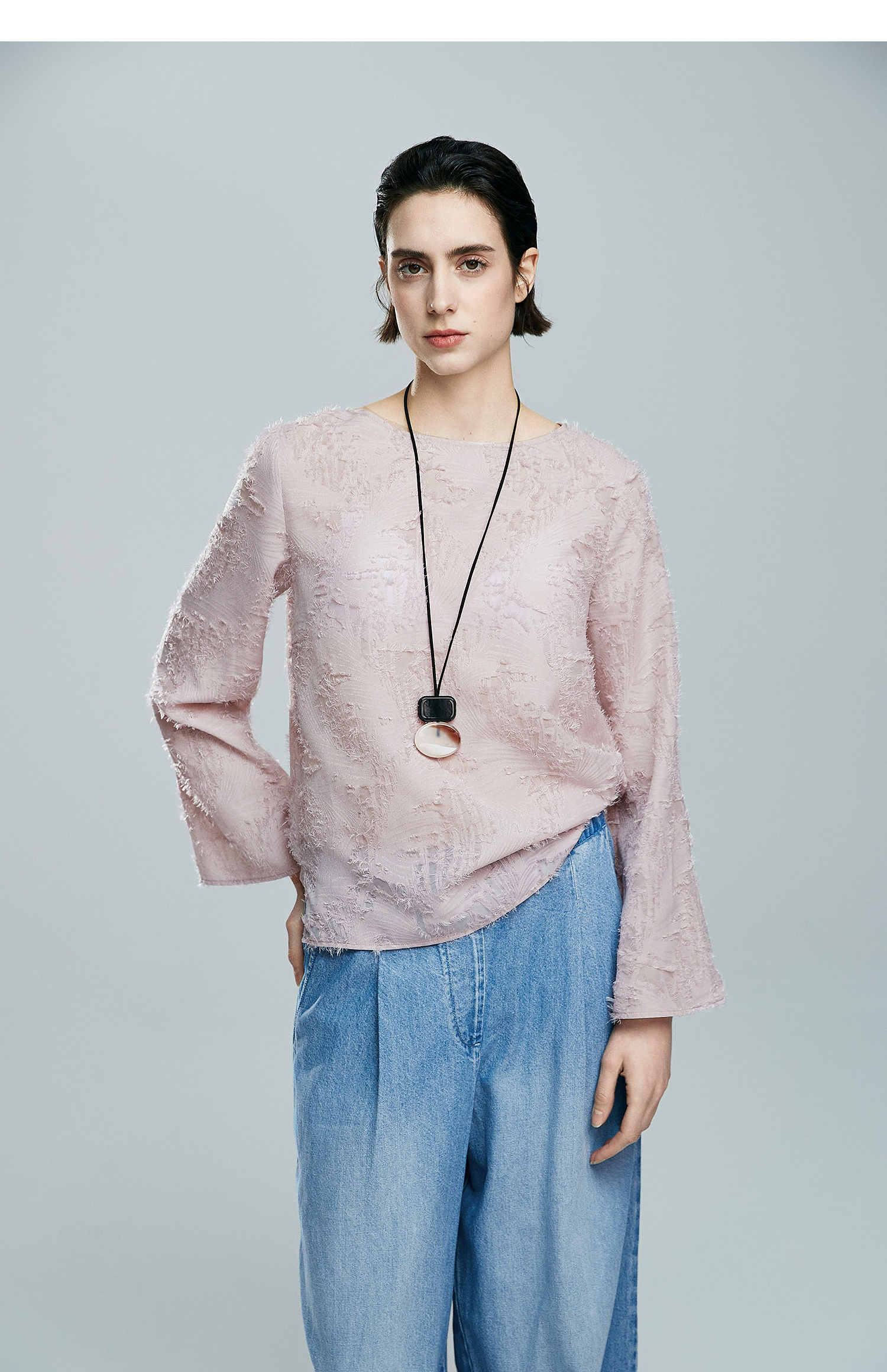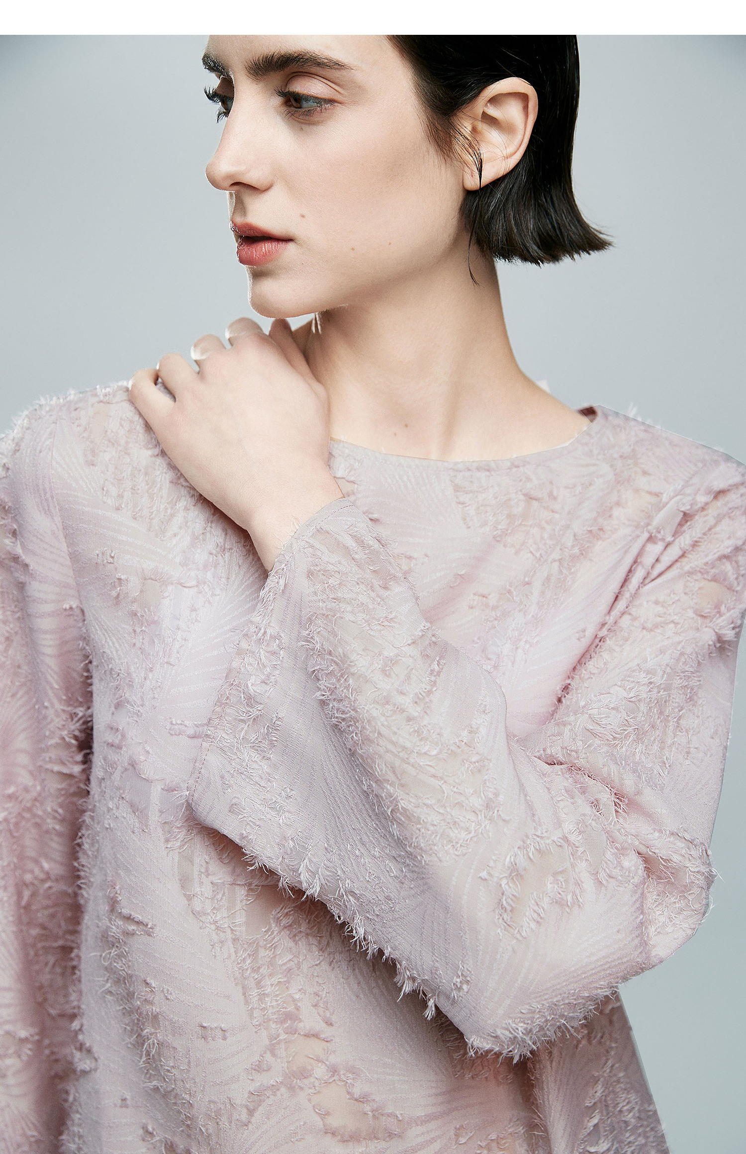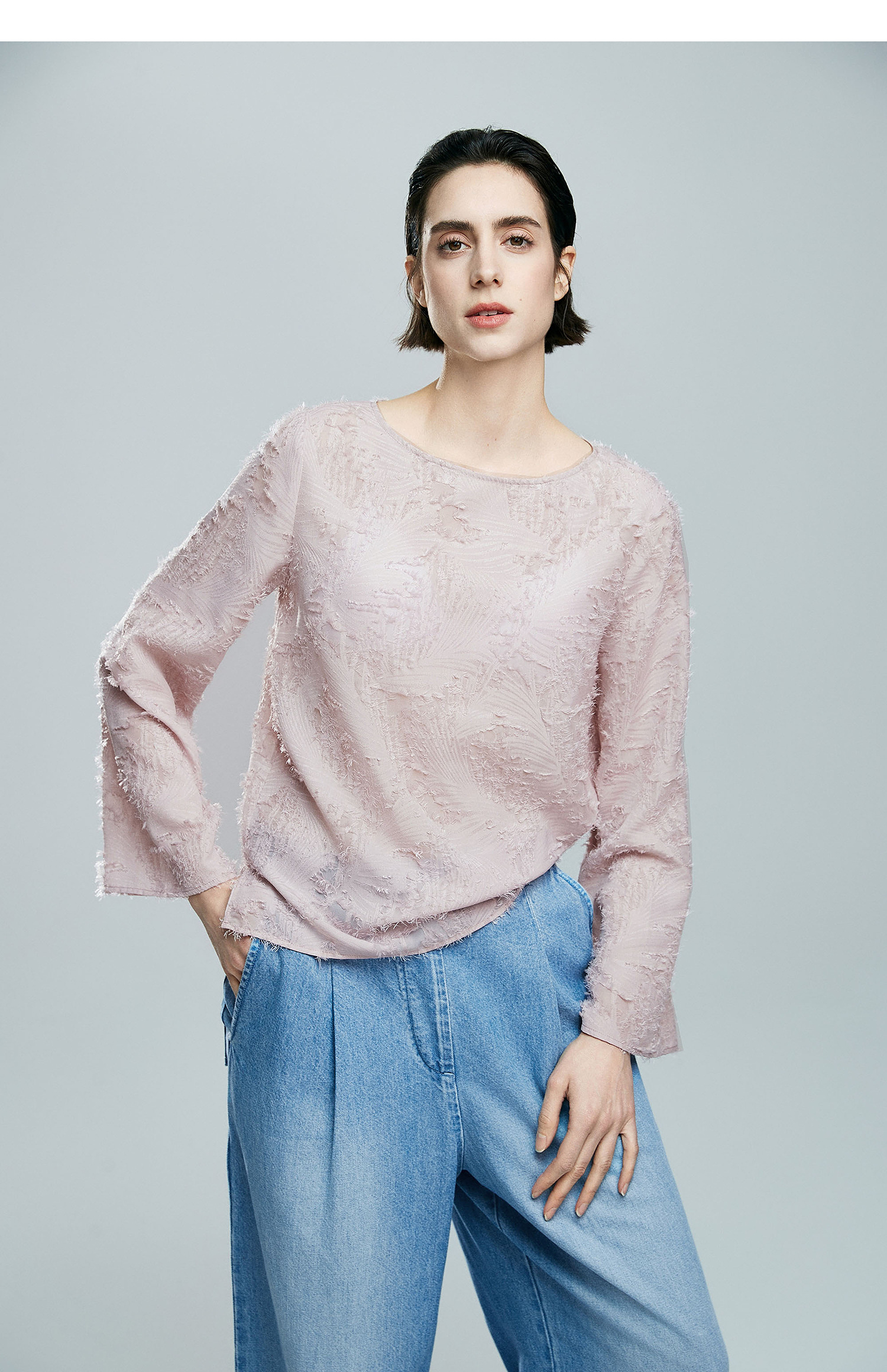 棉仓363604031-初棉重工一字领羽毛衬衫雪纺衫25春夏