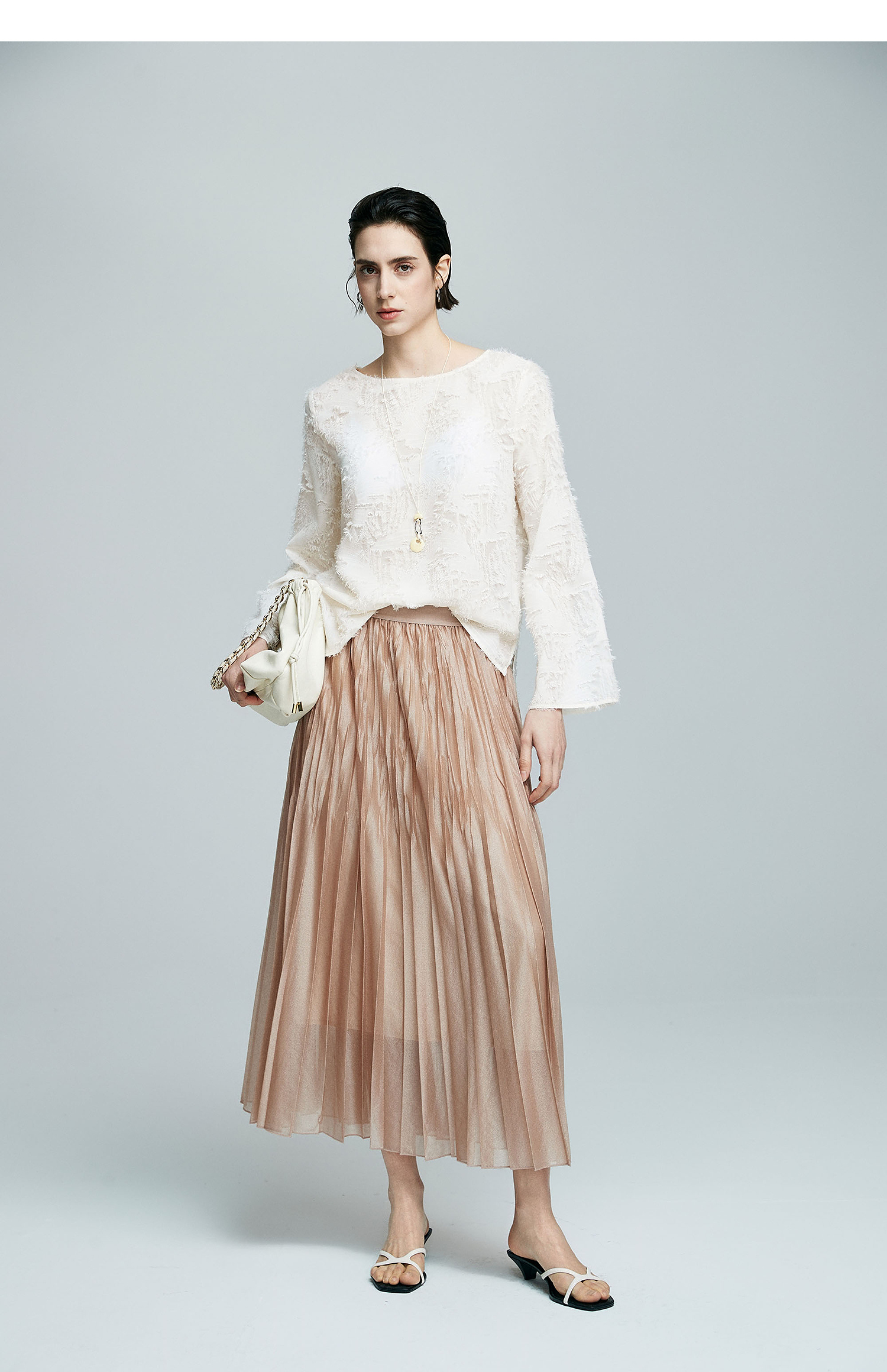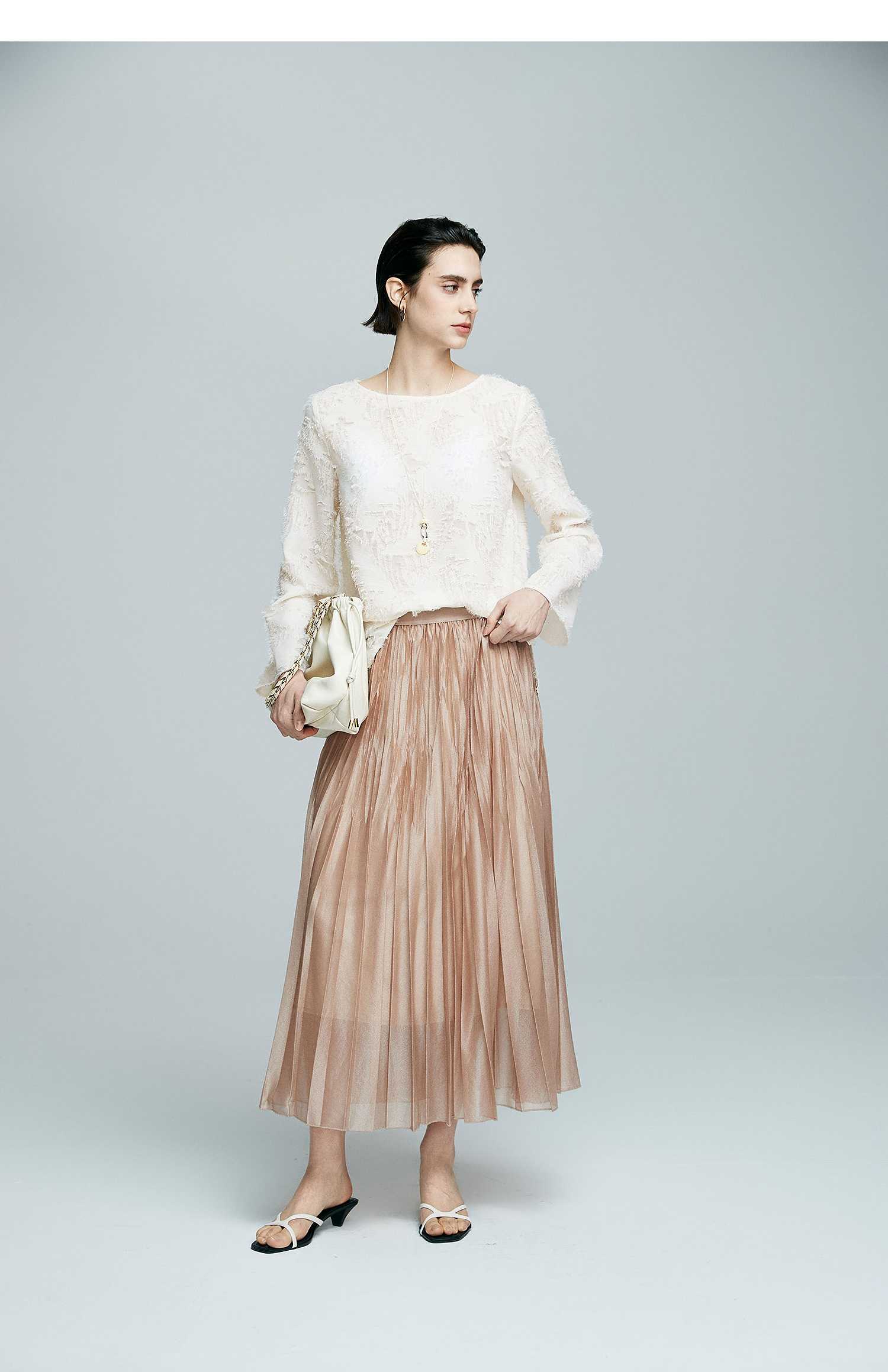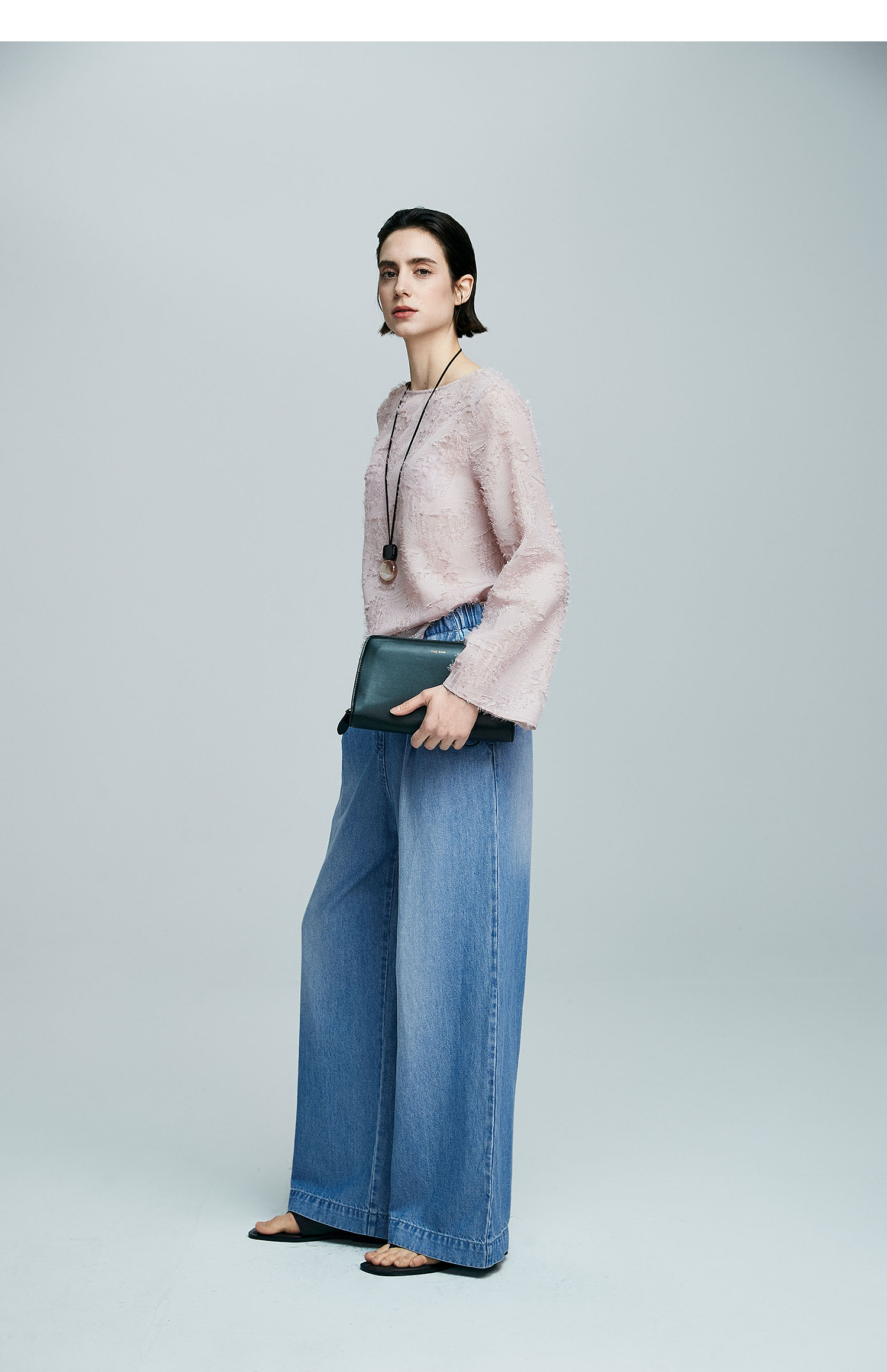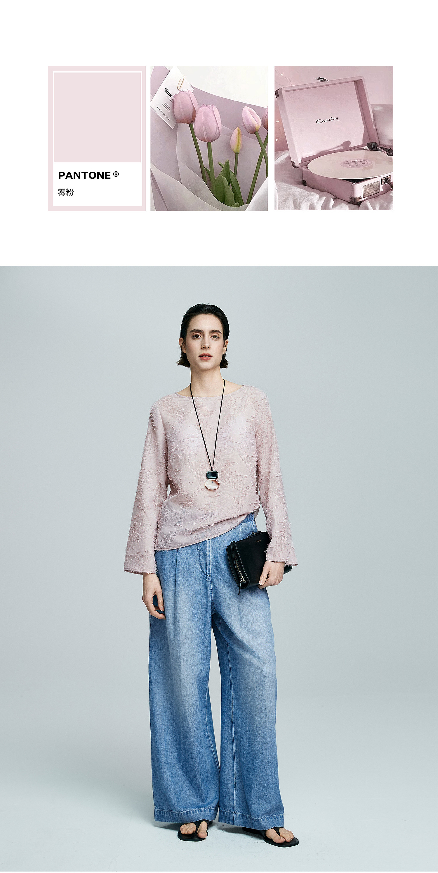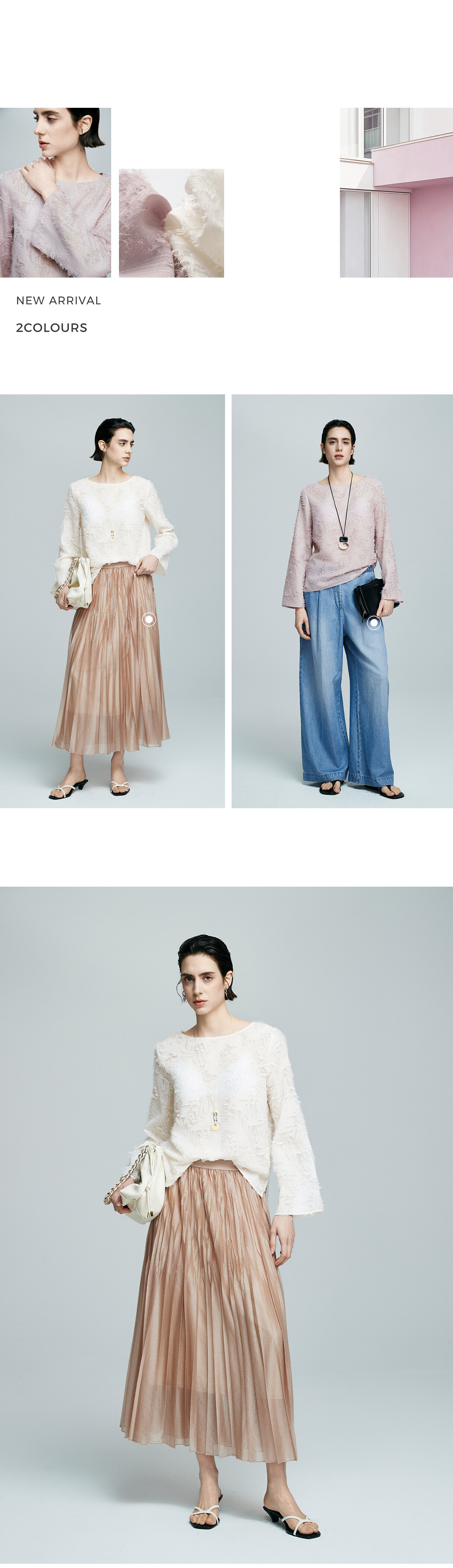 棉仓363604031-初棉重工一字领羽毛衬衫雪纺衫25春夏