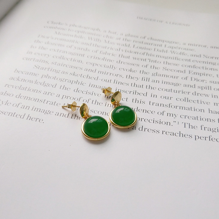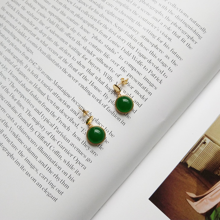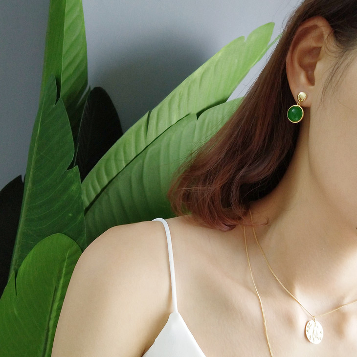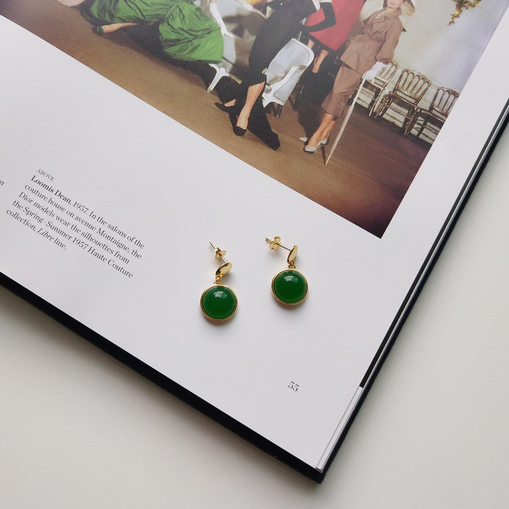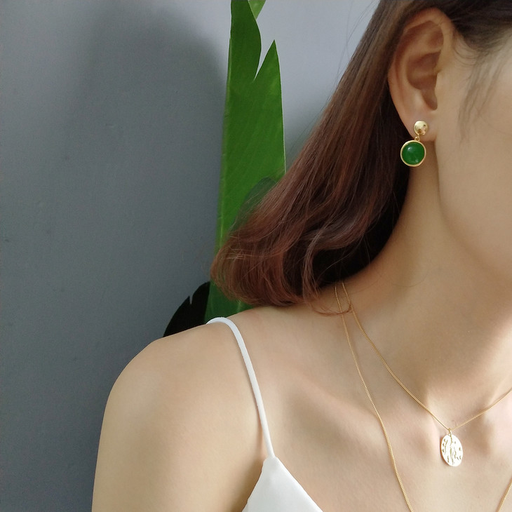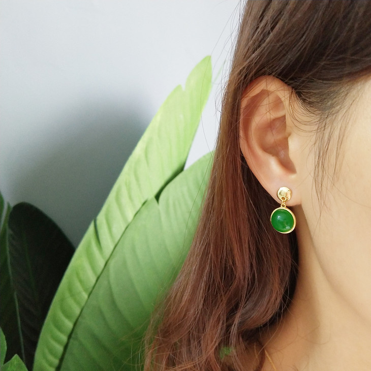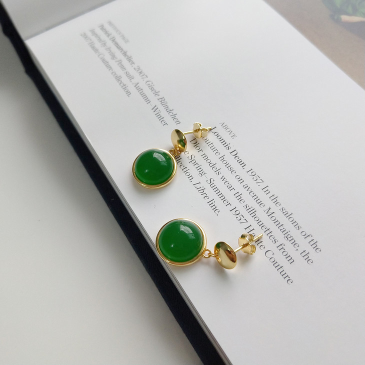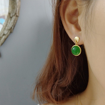 【首饰】925纯银绿玛瑙耳钉女日简约气质甜美耳饰