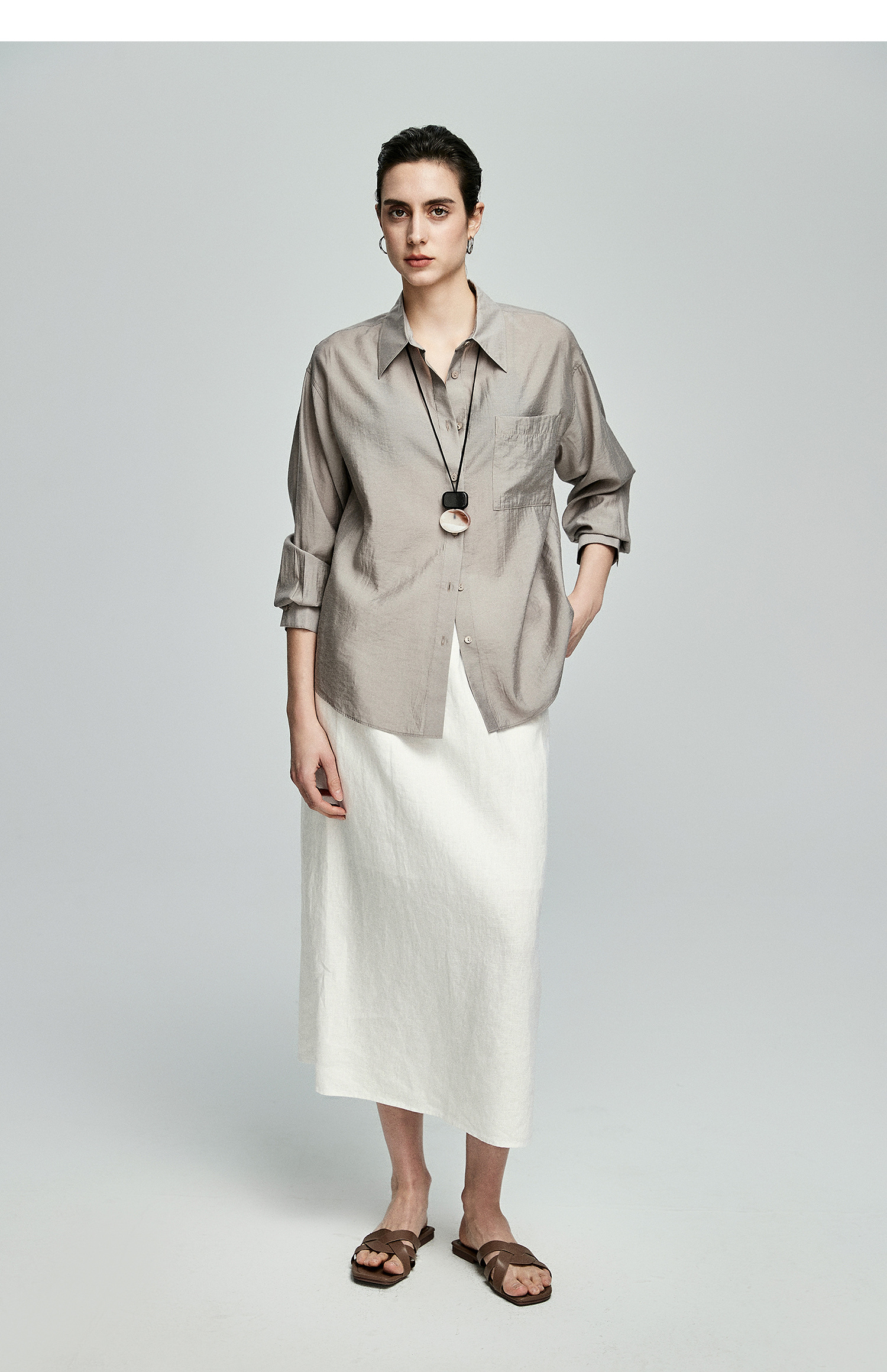 棉仓356801001 -法国罗纹微宽松长袖T恤