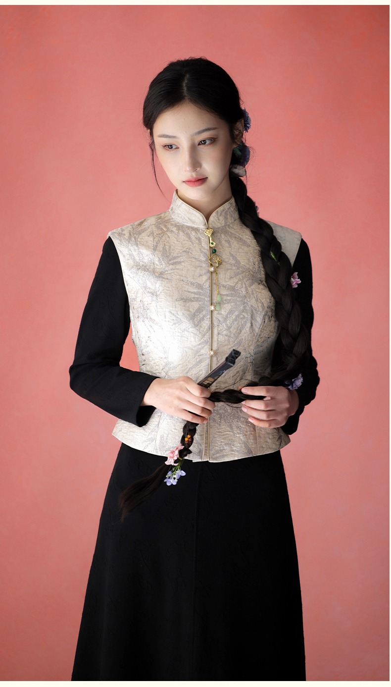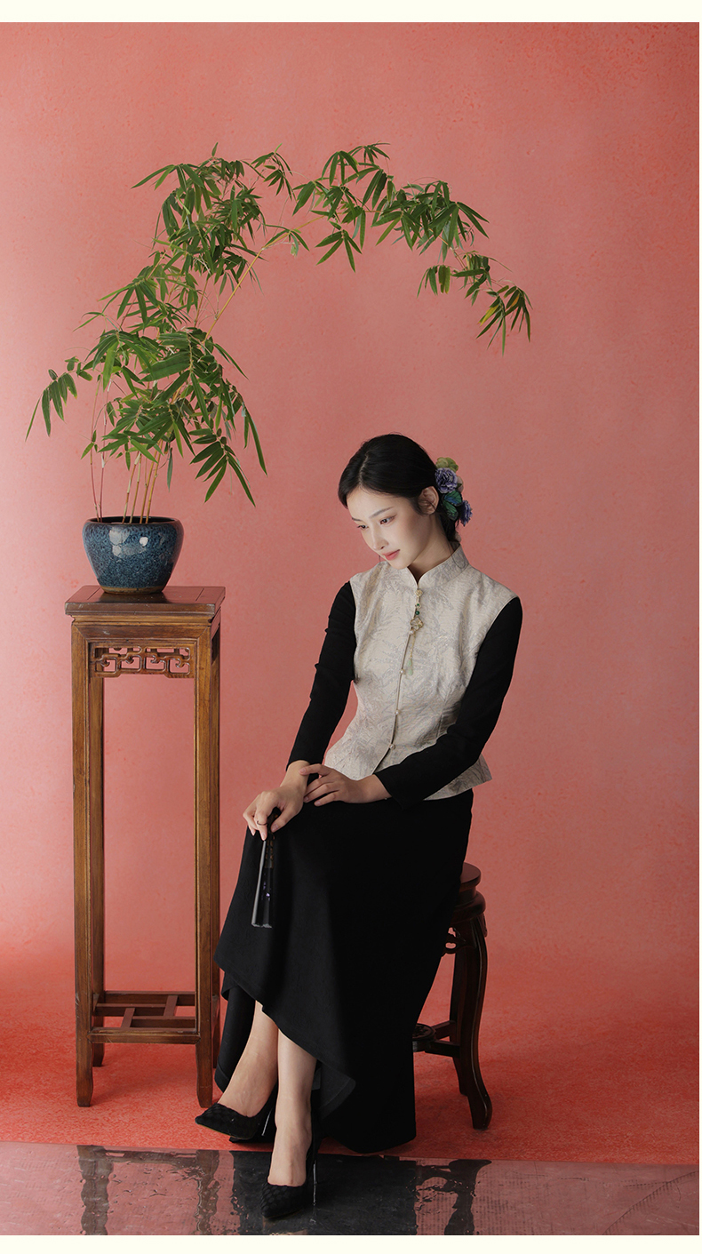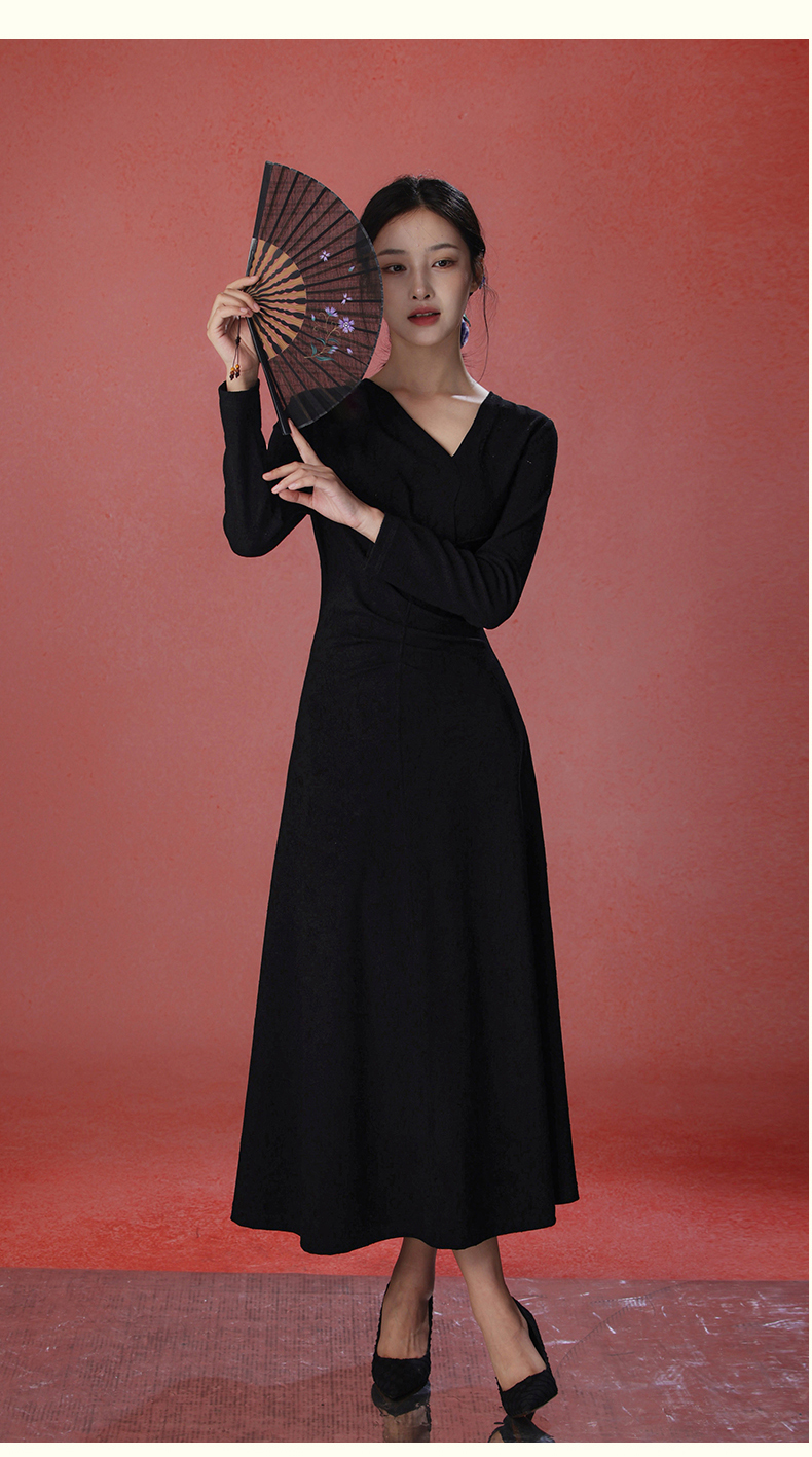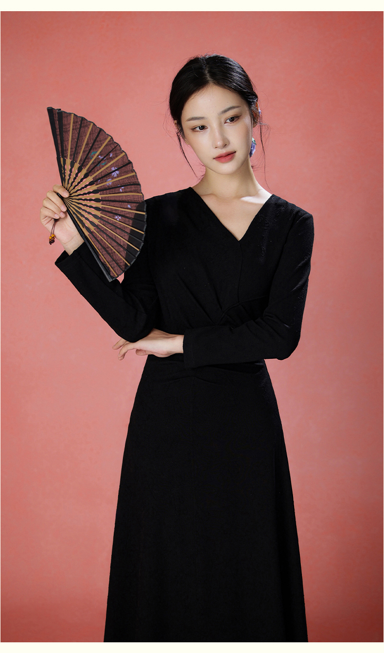逸红颜墨妤2025深秋新款弹力暖感新中式显瘦小黑裙打底连衣长裙女
