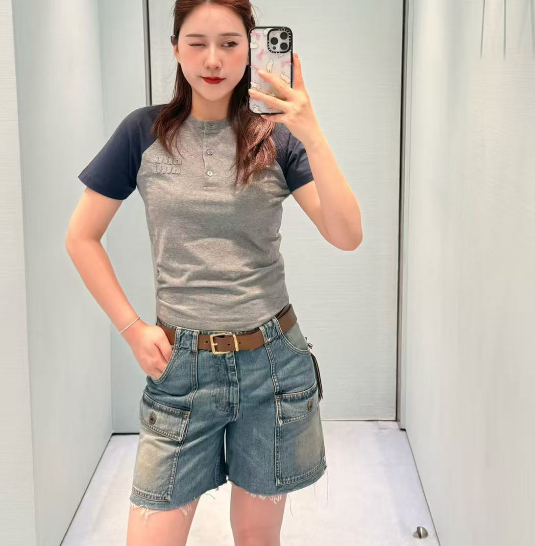 【edj1】早春学院风女士时尚休闲撞色短袖T恤!!