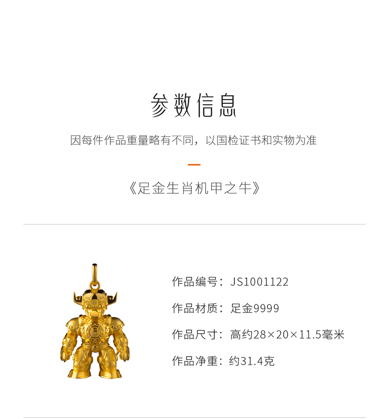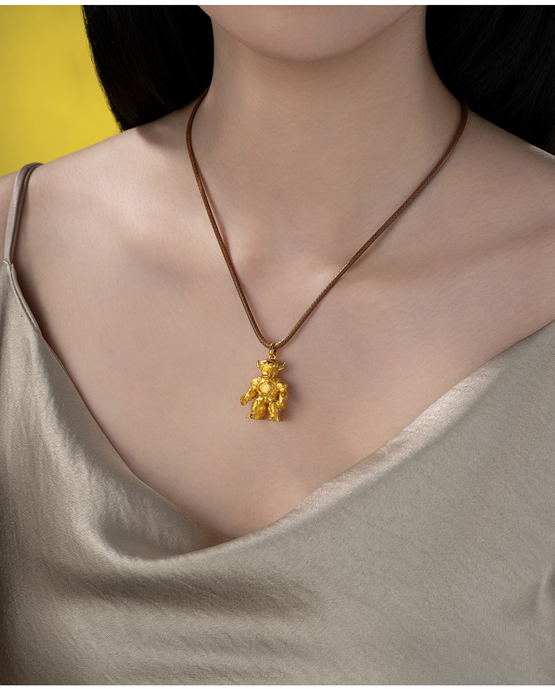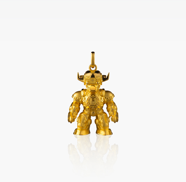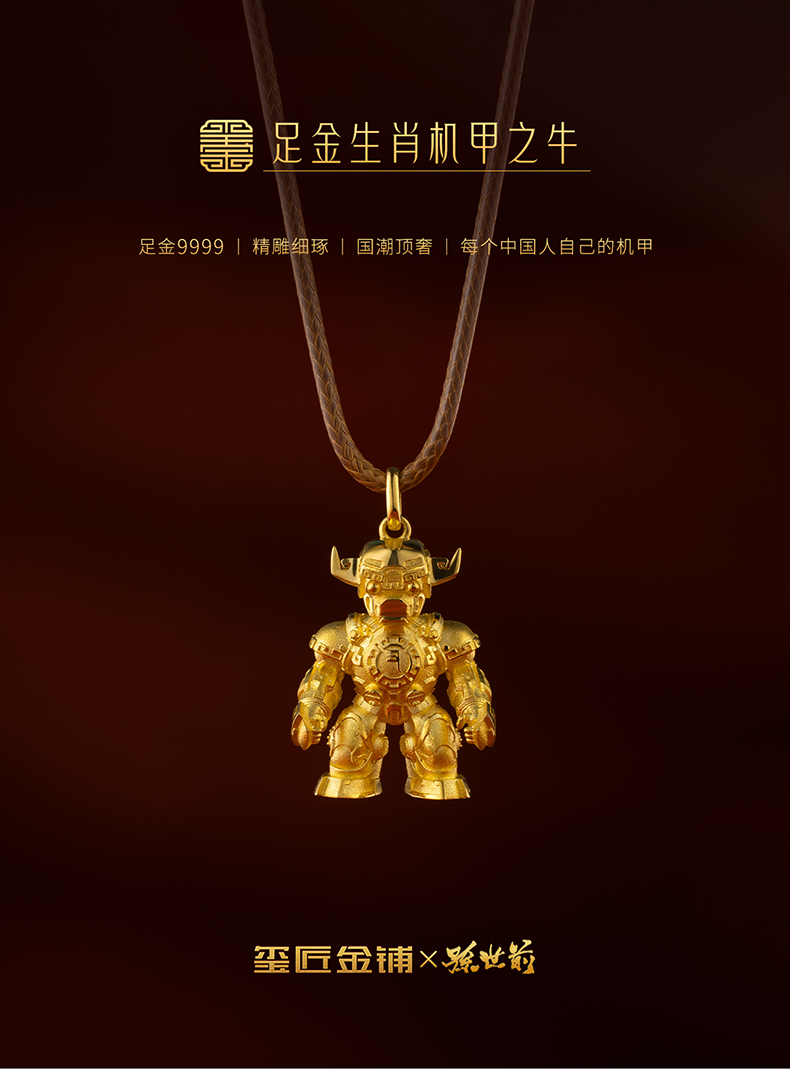 玺匠金铺《足金生肖机甲之牛》足金9999 吊坠项链生日礼物