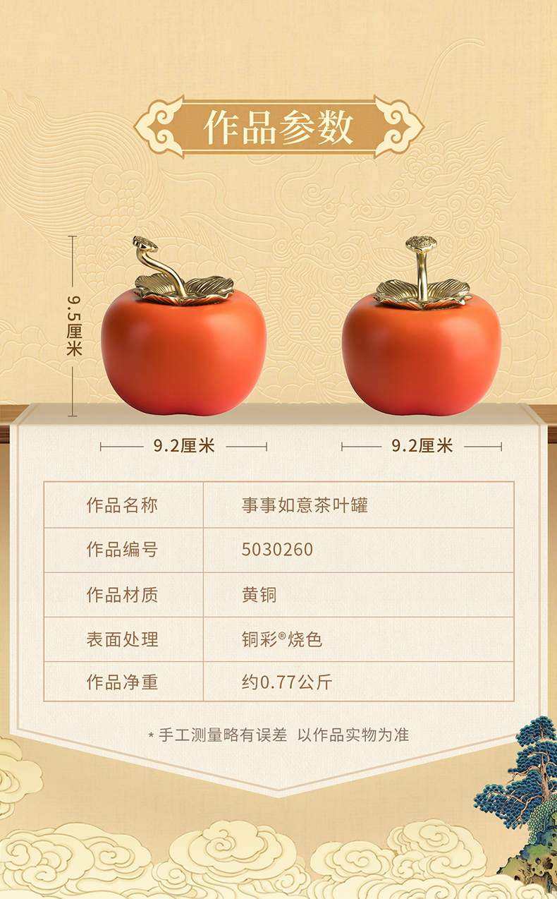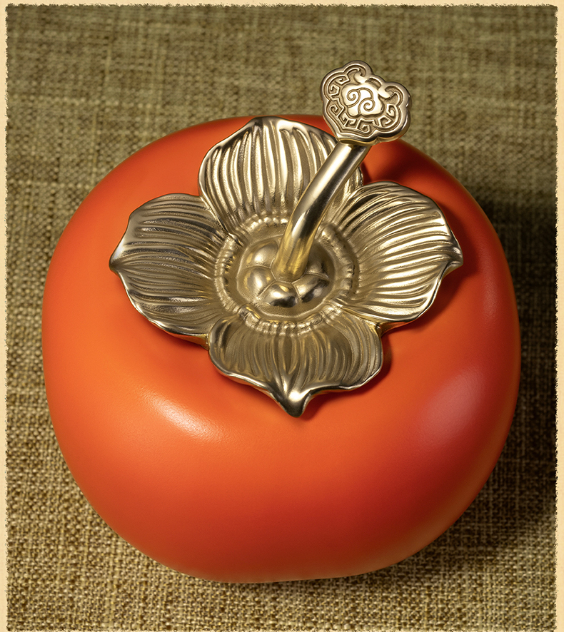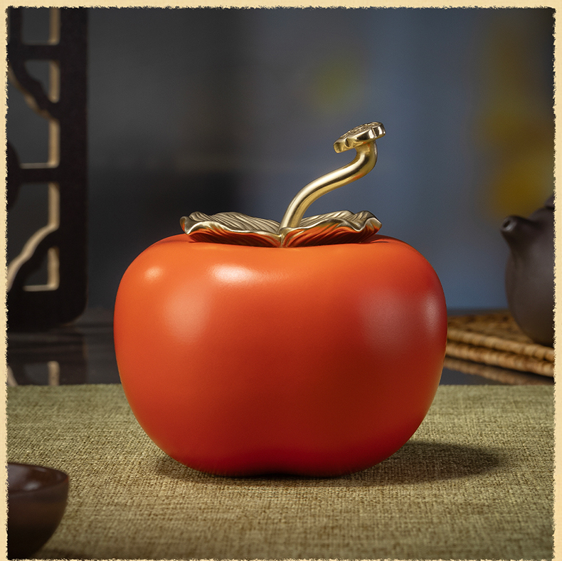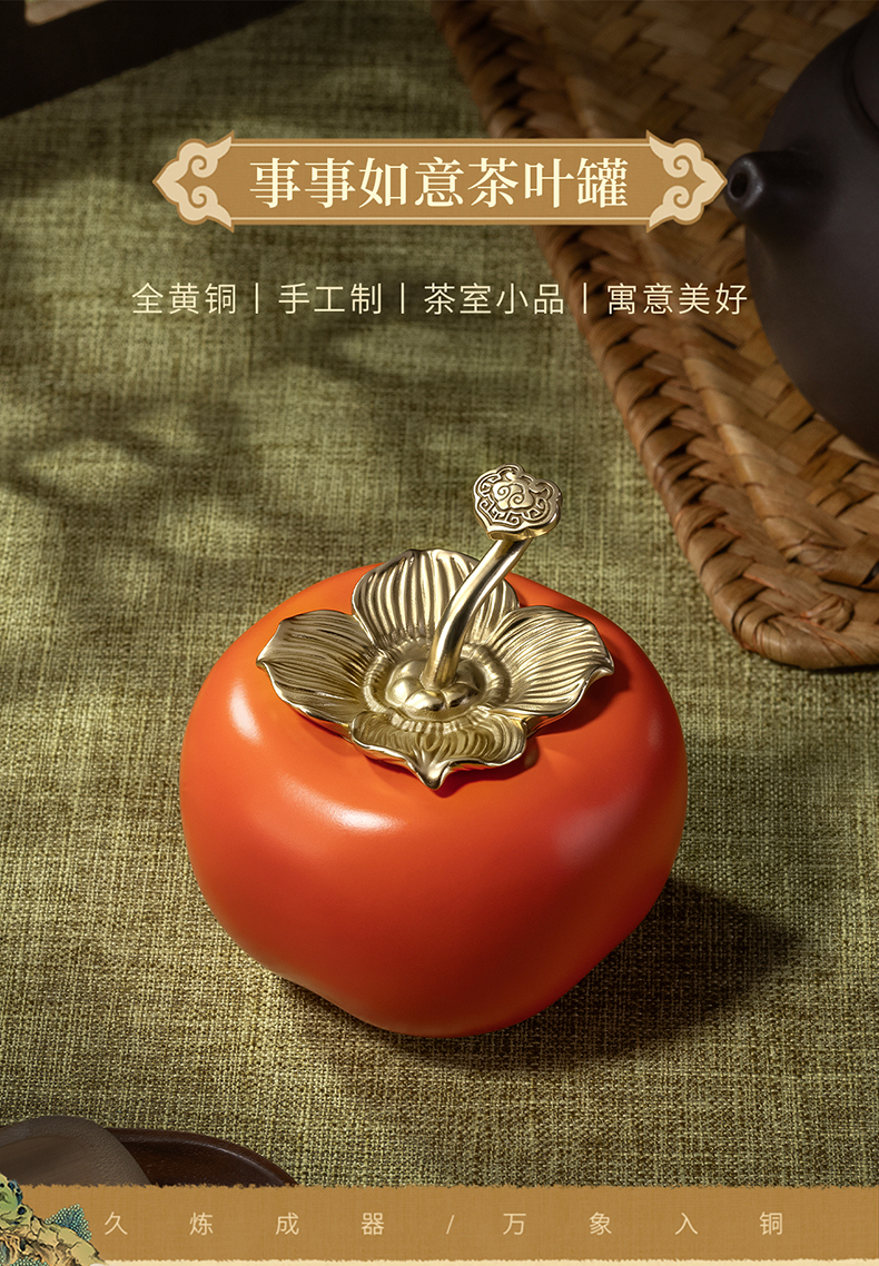 铜师傅《事事如意茶叶罐》客厅铜柿子摆件 家居装饰工艺品礼物