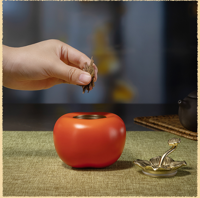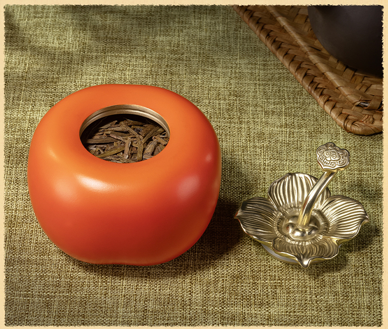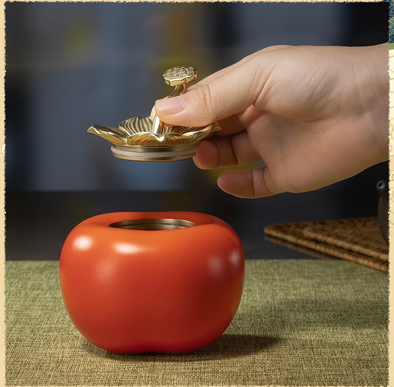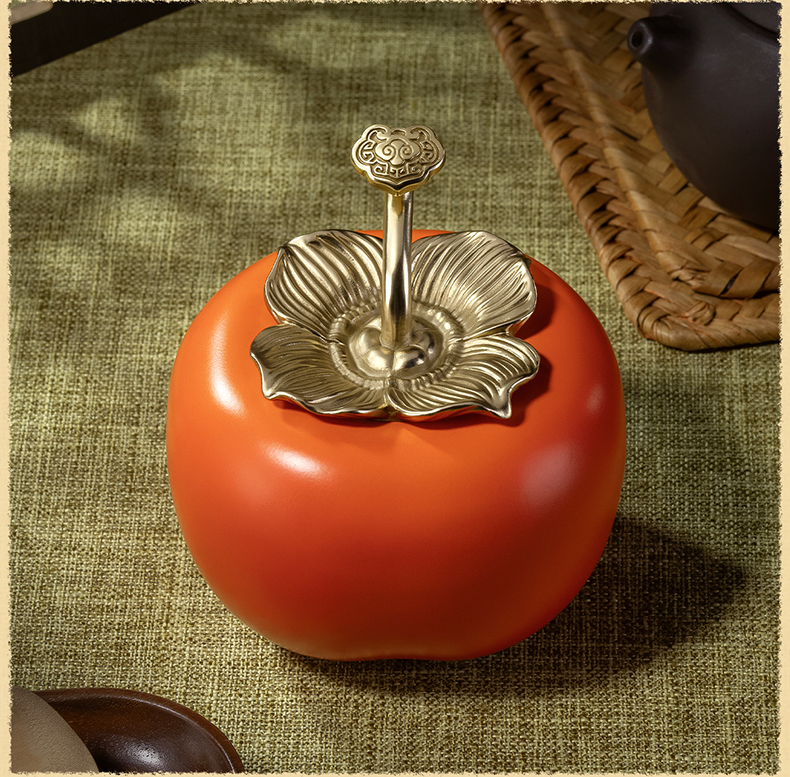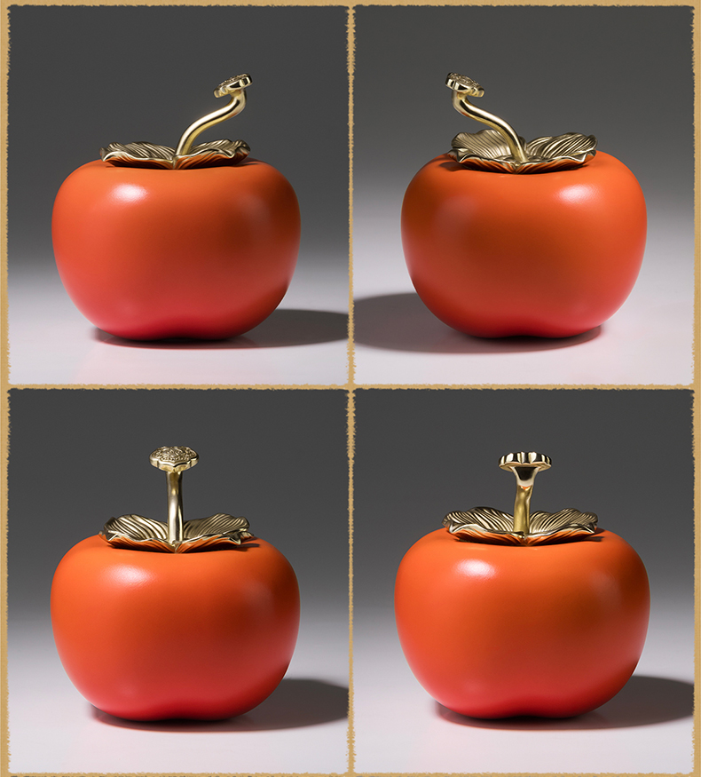 铜师傅《事事如意茶叶罐》客厅铜柿子摆件 家居装饰工艺品礼物