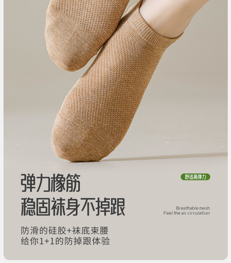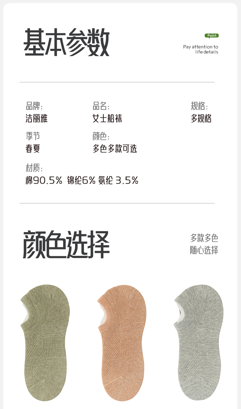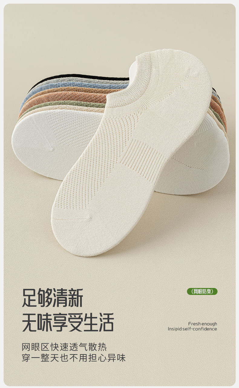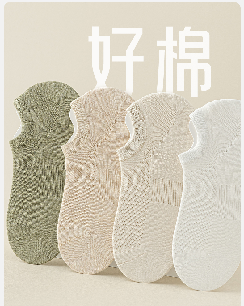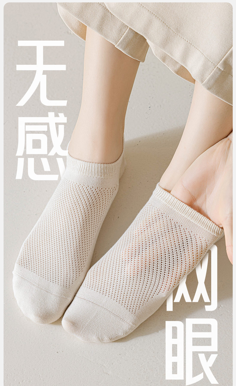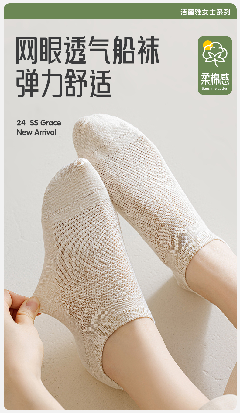 洁丽雅女士船袜网眼透气硅胶防滑隐形女袜纯色简约棉质袜子女