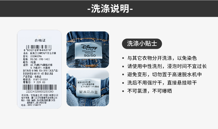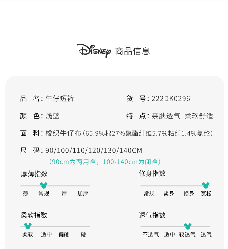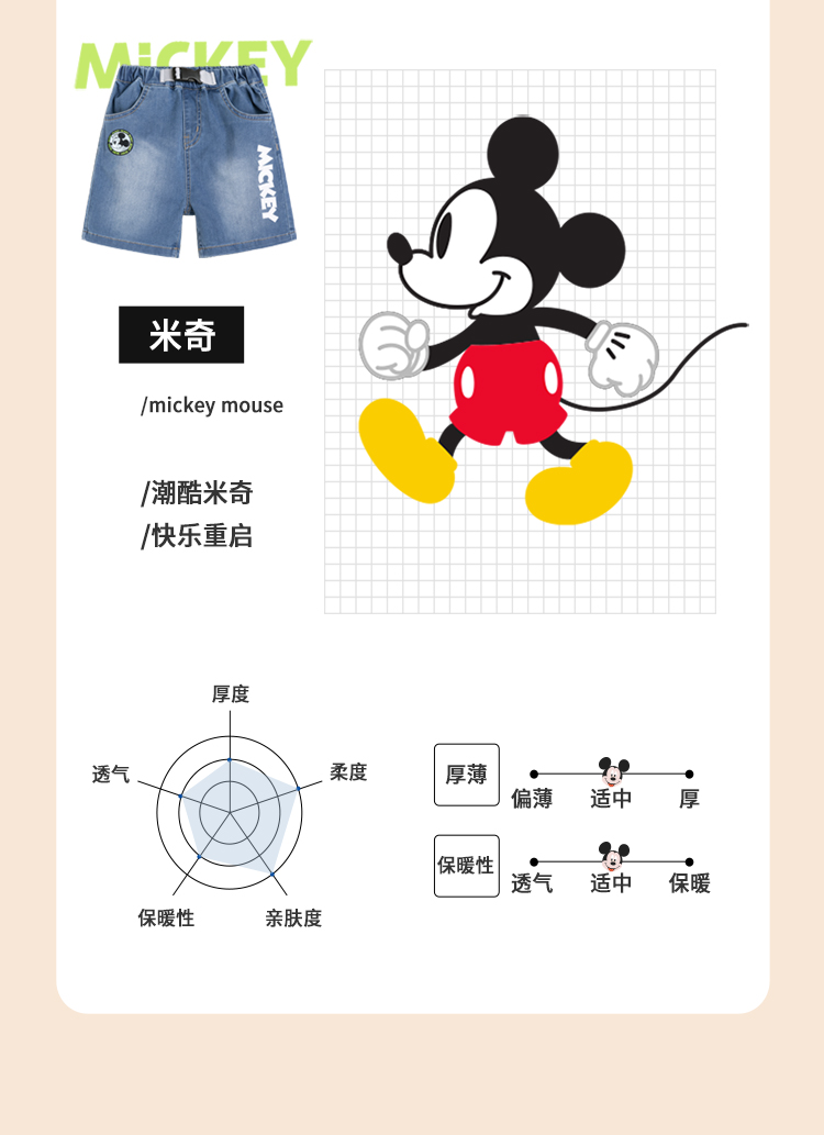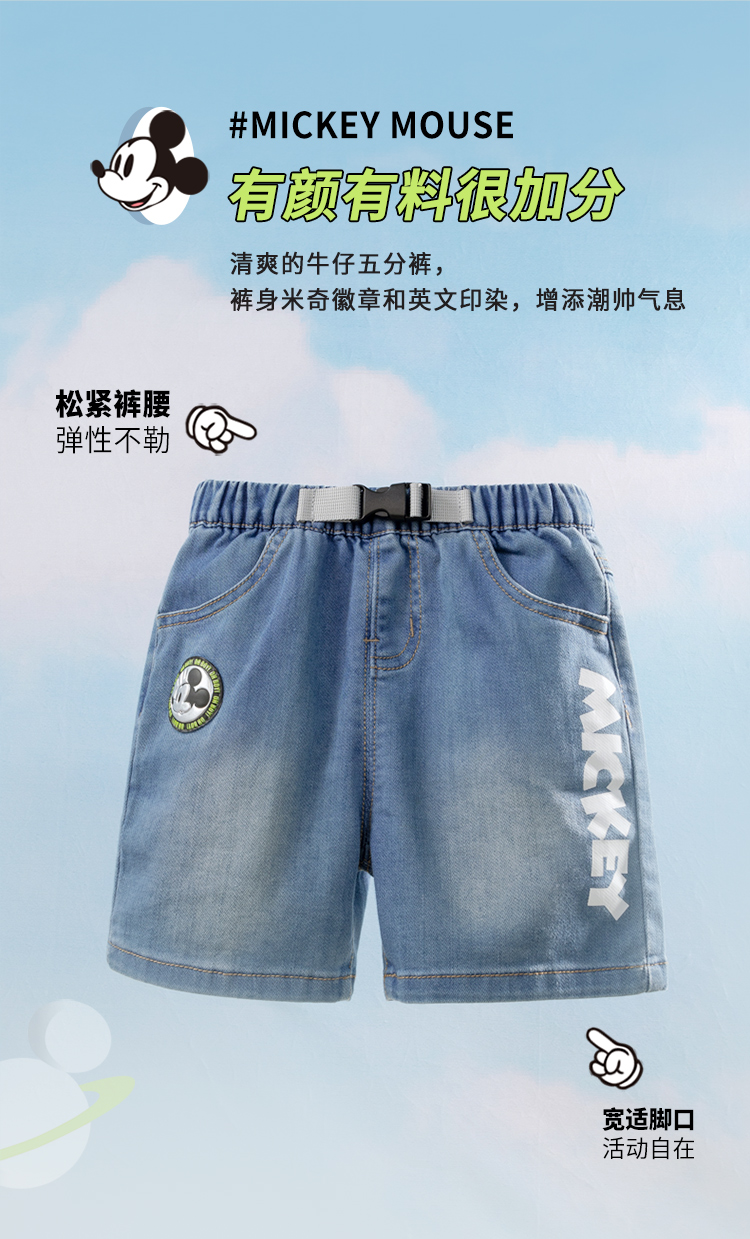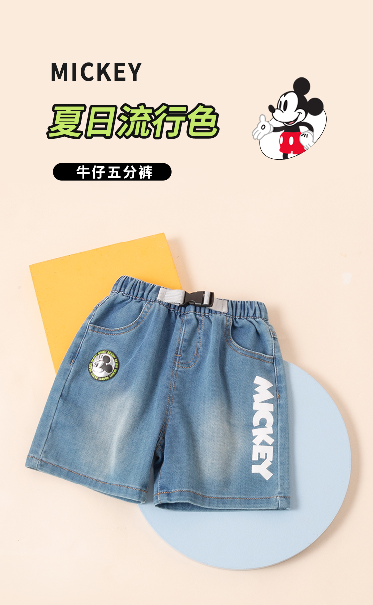 【商场同款】迪士尼童装男童牛仔短裤夏季新品清爽中大童宝宝米奇卡通休闲短裤
