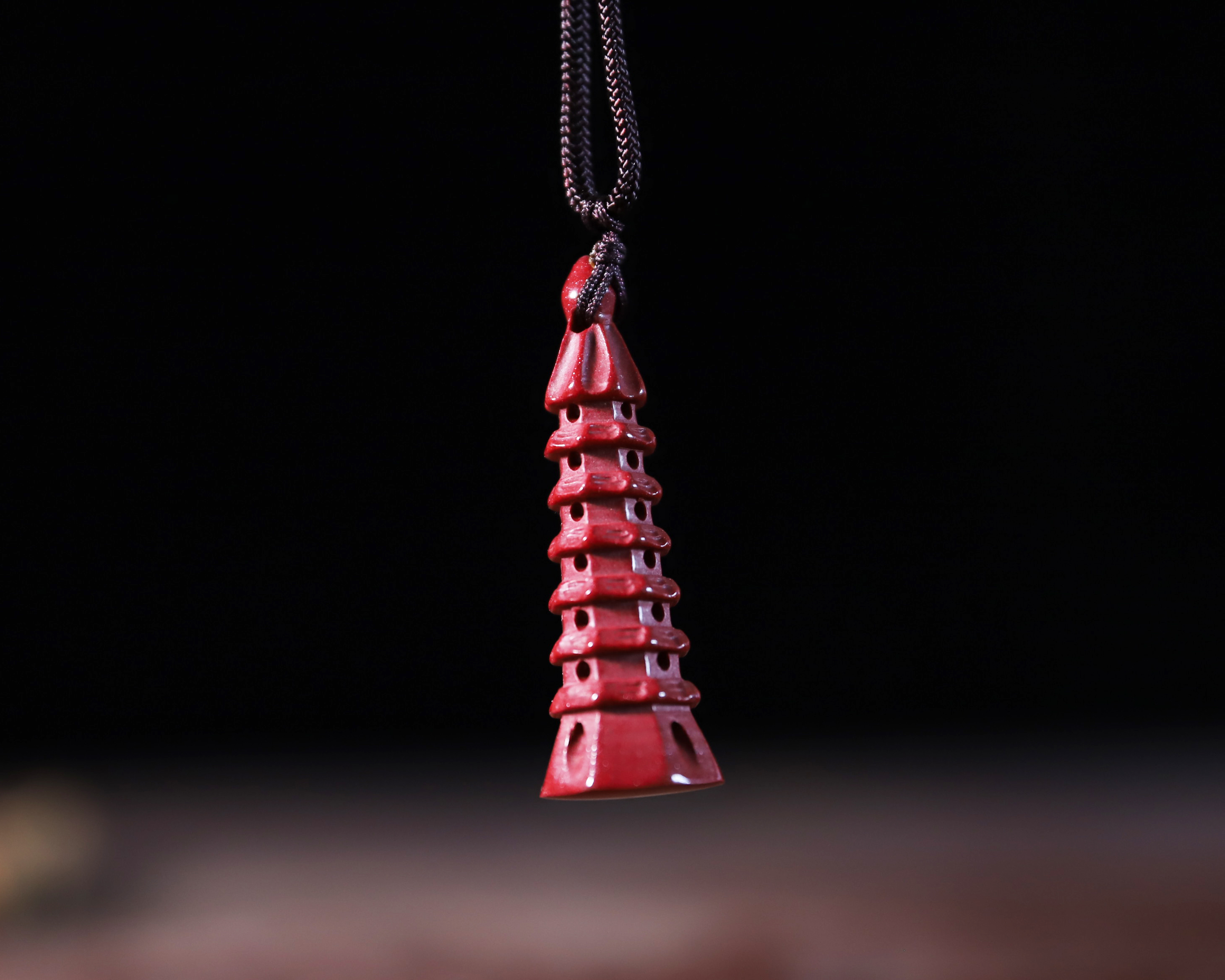 朱砂吊坠锁骨链,原矿朱砂,手工结绳