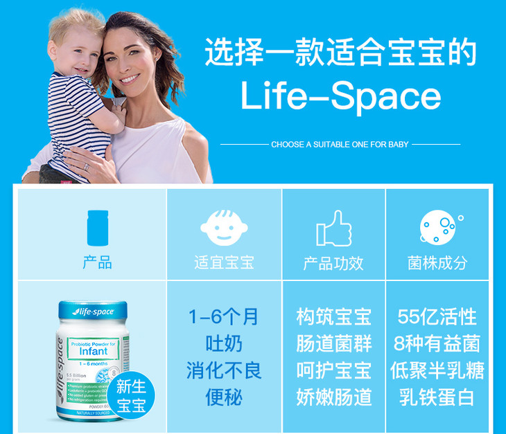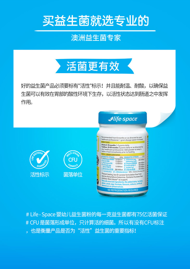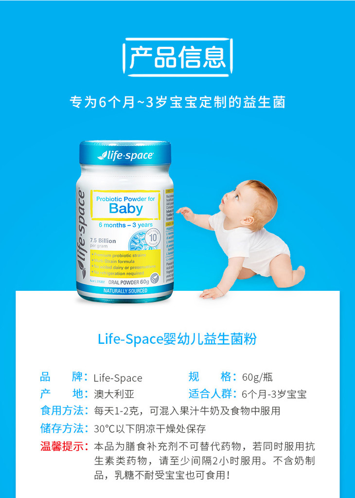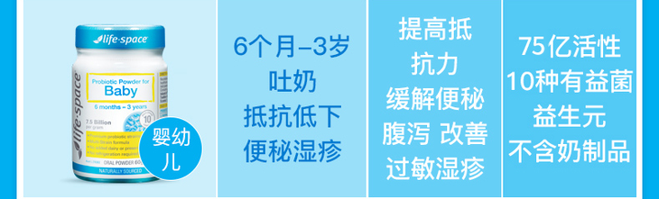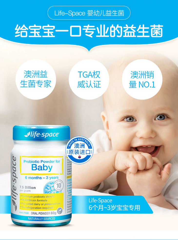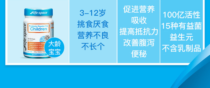 澳洲Life space 儿童宝宝益生菌粉60g调理肠胃 适合6个月-3岁 3岁-6岁