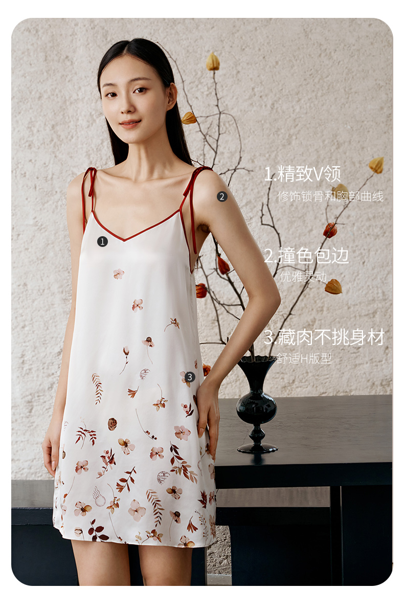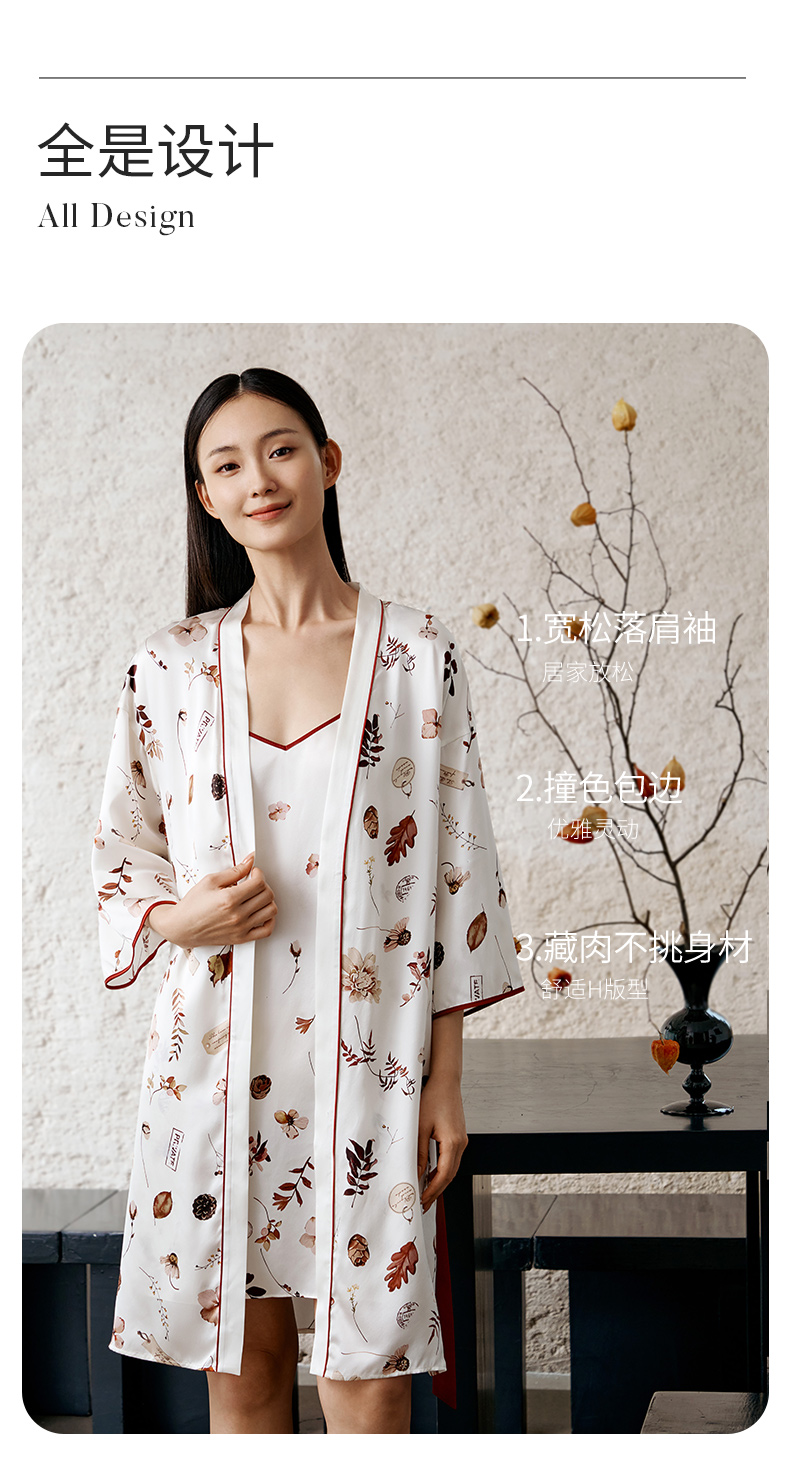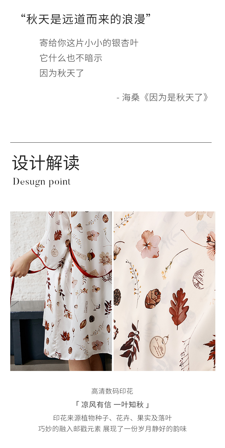 【印上秋天】金三塔100%桑蚕丝睡袍/吊带裙女真丝宽松印花家居服女 YSFEC101/YSFEC302