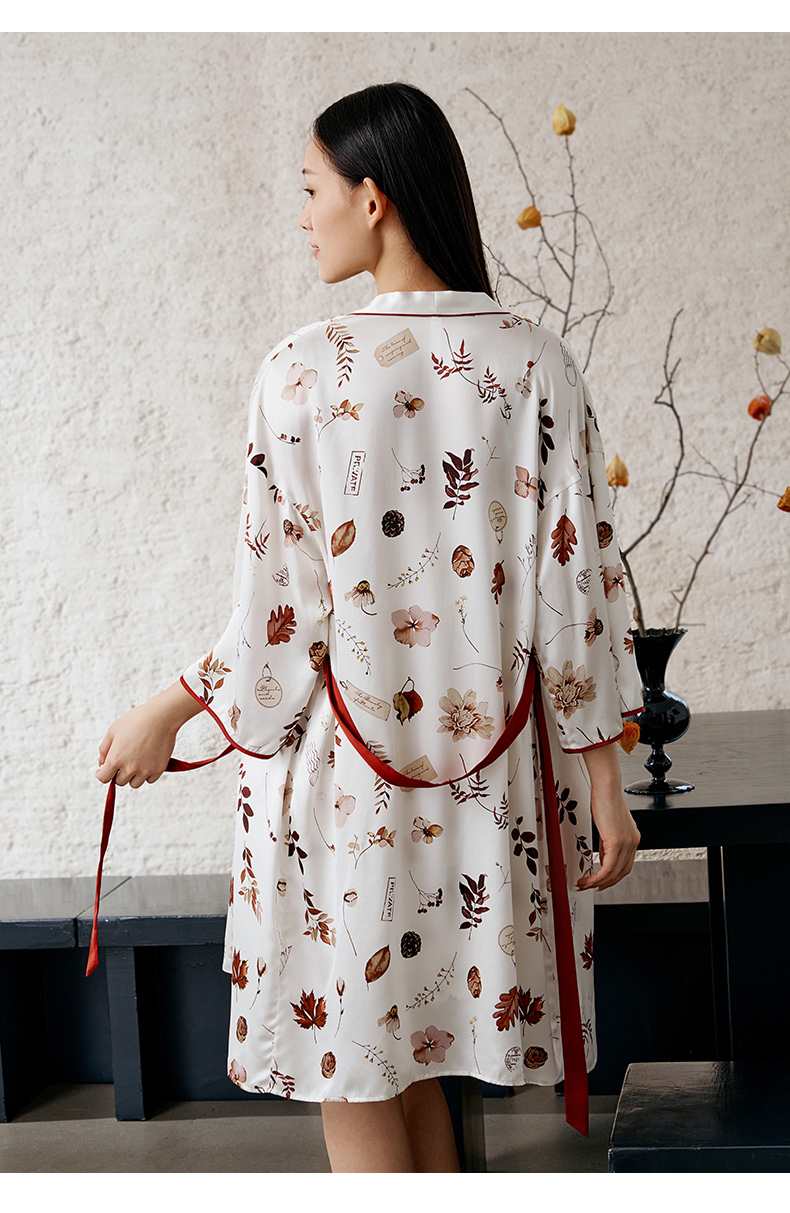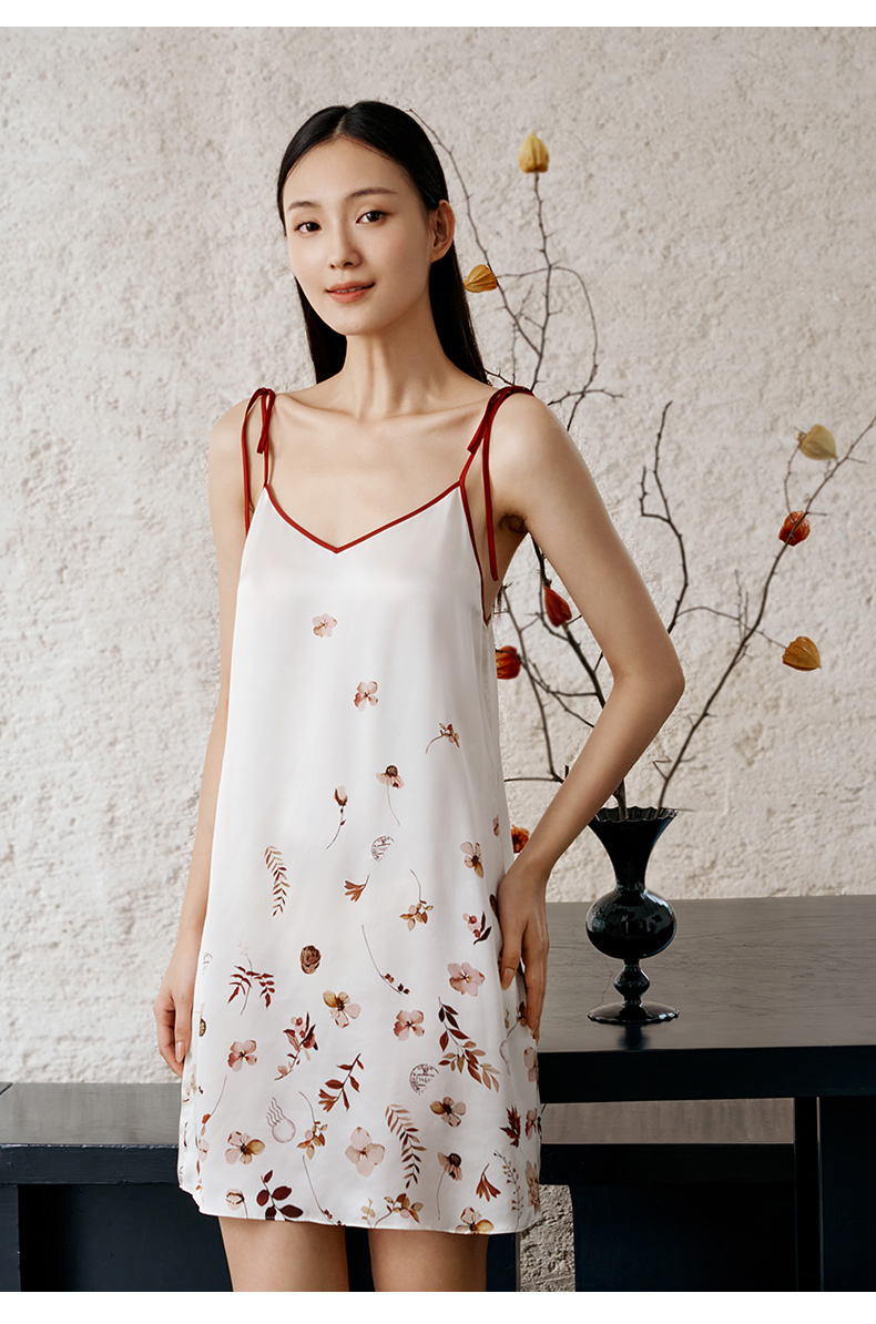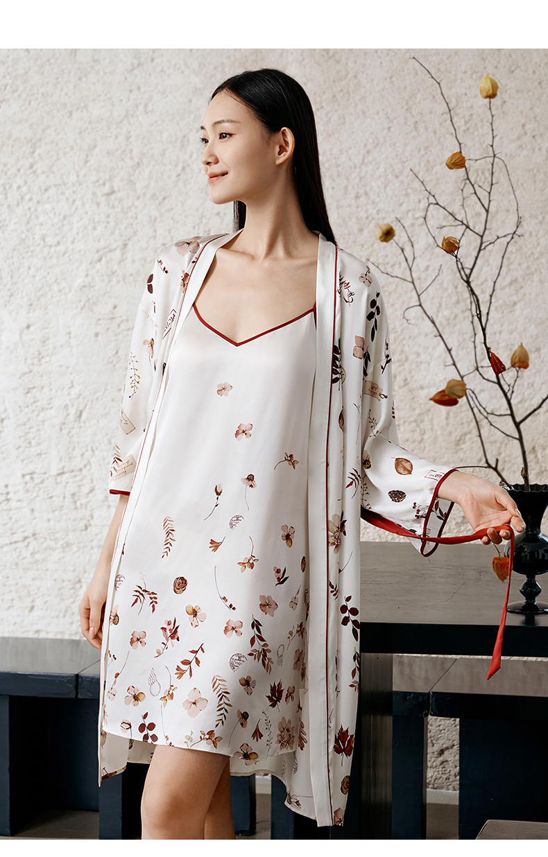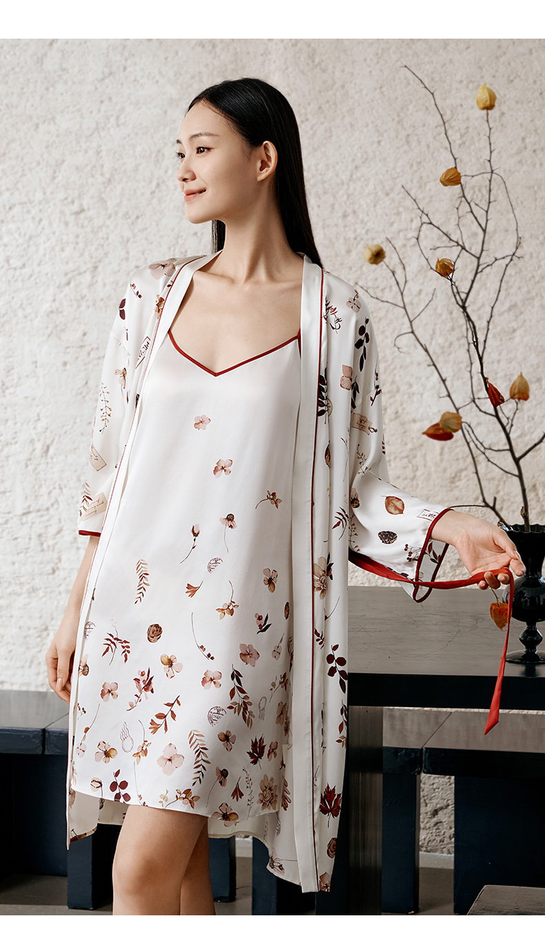 【印上秋天】金三塔100%桑蚕丝睡袍/吊带裙女真丝宽松印花家居服女 YSFEC101/YSFEC302