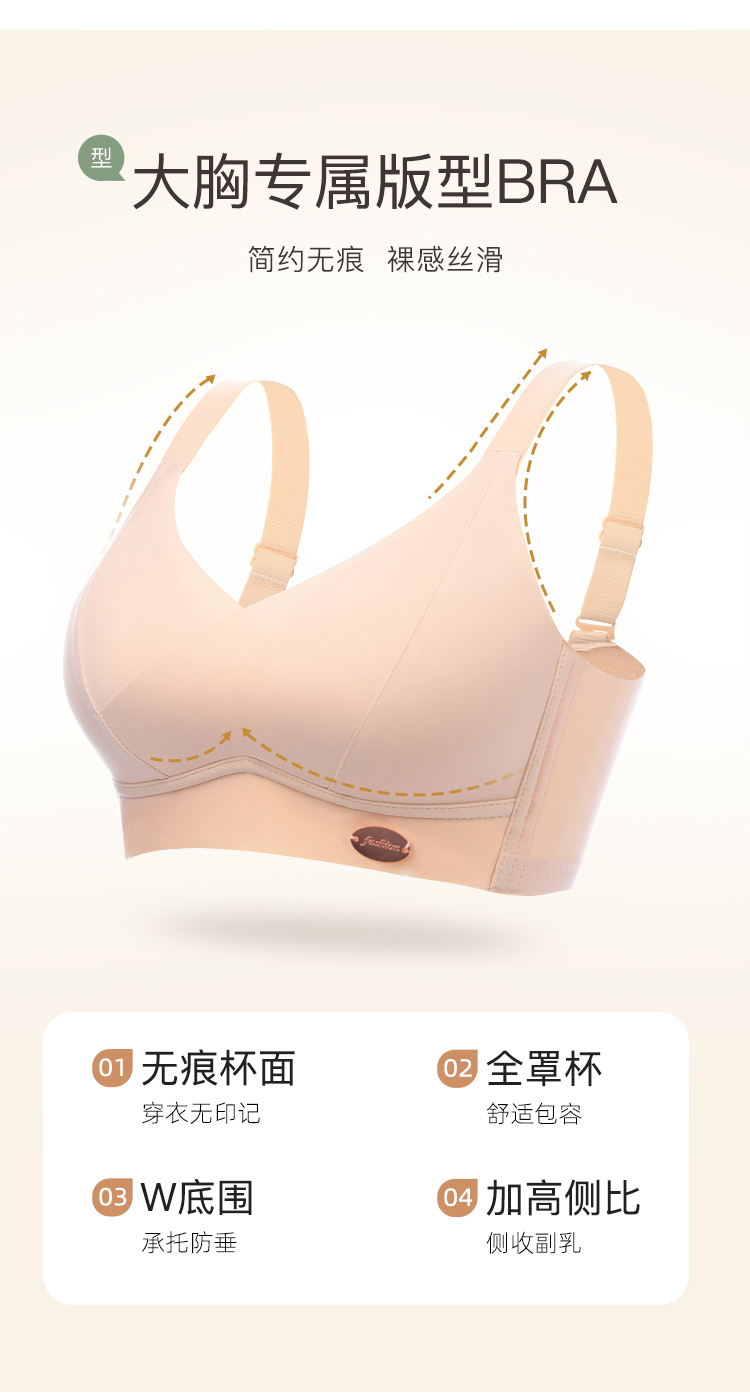 梦芭蒂大胸专属包容防垂无痕薄杯内衣上托收副乳无钢圈文胸罩陌陌紫荆