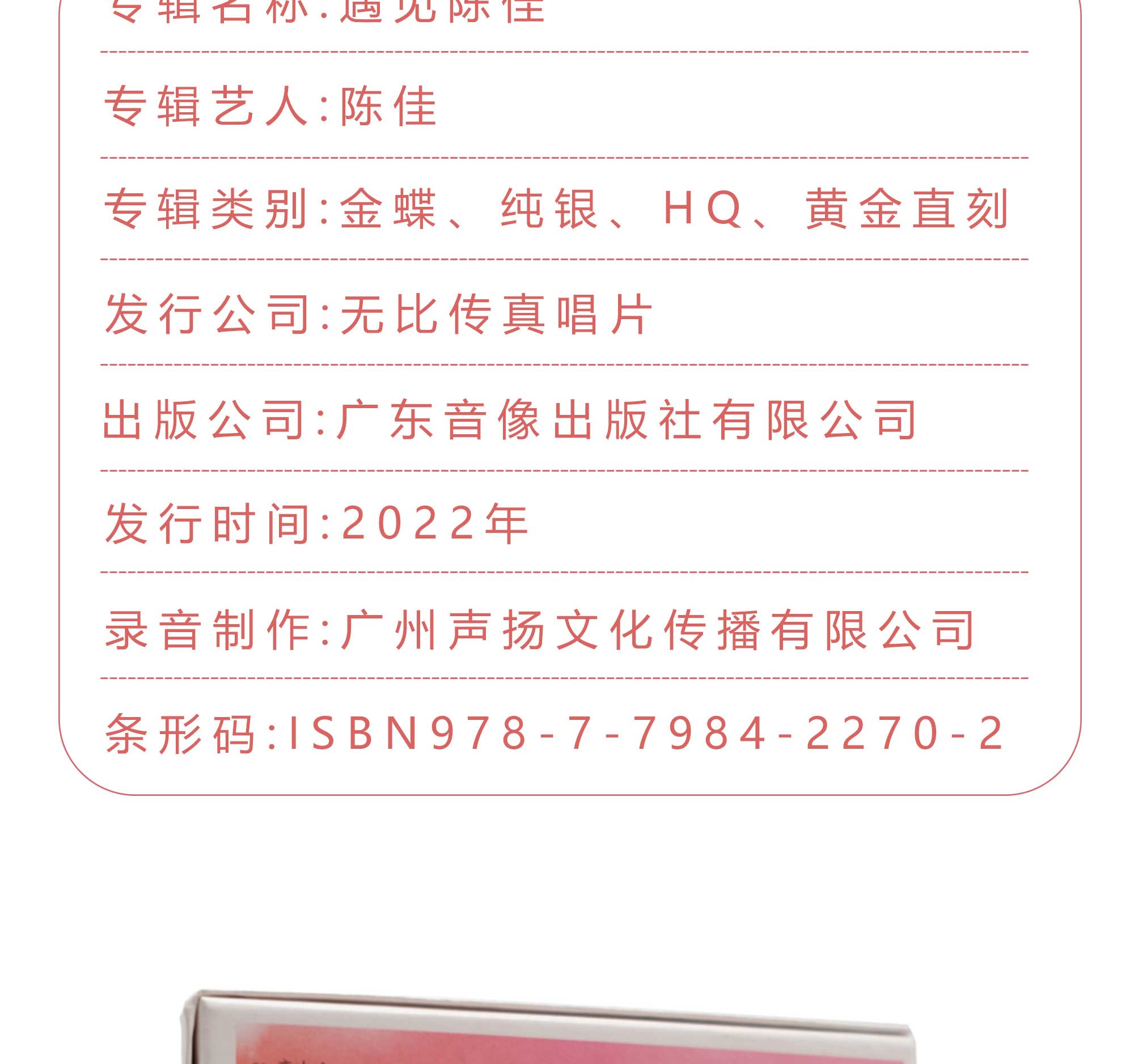 陈佳《遇见》纯银CD&HQ&24K纯金&黄金母盘 无比传真