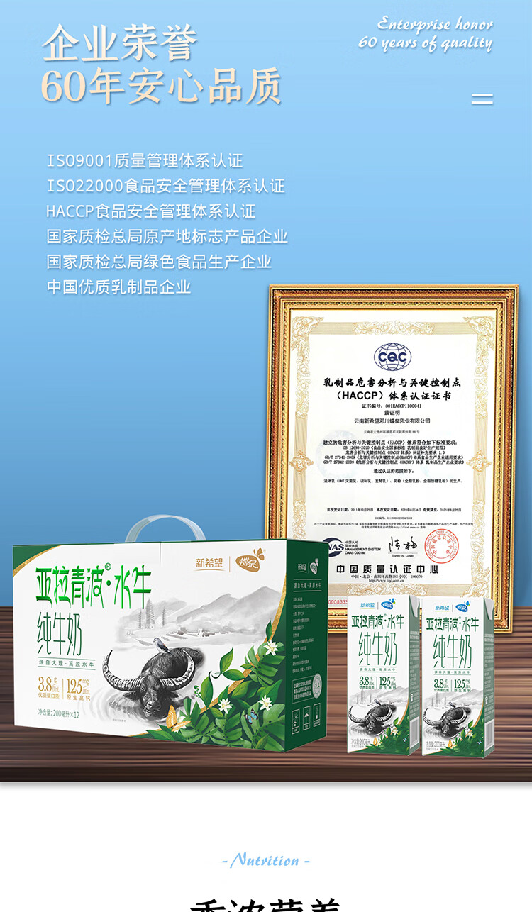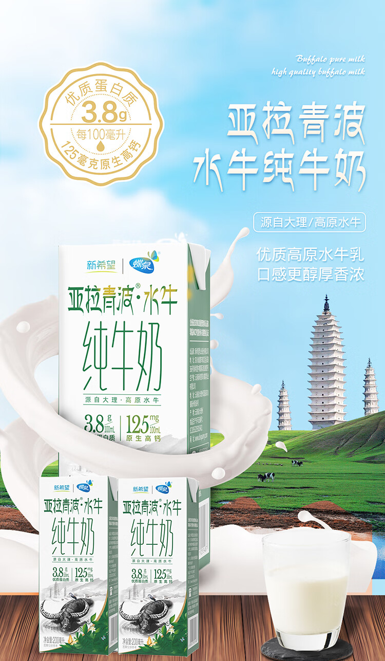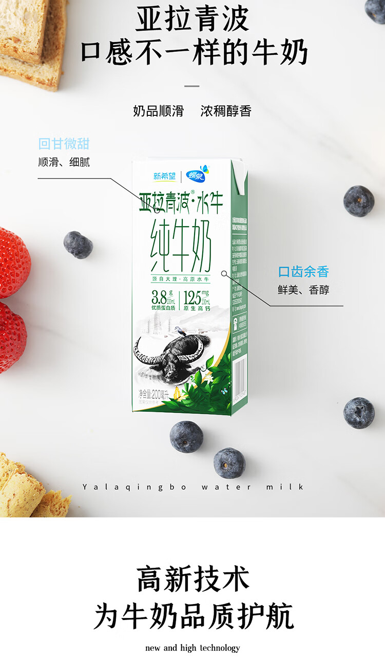 新希望亚拉青波水牛纯牛奶200ml*12盒装