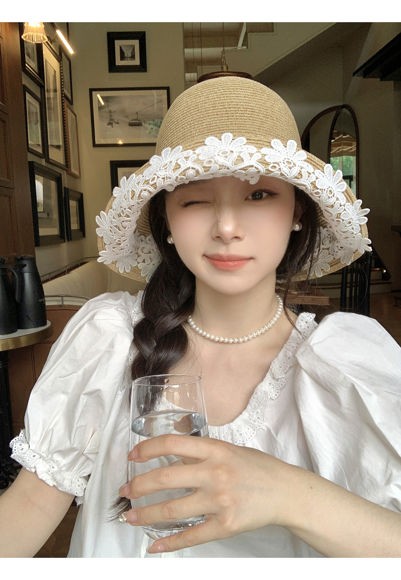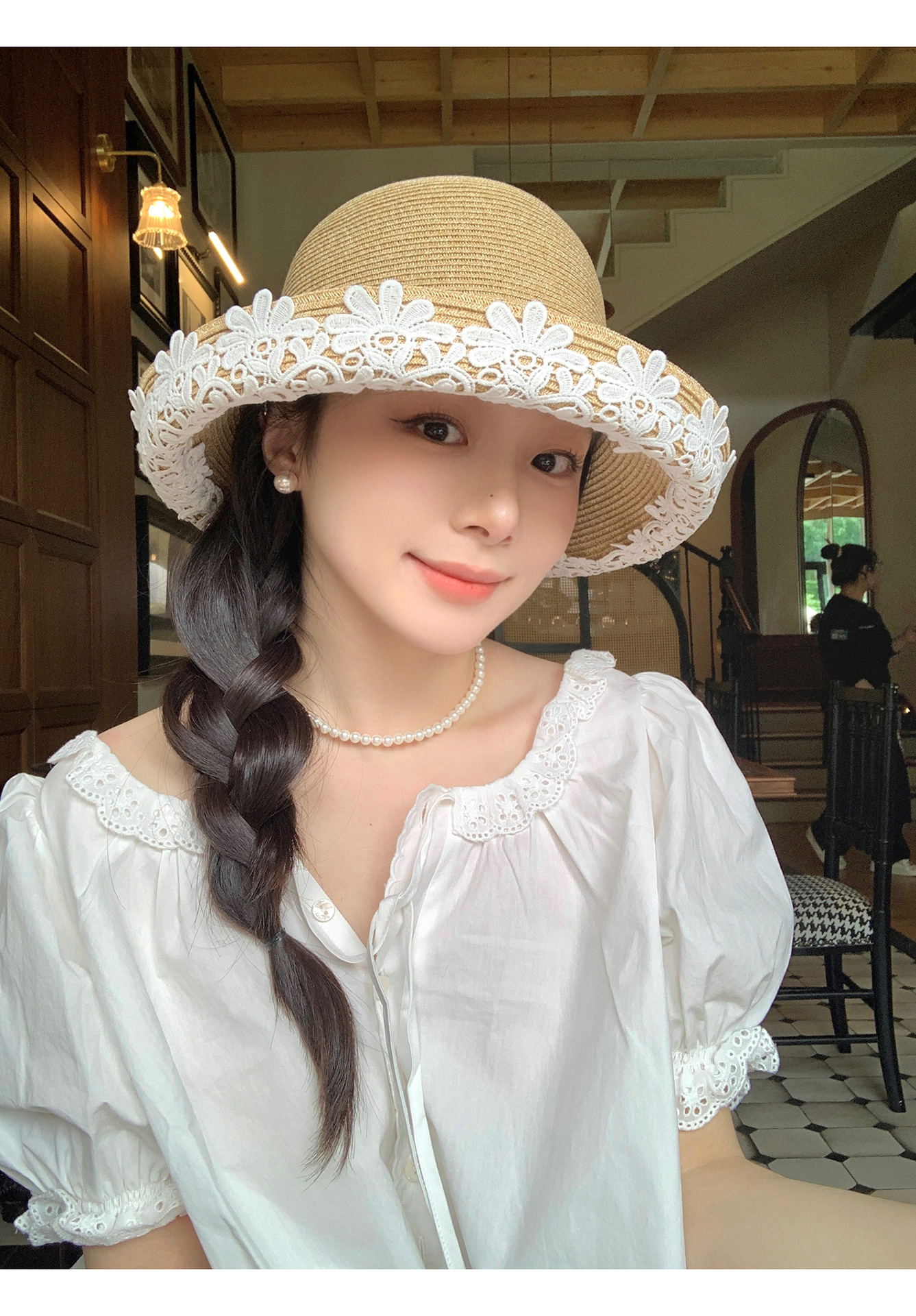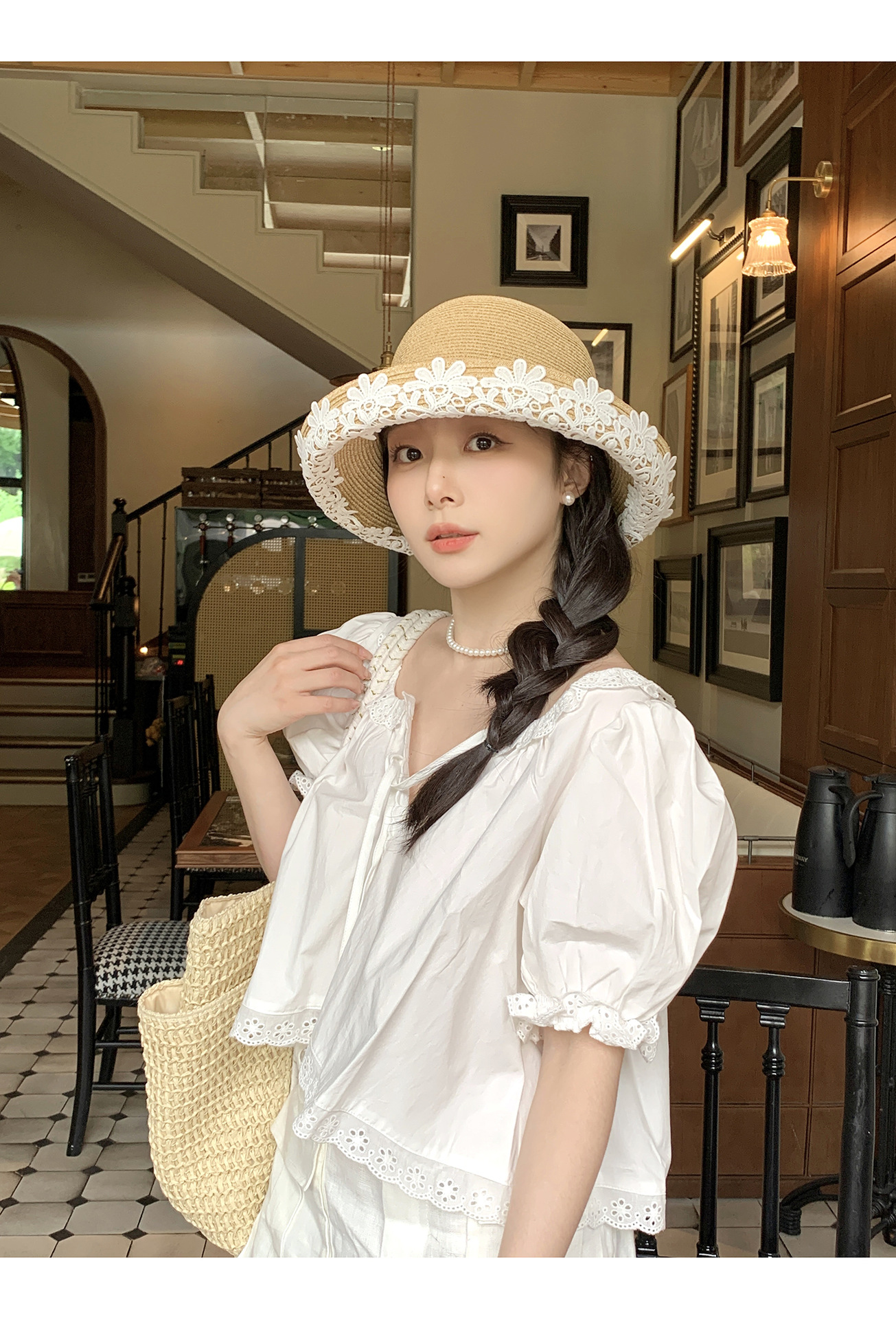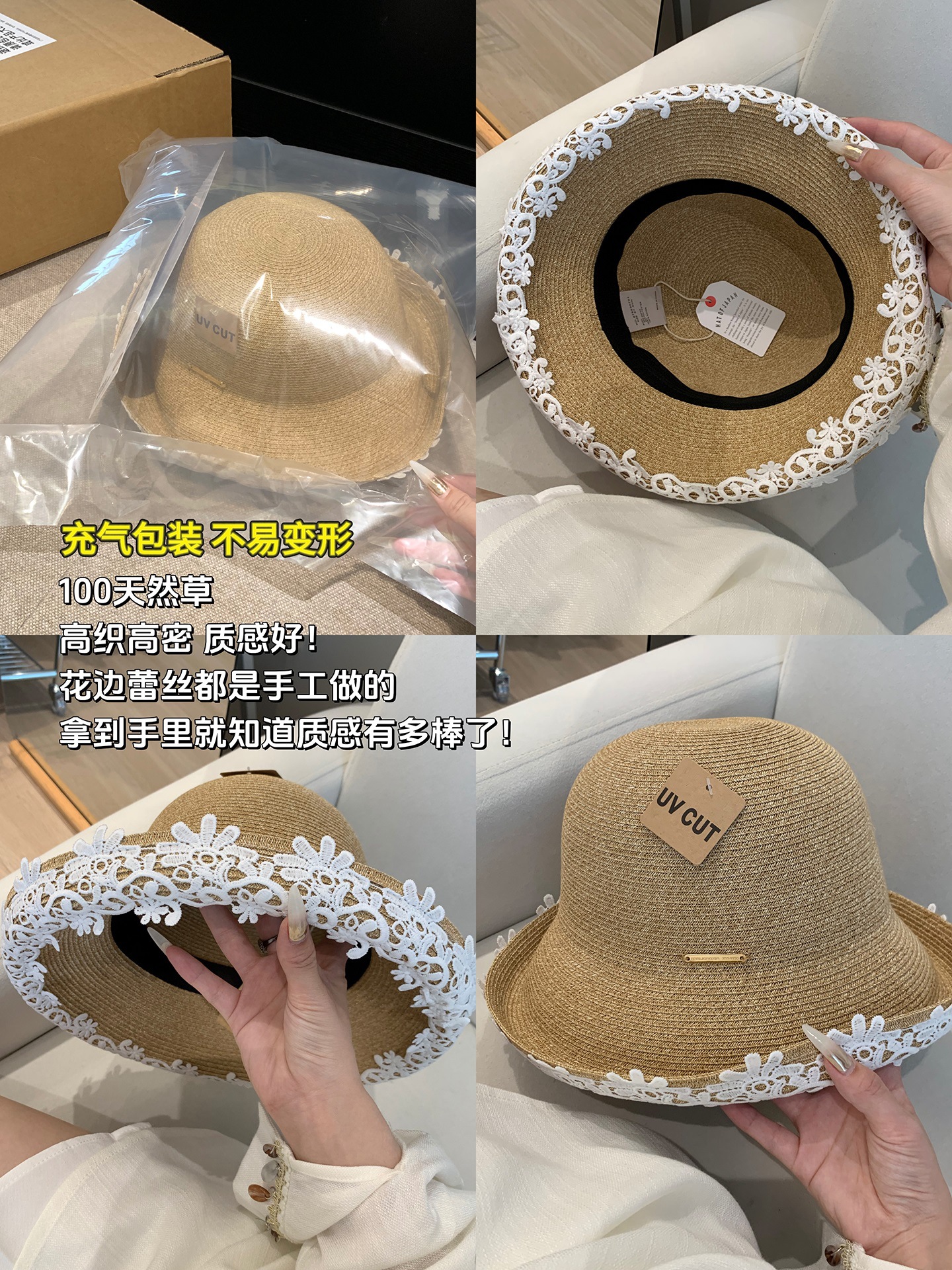 法式优雅拉菲草帽!2025女款夏季度假沙滩帽蕾丝花边渔夫帽遮阳盆帽子!