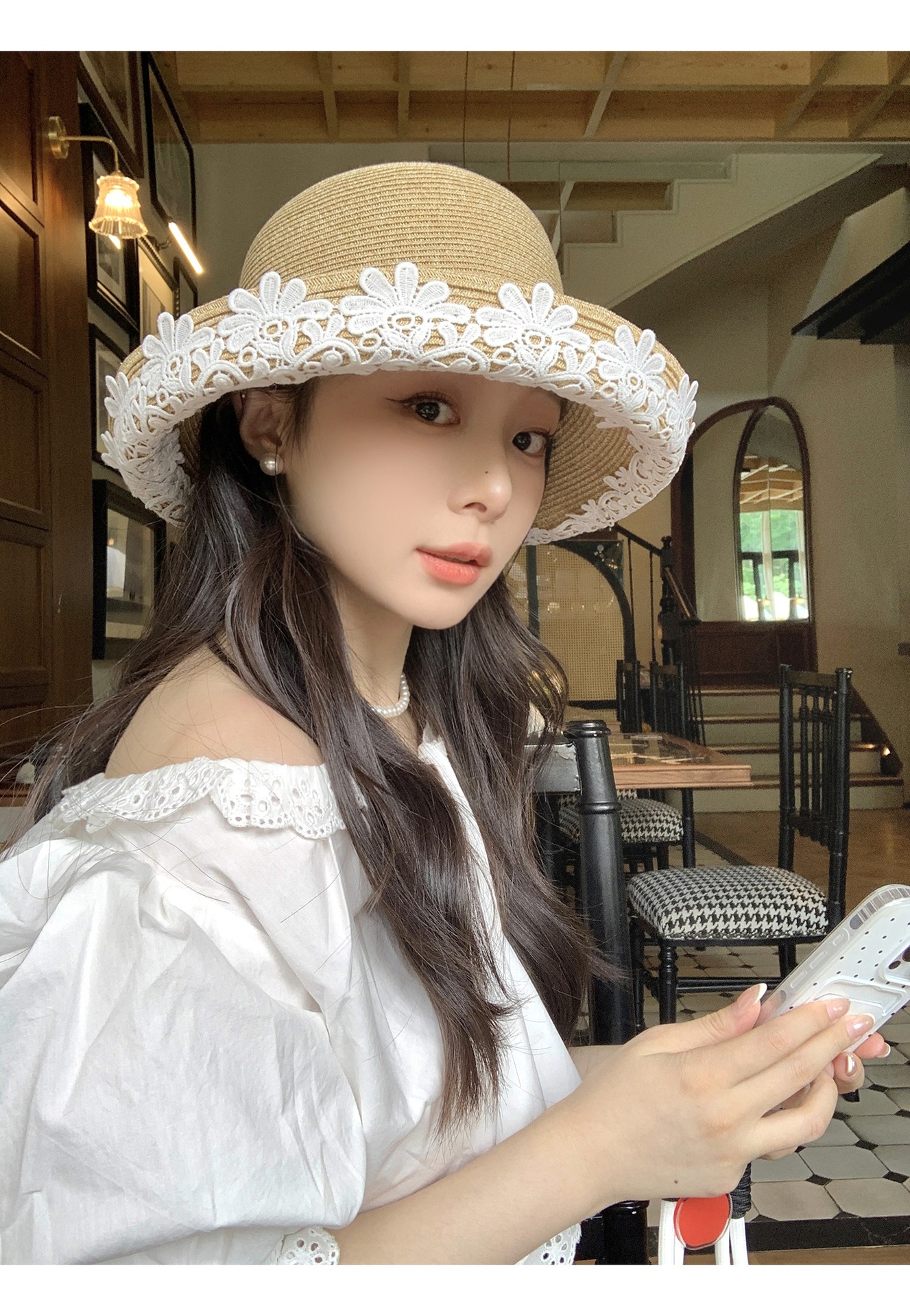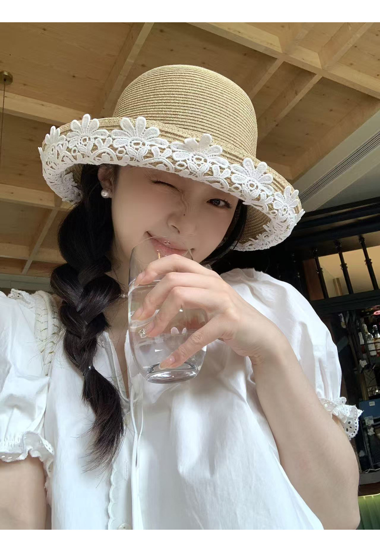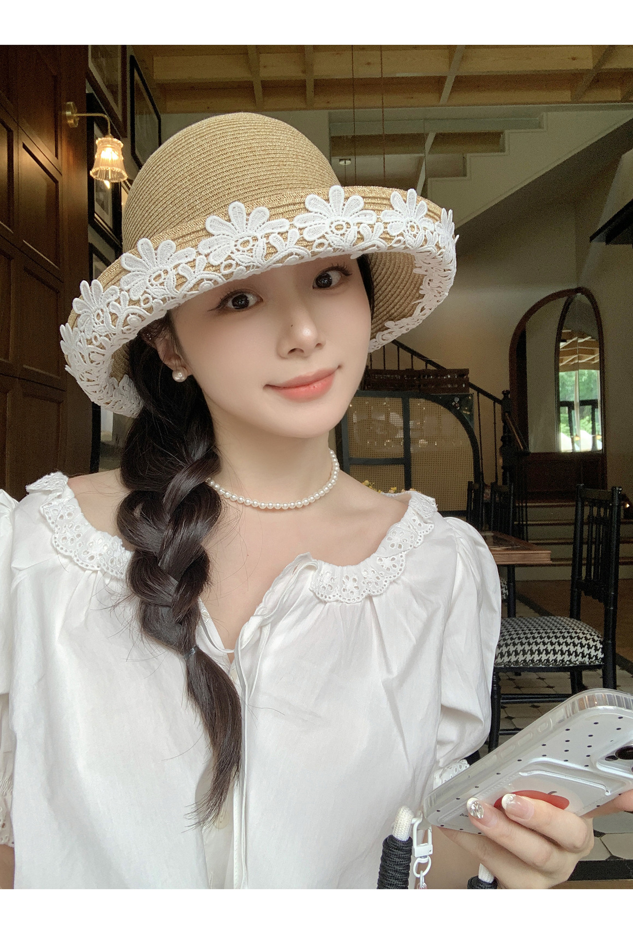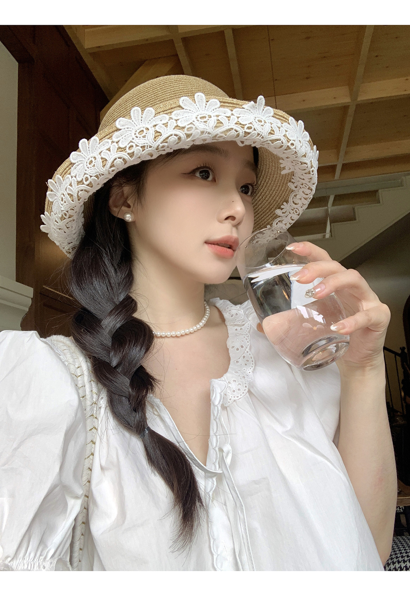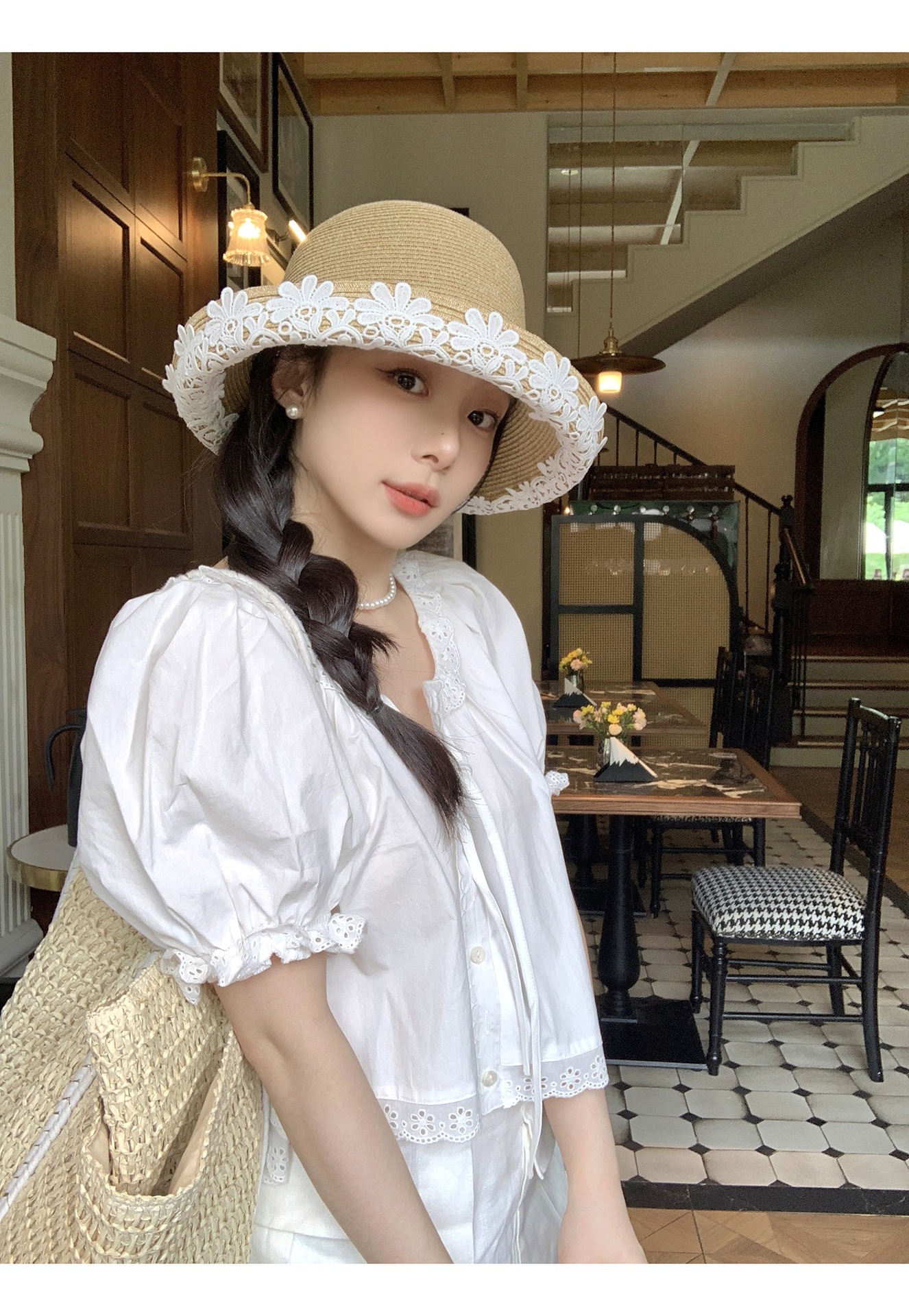 法式优雅拉菲草帽!2025女款夏季度假沙滩帽蕾丝花边渔夫帽遮阳盆帽子!
