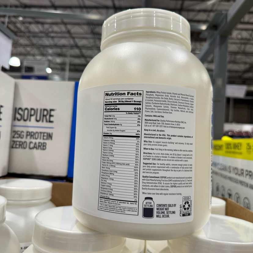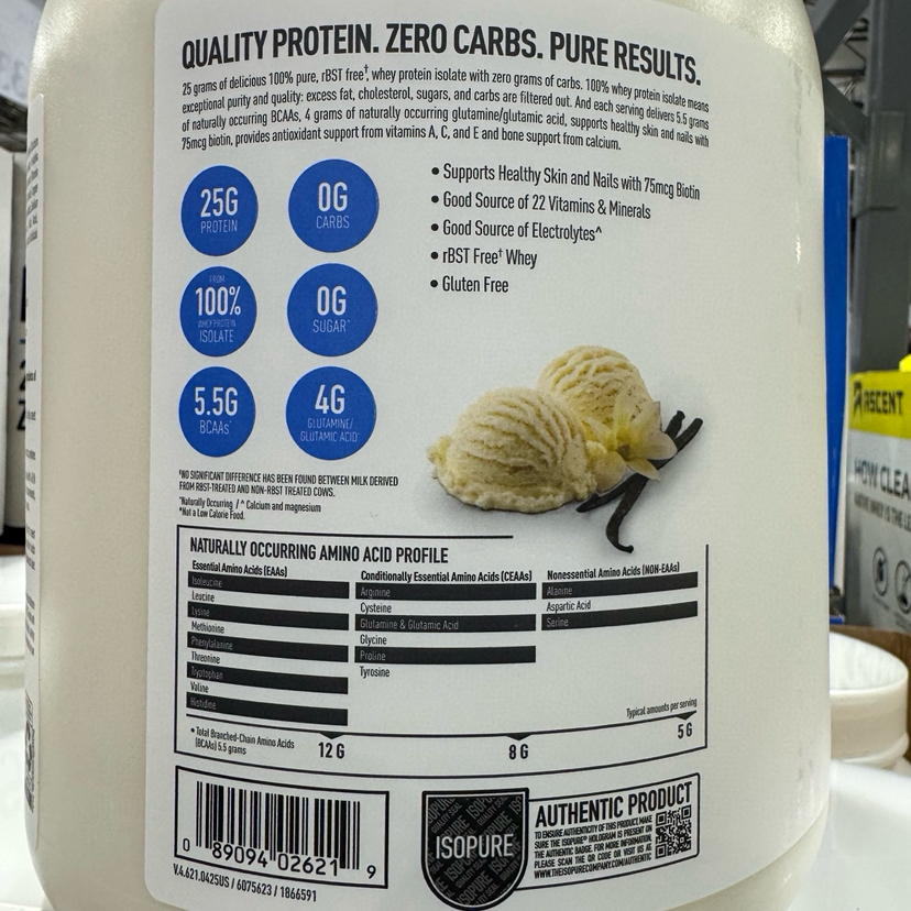 Isopure蛋白粉降价了,一年一次限时特价!📣ISOPURE乳清蛋白粉香草味,美国🇺🇸直邮特价498元/3.4LB!运动后帮助建立和修复肌肉,帮助满足日常蛋白质需求,帮助您在两餐之间保持饱腹感,以支持体重管理。摄取高质量的完整蛋白质(如乳清)以帮助维持最佳肌肉健康非常重要。营养成分: 卡路里– 150 脂肪– 9克 碳水化合物– 5克 蛋白质– 14克,维生素C和锌与维生素E一起提供免疫支持 100%乳清蛋白分离物-高质量蛋白质来源,每份可提供25克蛋白质,以支持肌肉的建立和恢复,添加了维生素和矿物质混合 KETO-FRIENDLY-这种蛋白粉可以帮助支持您的生酮宏,不含麸质和乳糖。