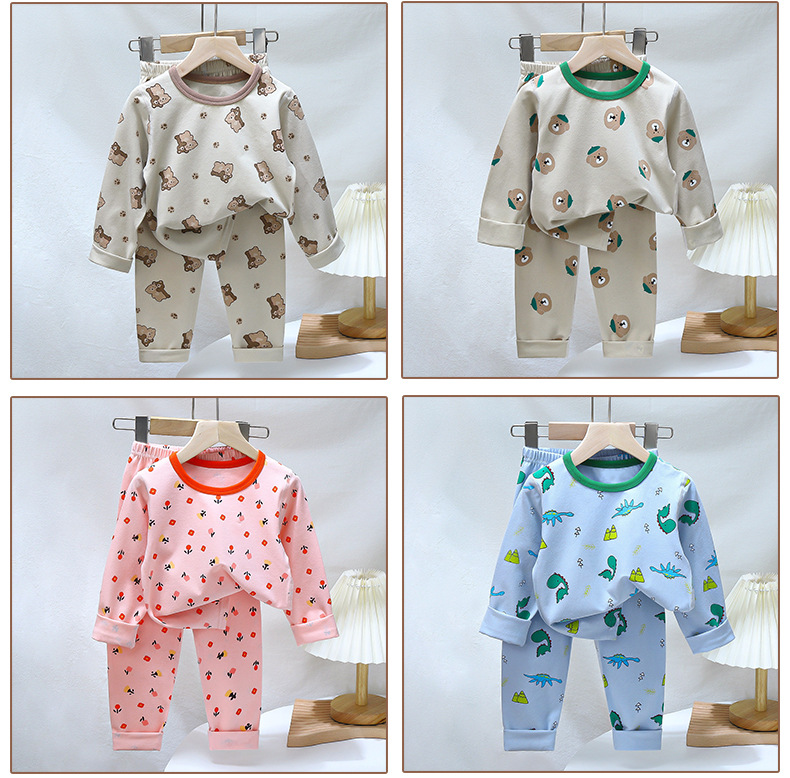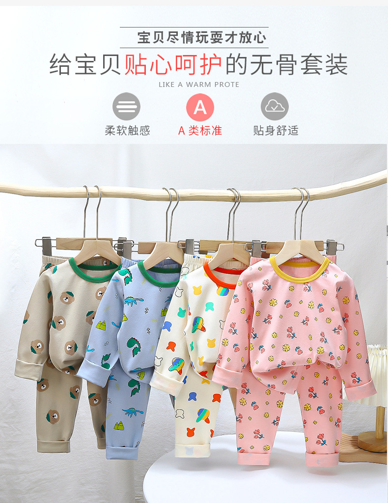 【清新自然的莱卡内衣套装❗️儿童睡衣套装家居服】男童春秋女童秋衣无骨童装既舒适又时尚,男孩子和女孩子都能穿男士父亲节礼物新年礼盒年货礼盒