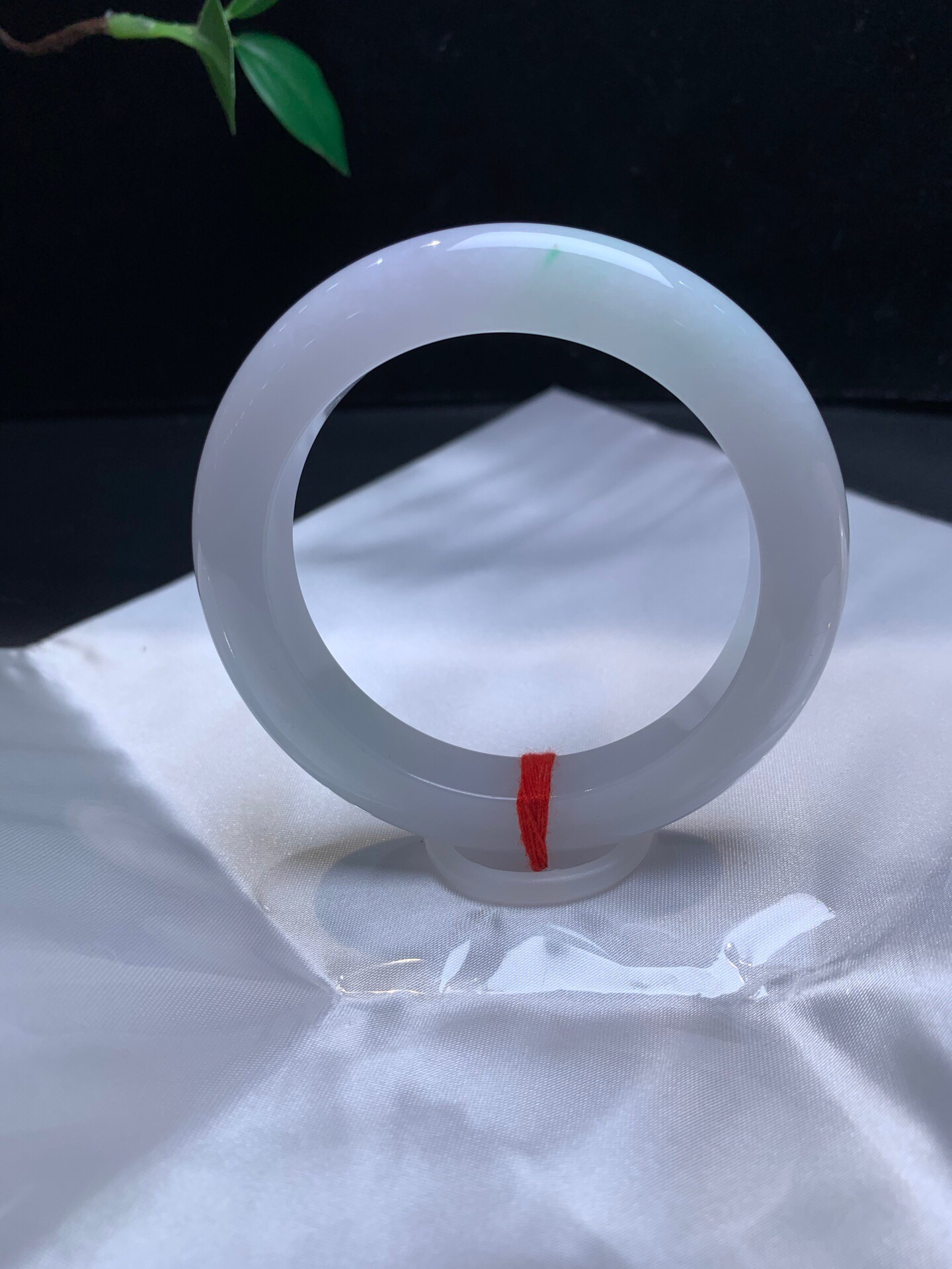 620393,57.3飘绿手镯,11.3-10mm,清新干净的底妆,一抹绿,淡淡的紫底,完美细腻,超值价💰14300 #优石客珠宝#香玉荟萃